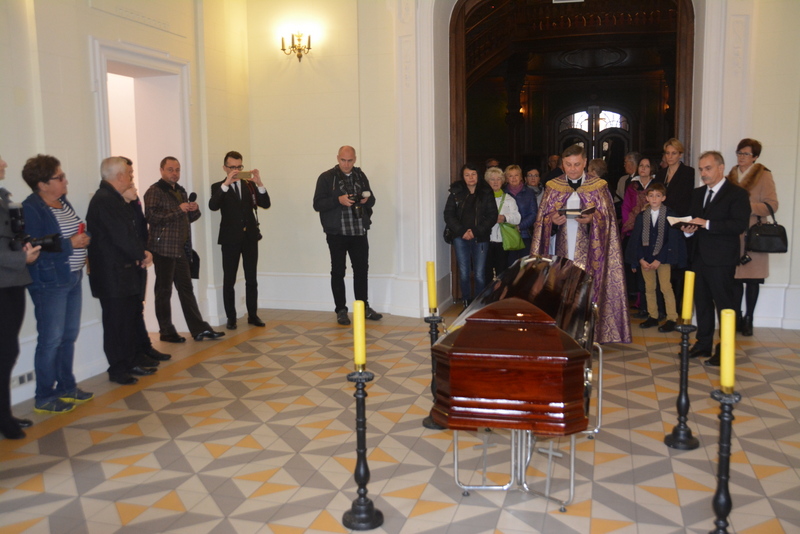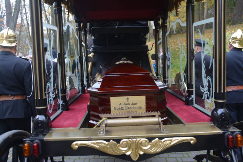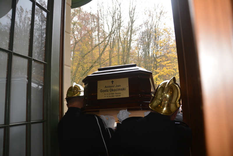 Uroczystość rozpoczęła się w holu pałacu Goetzów Okocimskich, gdzie wystawiona została trumna z prochami Antoniego. –Po 55 latach spełnione zostało ostatnie życzenie Antoniego – wnuka założyciela browaru Okocim i ostatniego jego właściciela. Jego ciało spocznie w krypcie rodzinnej, w której leżą jego dziad i ojciec – mówił ksiądz Wiesław Pieja, proboszcz parafii pod wezwaniem Trójcy Przenajświętszej w Okocimiu.