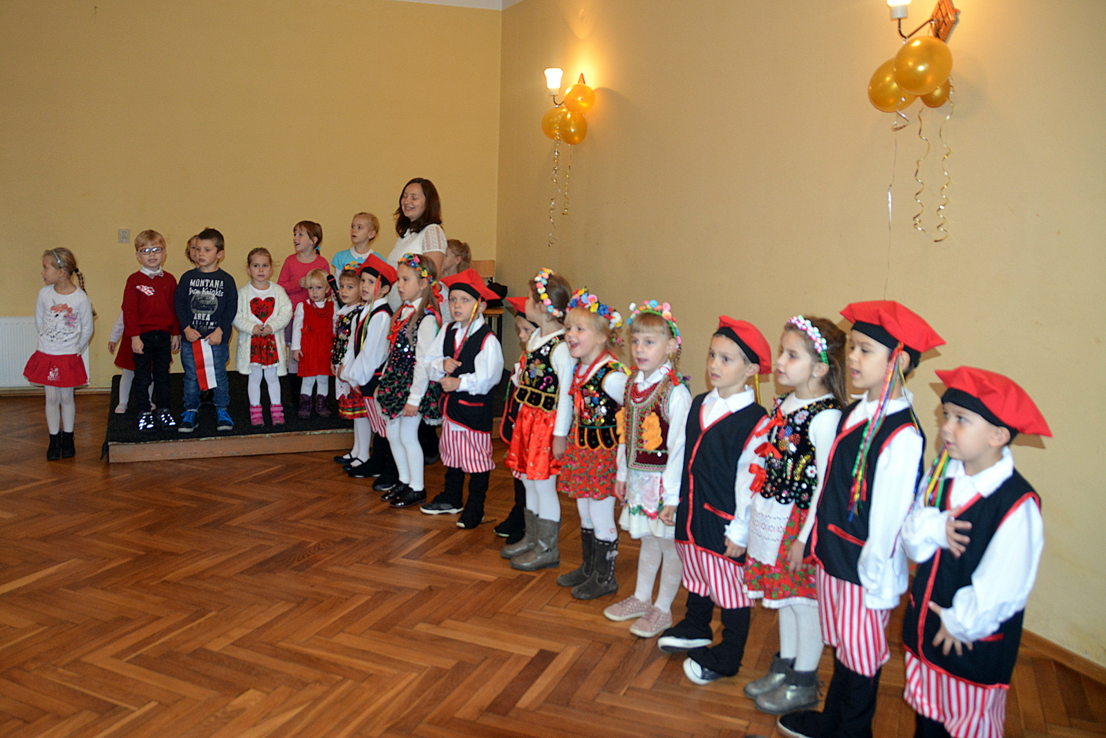 Uroczystość rozpoczęła się krakowiakiem odtańczonym przez przedszkolaków, a później, przez blisko półtorej godziny budynek jasieńskiej remizy rozbrzmiewał patriotycznymi pieśniami i wierszami w wykonaniu maluchów. Warto podkreślić, że dzieci, pod opieką dyrektor przedszkola siostry Miriety Florek oraz Marty Mikulskiej przygotowywały się do występów kilka tygodni. Po ich występach oklaskom nie było końca.