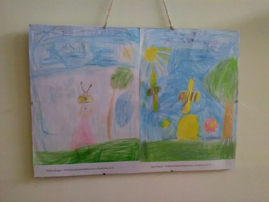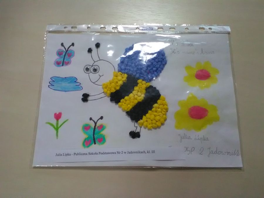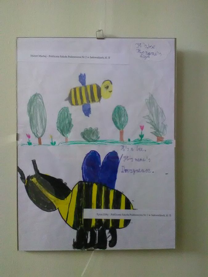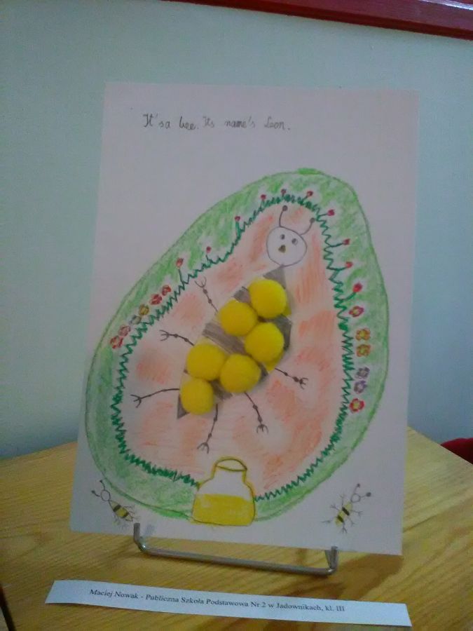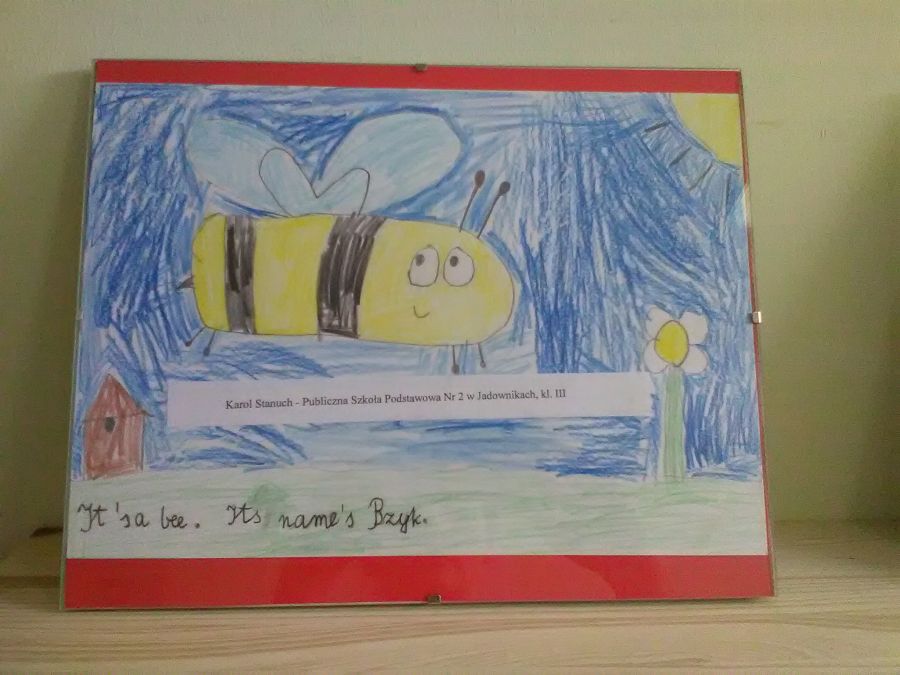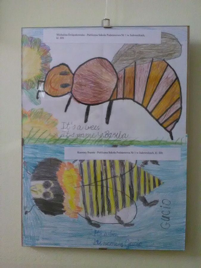 W czasie spotkania Kornelia Jakubowska-Żółty opowiedziała o konkursie i jego zadaniach, zaś kierownik biblioteki Alicja Koźmińska przedstawiła realizowany w tym roku projekt Pszczoła oraz zaprezentowała dzieciom książki związane z tym tematem – „Pszczoły”, „Skąd się bierze miód”, „Miodolecznictwo” i „Święta pszczoła, rzecz o pszczelarzeniu”. Uczniowie trzech szkół podstawowych (nr 1 i 2 w Jadownikach oraz w Sterkowcu) wraz z opiekunami mogli podziwiać żywe, ruchliwe pszczółki za szybką, a także wyszukać w tłumie owadów królową oznaczoną białą kropką. Łukasz Kaźmierczyk opowiedział uczniom o różnych ciekawostkach związanych z życiem pszczół i odpowiedział na wiele pytań. Spotkanie było bardzo interesujące, a wyżej wymieniony konkurs okazał się być atrakcyjnym wydarzeniem dla wielu uczniów zarówno tych młodszych jak i starszych. Konkurs plastyczno-językowy miał wiele celów, ale najważniejsze z nich to: uwrażliwienie uczniów na problemy ekologii i ochrony środowiska, a tym samym uświadomienie znaczenia pszczół dla życia na Ziemi, rozwijanie kreatywności uczniów w oparciu o techniki multimedialne, a także motywowanie uczniów do pogłębiania wiedzy z języka angielskiego. Klasy 0-3 miały narysować pszczołę oraz podpisać ją po angielsku.Wyróżnione prace ze szkoły podstawowej nr 1 w Jadownikach: Ewelina Mrożek kl.3b, Ksawery Repeta kl. 3b i Michalina Świączkowska kl. 3, ze szkoły podstawowej nr 2 w Jadownikach: Maciej Nowak kl.3, Karina Put kl.3, Maksymilian Dadej kl.3, Julia Lipka kl.3, Karol Stanuch kl.3, Dagmara Krzywacka kl.3, Hubert Machaj kl.2, Tytus Żółty kl.2, Laura Szydłowska kl.1, Małgorzata Sidorko kl. 0, ze szkoły podstawowej w Sterkowcu: Marek Rachwał kl. 1, Natalia Kargol kl. 0, Jakub Kargol kl.0 i Nikola Karaś kl.2. Klasy 4-6 miały zrobić zdjęcie pszczole swoim telefonem i opisać ją w ciekawy sposób po angielsku. Wyróżnione prace ze szkoły nr 2 w Jadownikach: Eleonora Kocot kl.6, Gabriela Sidorko kl.5, Karol Tyka kl.4, szkoła nr 1 w Jadownikach: Anna Dzieńska kl.6. Szkoła podstawowa w Sterkowcu: Jakub Bodzioch kl.4. Klasy 7 i gimnazjalne również miały zrobić zdjęcie pszczole ale tym razem także wymyslić o niej ciekawą historię po angielsku. Wyróżniona praca należy do Małgorzaty Poliszak z kl. 2 gimnazjum w PSP nr 2 w Jadownikach.