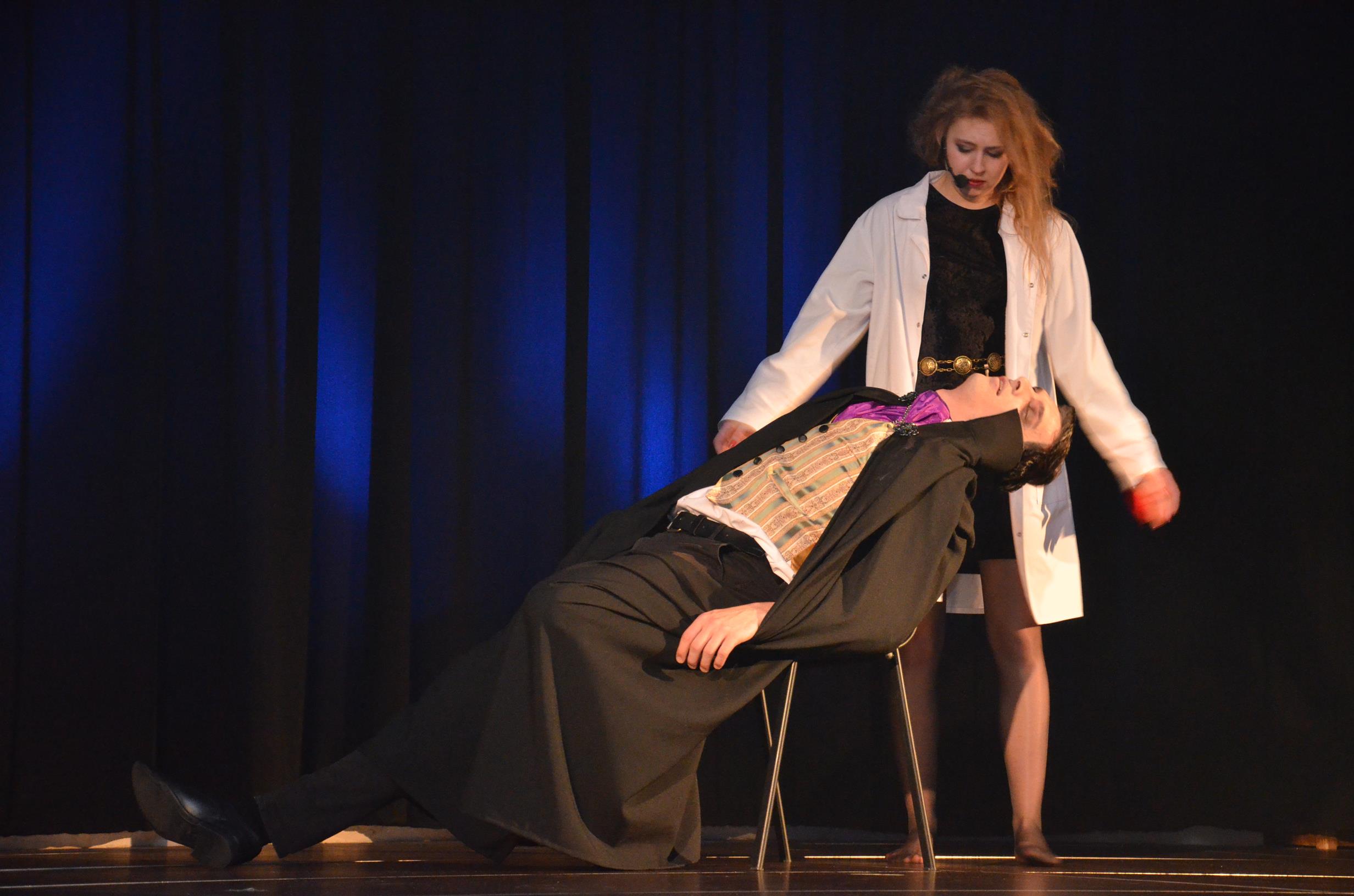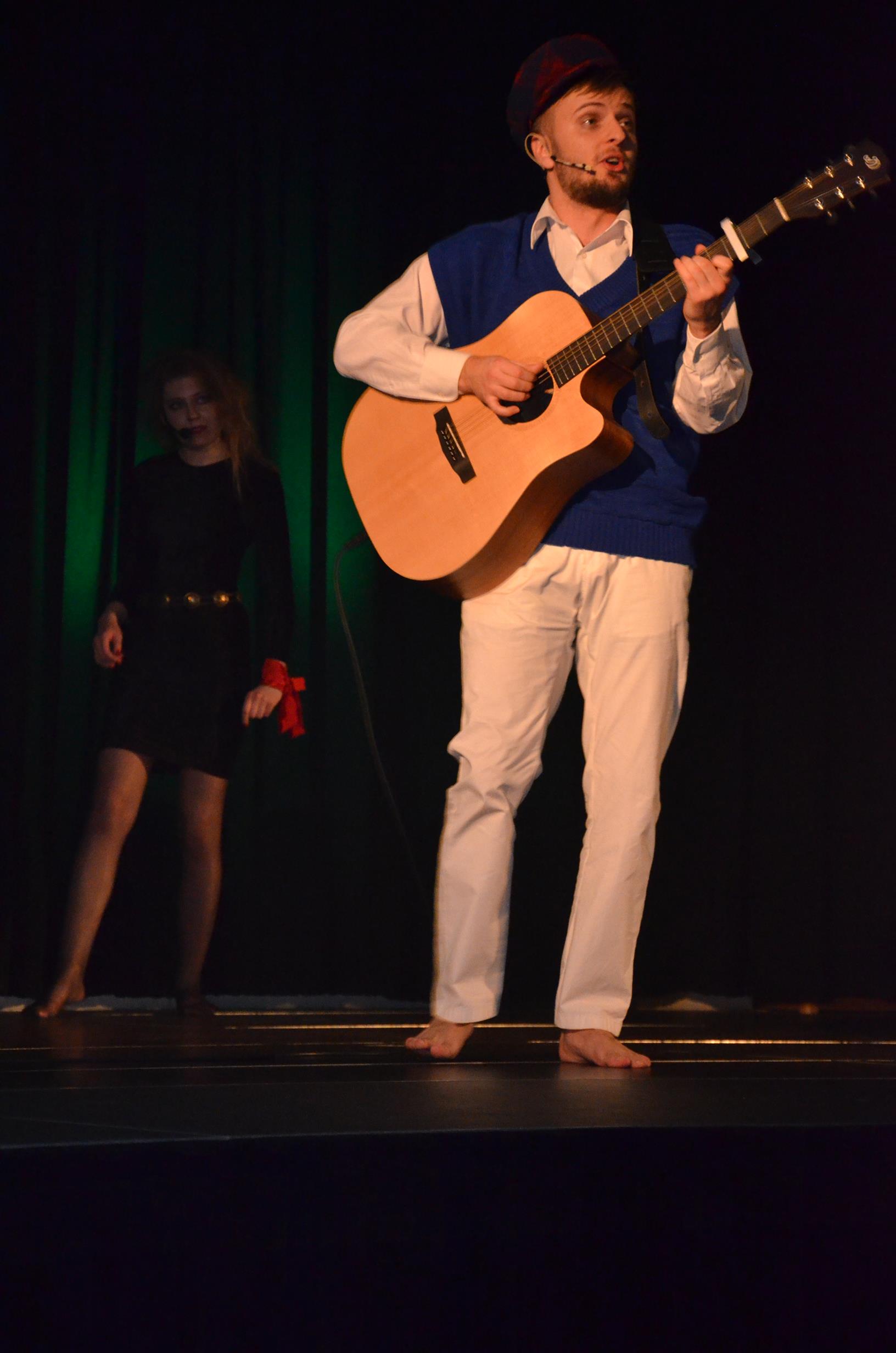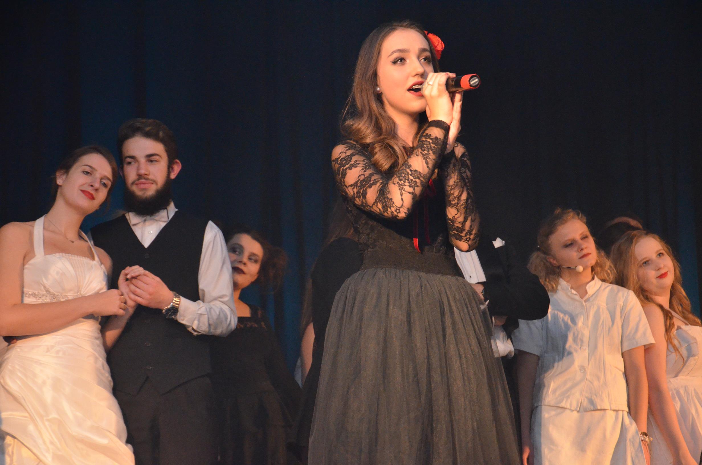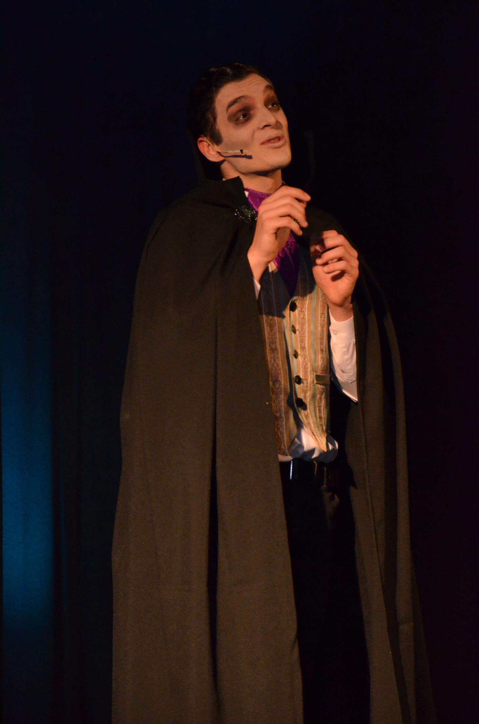 W rolę Draculi wcielił się Piotr Kopacz, w pewnym sensie debiutant, bo wprawdzie pojawił się już na brzeskiej scenie jako chórzysta, jednak dopiero tym razem otrzymał szansę zaprezentowania się z pozycjo solisty. Szansę tę jak najbardziej wykorzystał, i to nie tylko jako wokalista, ale także aktor i tancerz. Wypada wybrać się na to przedstawienie, aby zobaczyć jak Piotr-Dracula w towarzystwie tancerek i tancerzy zaprasza na „Upiorną noc” (parafraza „Arabskiej nocy” z disnejowskiego „Alladyna”). Żeby wysłuchać (i obejrzeć) w jego wykonaniu „Upiornego twista” (Kabaret Starszych Panów). To był autentyczny twist z lat 60-tych ubiegłego wieku. Do tego jego upiorna (o paradoksie) vis comica.
