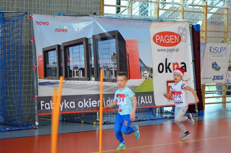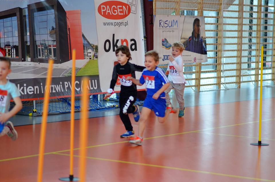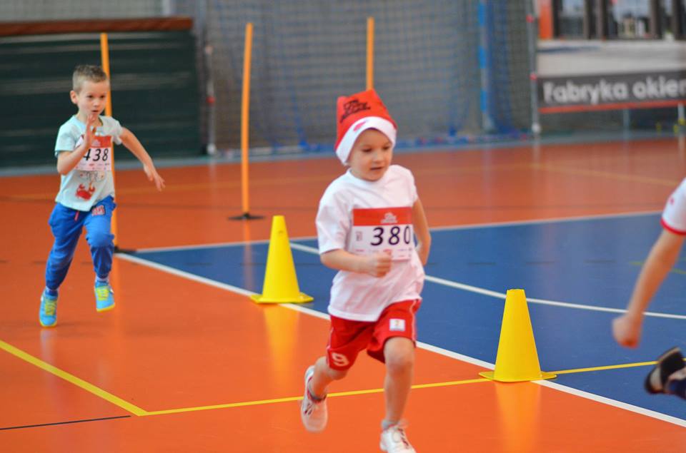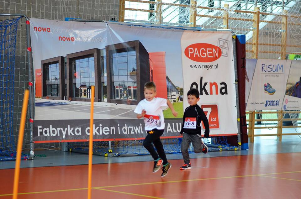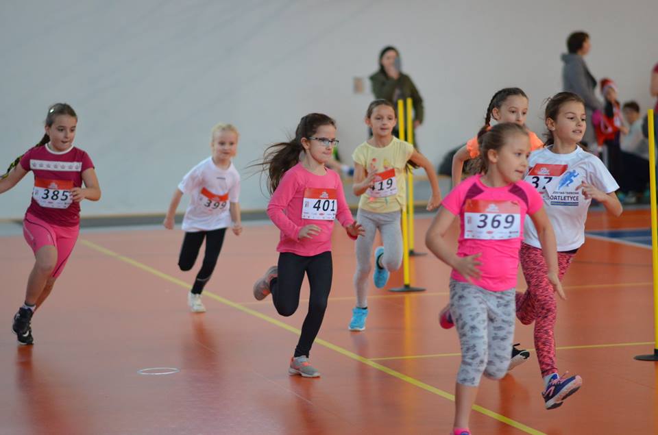 Wyniki halowych biegów dzieciDziewczynki w kategorii 1 - 4 lata: Zuzanna Gicala, Antonina Szpil, Kaja KuralChłopcy w kategorii 1 - 4 lata: Jakub Drużkowski, Michał Bednarz, Jan ŚwierczekDziewczynki w kategorii 5 - 6 lat: Lena Małek, Helena Kita, Martyna FitrzykChłopcy w kategorii 5 -6 lat: Franciszek Szpil, Karol Gicala, Wojciech KluzDziewczynki w kategorii 7 - 9 lat: Zofia Miśkowicz, Lena Łukowicz, Emilia NosalChłopcy w kategorii 7 - 9 lat: Dawid Okas, Przemysław Szołtysik, Piotr Dumieński(foto: sportomaks.pl)