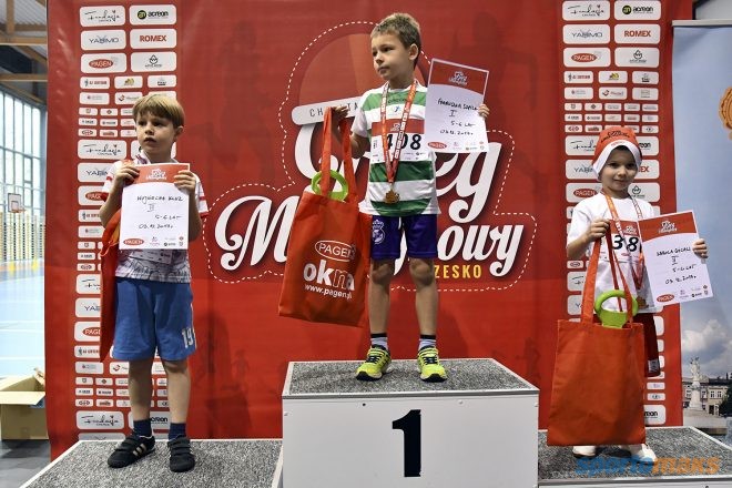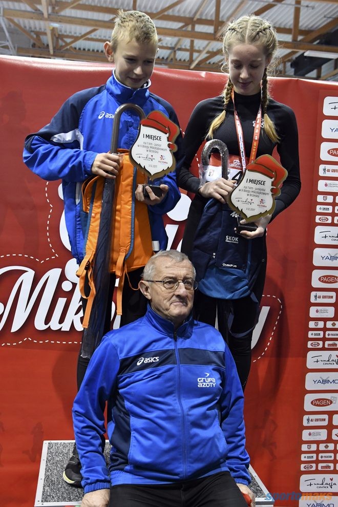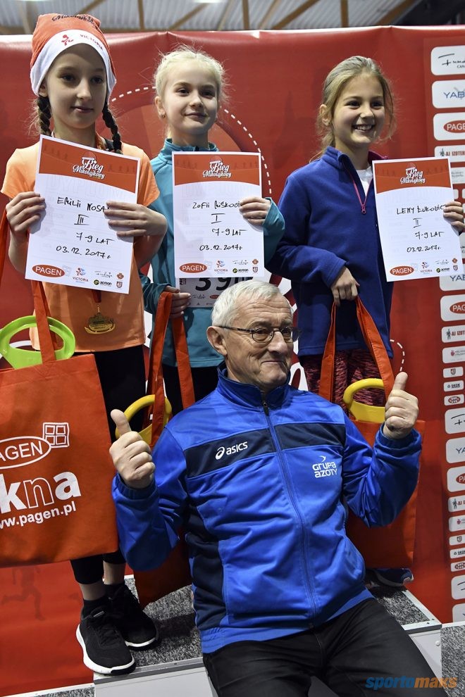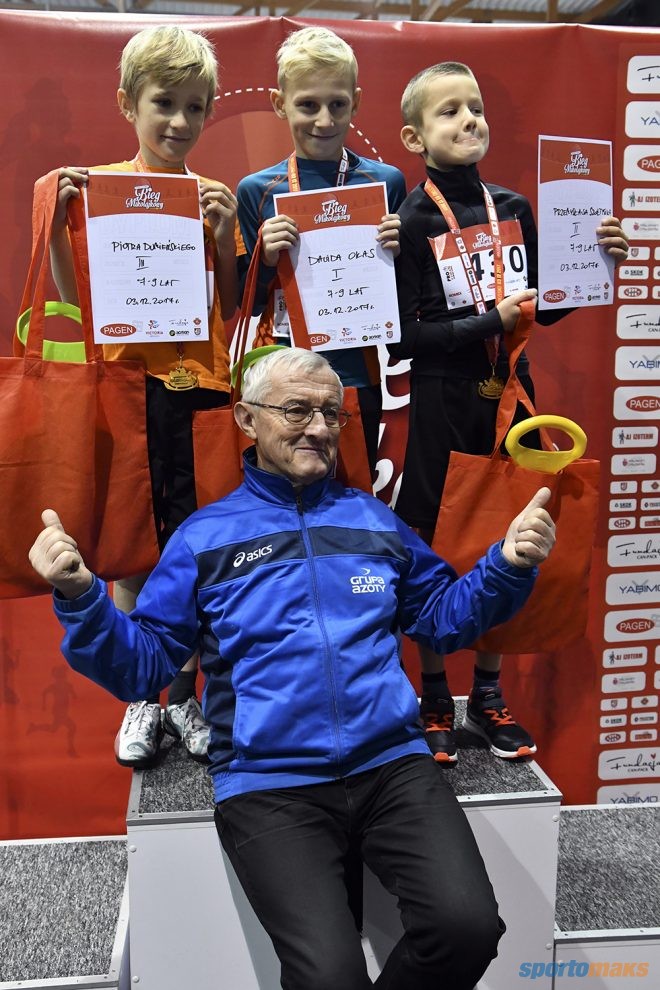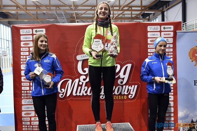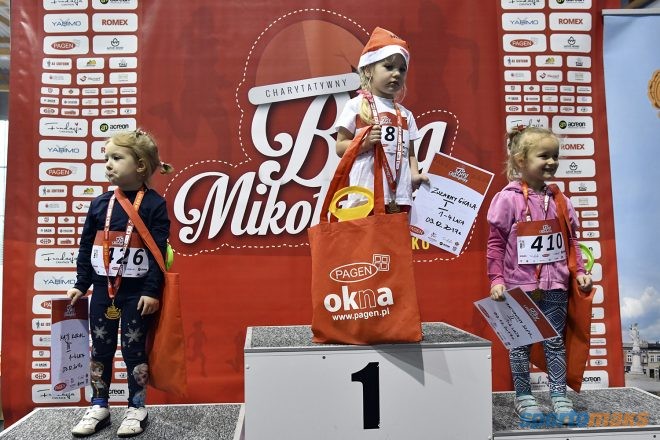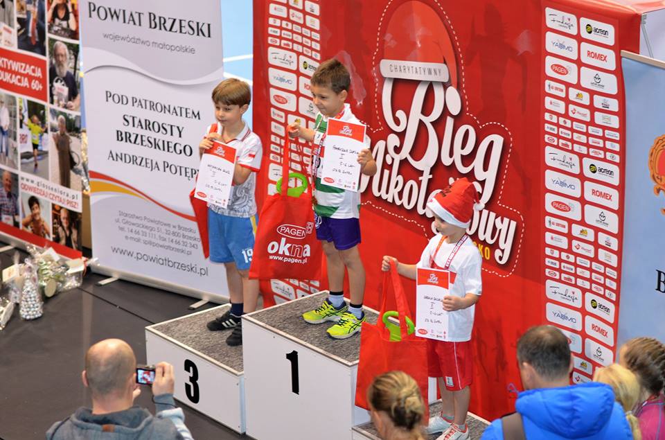 Wyniki halowych biegów dzieciDziewczynki w kategorii 1 - 4 lata: Zuzanna Gicala, Antonina Szpil, Kaja KuralChłopcy w kategorii 1 - 4 lata: Jakub Drużkowski, Michał Bednarz, Jan ŚwierczekDziewczynki w kategorii 5 - 6 lat: Lena Małek, Helena Kita, Martyna FitrzykChłopcy w kategorii 5 -6 lat: Franciszek Szpil, Karol Gicala, Wojciech KluzDziewczynki w kategorii 7 - 9 lat: Zofia Miśkowicz, Lena Łukowicz, Emilia NosalChłopcy w kategorii 7 - 9 lat: Dawid Okas, Przemysław Szołtysik, Piotr Dumieński(foto: sportomaks.pl)