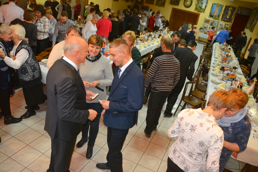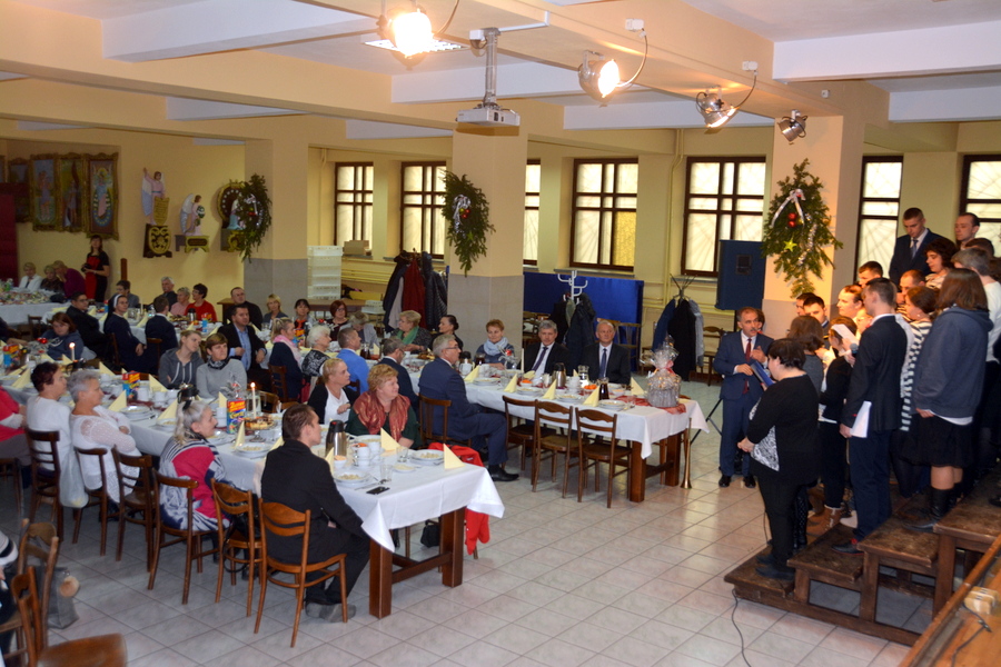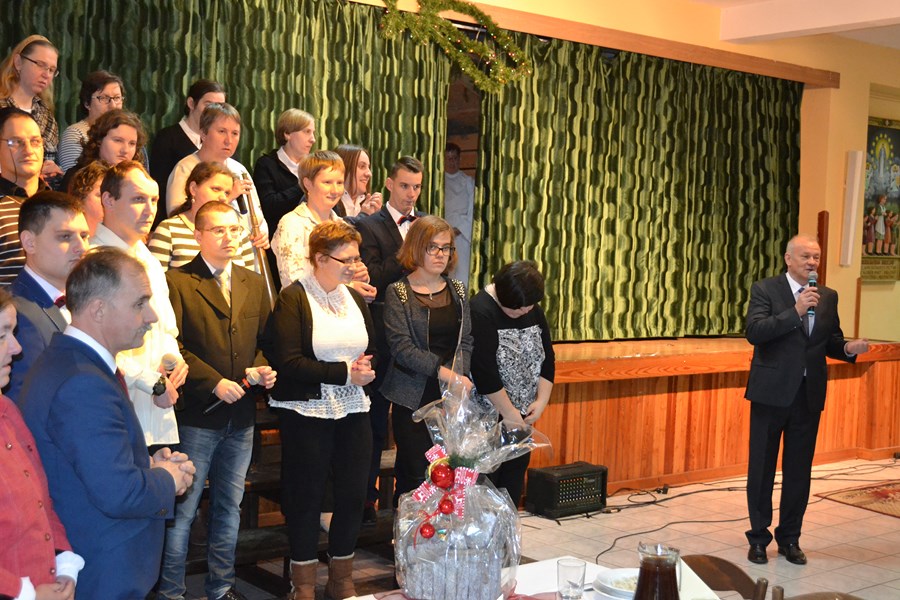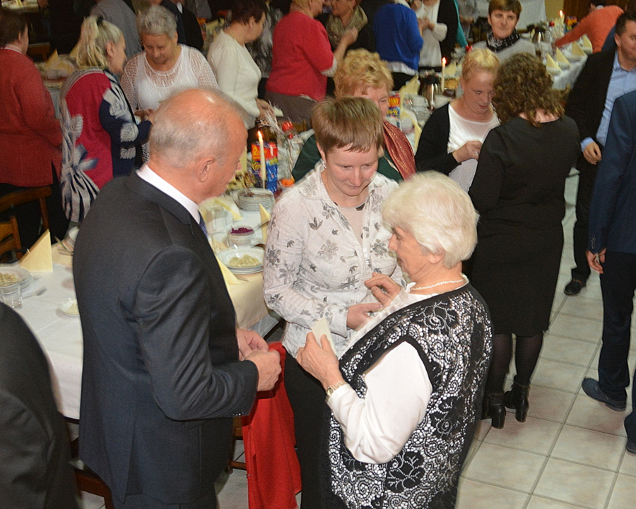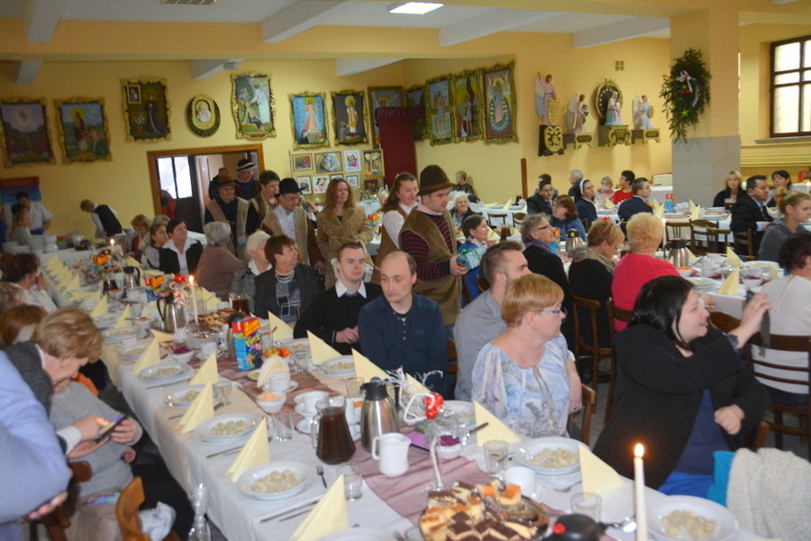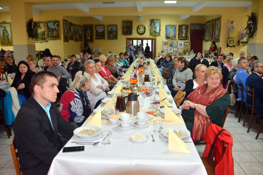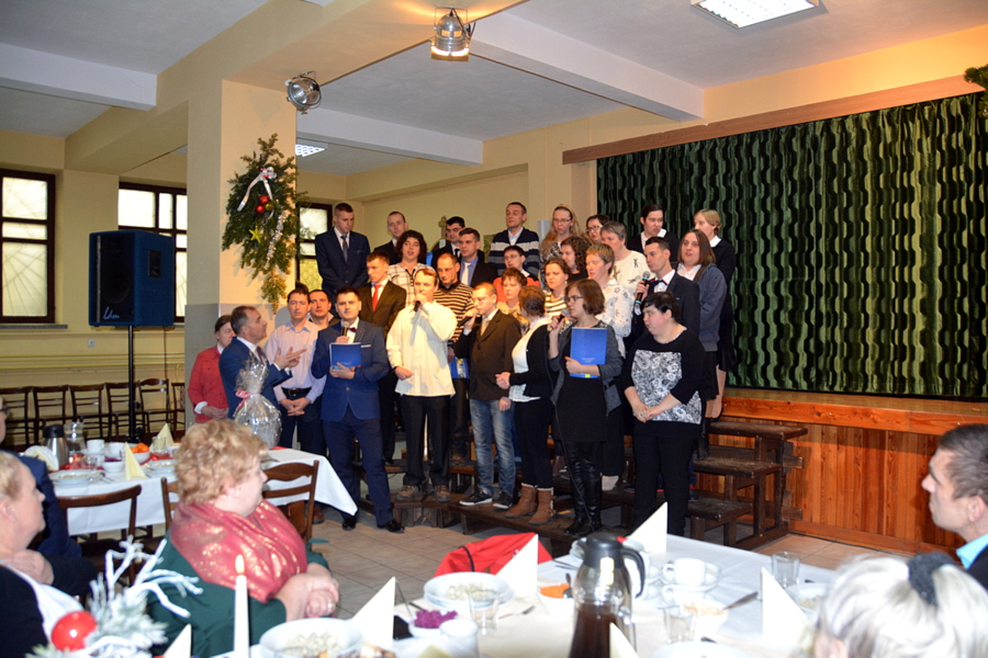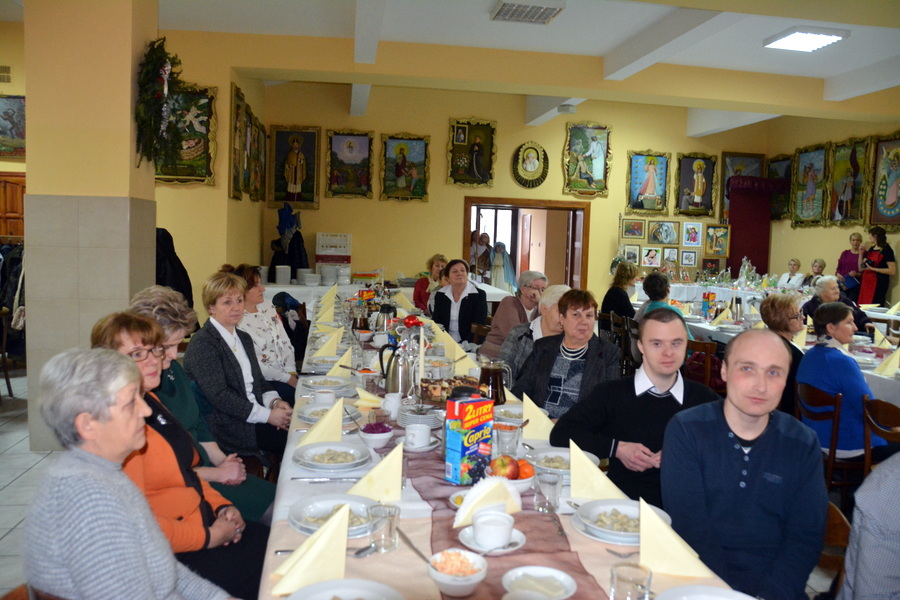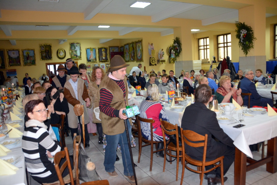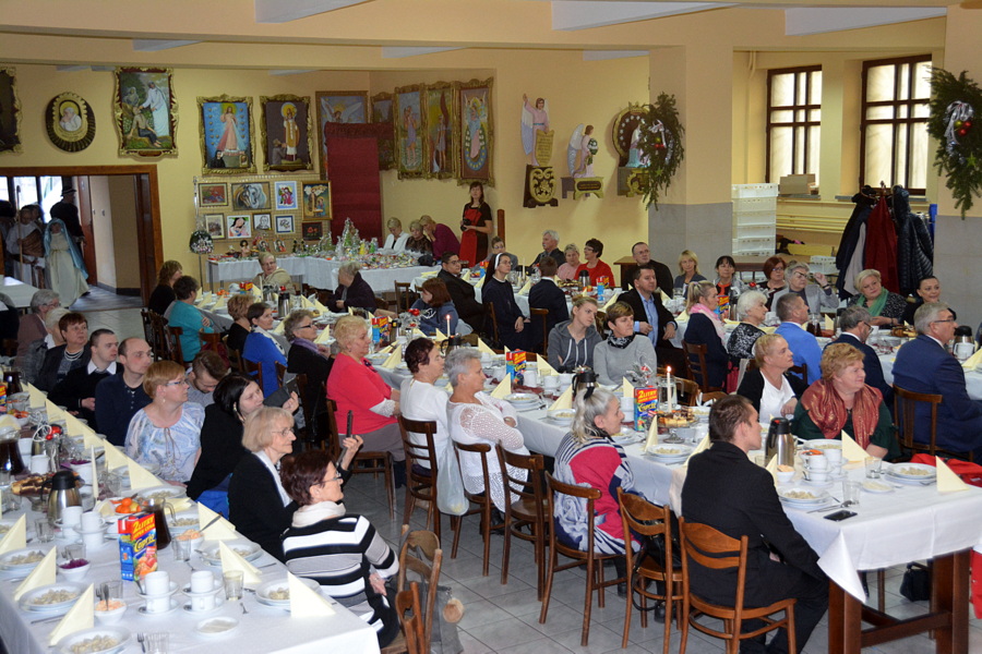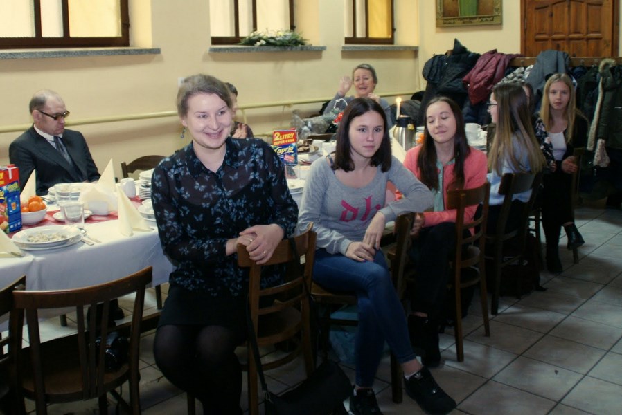 Na spotkaniu opłatkowym obecni byli także duszpasterz osób niepełnosprawnych ks. Józef Waśko, oraz proboszcz parafii NMP Matki Kościoła i Św. Jakuba Apostoła, prałat Józef Drabik, który odmówił modlitwę i poświęcił opłatki. Potem nadszedł czas na wzajemne życzenia i tradycyjne łamanie się opłatkiem. Następnie wszyscy zasiedli do wspólnego wigilijnego poczęstunku.