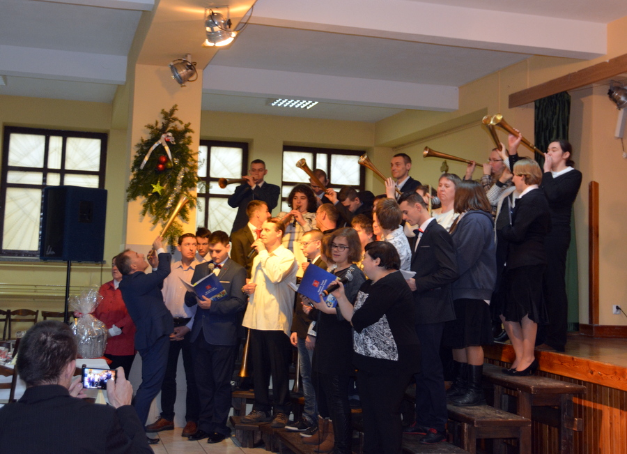 Życzenia świąteczne wraz ze słowami uznania dla uczestników i kadry warsztatu złożyli, burmistrz Grzegorz Wawryka, starosta Andrzej Potępa, prezes zarządu firmy ABM, Mirosława Morawska oraz panie Maria Góra i Urszula Majmurek z zarządu stowarzyszenia Ostoja.