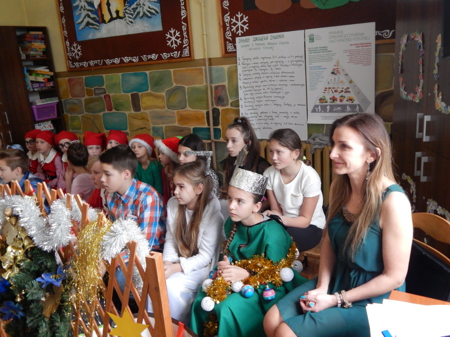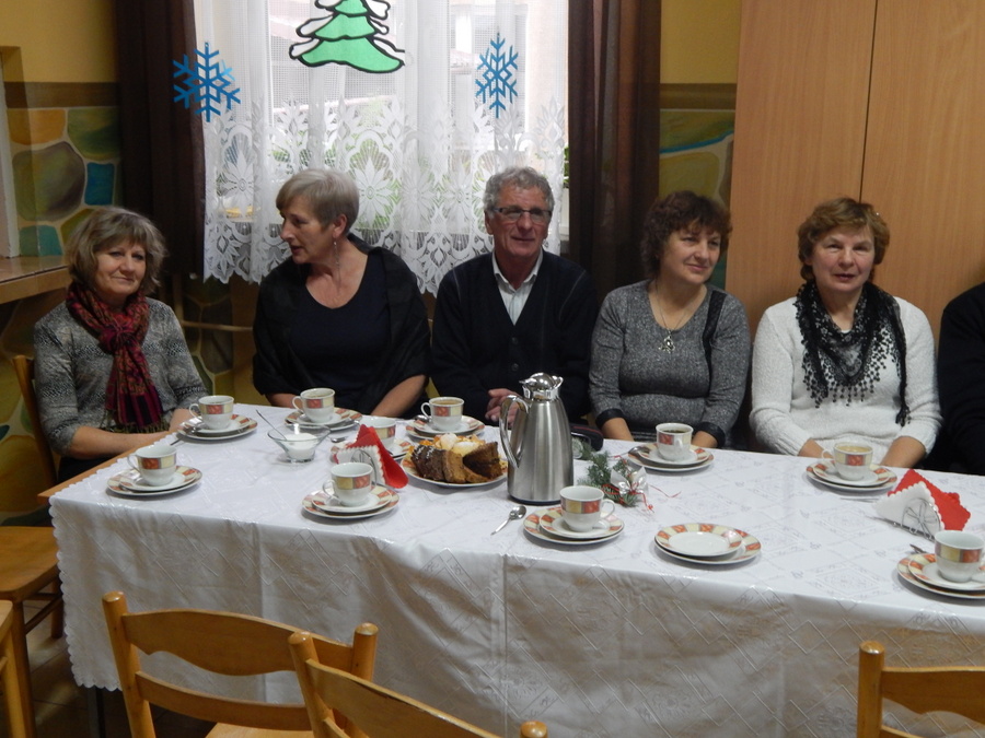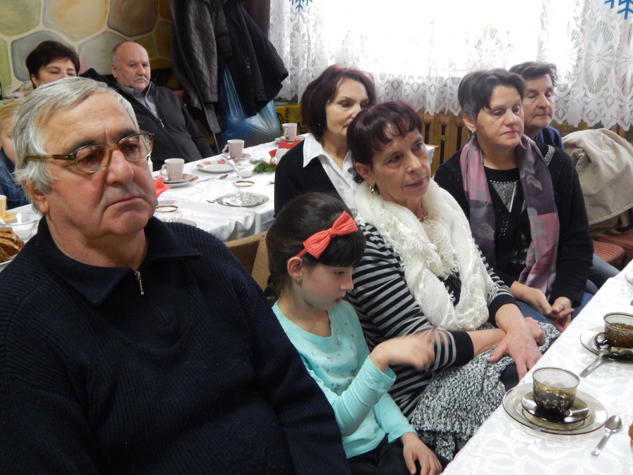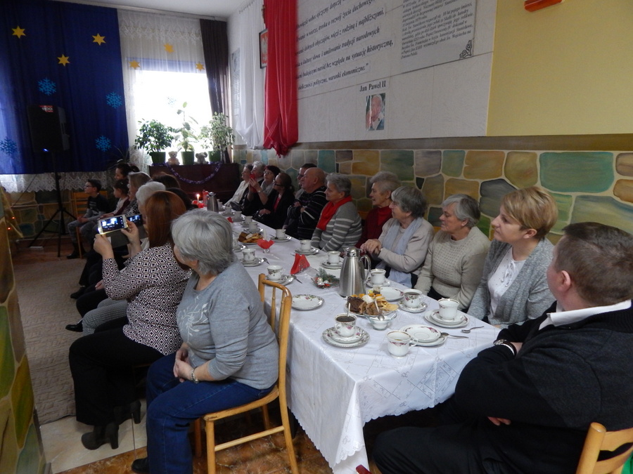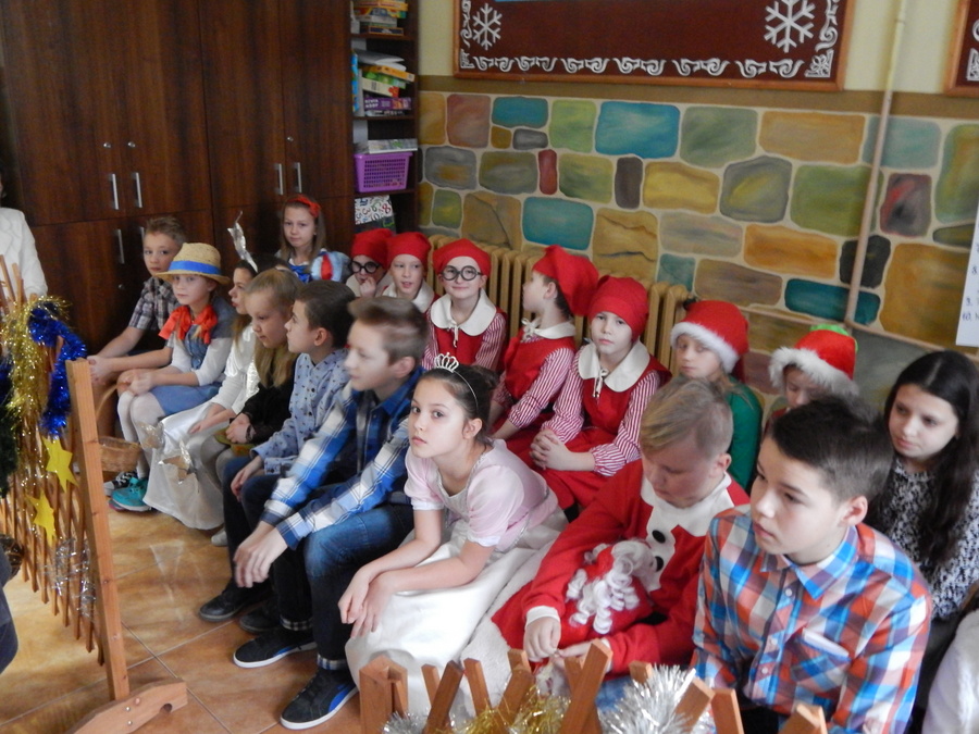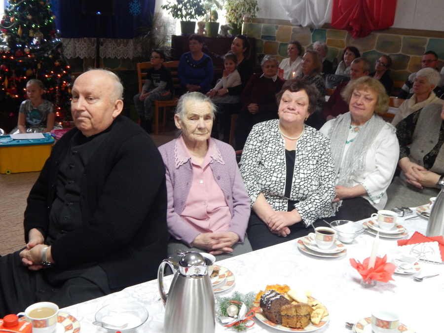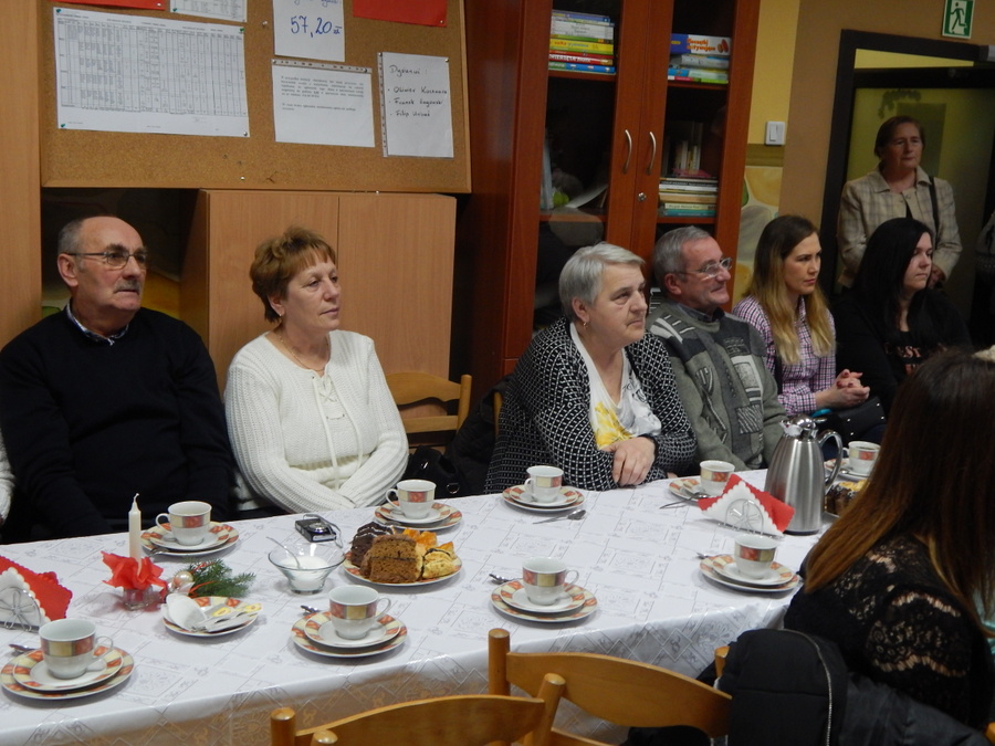 Pod czujnym okiem Kasi Kargol i Kasi Jandziś dzieci przygotowały dla seniorów przedstawienie „Ratujmy święta Bożego Narodzenia”, w którym nie zabrakło znanych bajkowych postaci, a nawiązywało ono do aktualnych problemów współczesnej rodziny. Dzieci podkreślały w przedstawieniu, że nic nie jest w stanie zastąpić babci i dziadka, żadne zabawki, komputerowe gry czy telewizor. Na zakończenie podarowały babciom i dziadkom własnoręcznie wykonane laurki. Nie zabrakło wspólnego kolędowania, a po nim wspólnego śpiewania starych piosenek, które seniorzy pamiętają z czasów swojej młodości. Pomógł w tym akordeonista pan Paweł.