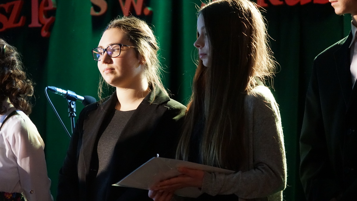 Klasy VII, II i III gimnazjum - soliści: Julia Górska„ Dlaczego dzisiaj wśród nocy dnieje”, Zuzanna Patulska „Ucichłeś Jezuleńku”, Kamila Roczniak „O gwiazdo Betlejemska” , wyróżnienia Wiktoria Wójtowicz, Aleksandra Dzieńska, Maria Mikołajek.
