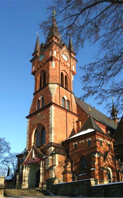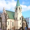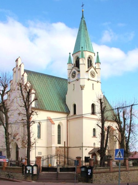 Eeen neo-gotische parochiekerk uit 1885 gesticht door Jan Evangelist Goetz - de stichter van de brouwerij - naar een ontwerp van architect Max Schweda uit Wenen. Het is een kruiskerk met twee kapellen in het transept en een gesloten aan drie zijden presbyterium. De kerk heeft een toren met daarop een stenen spits. In de kapel zijn grafschriften van Goetz familie o.a. van Jan Evangelist Goetz, gemaakt door beeldhouwer Zygmunt Langman uit Krakau naar ontwerp van beroemde architect Tomasz Pryliński en van Jan Albin Goetz gemaakt door Antoni Madeyski. Onder de kapel bevindt zich een crypte van Goetz familie.