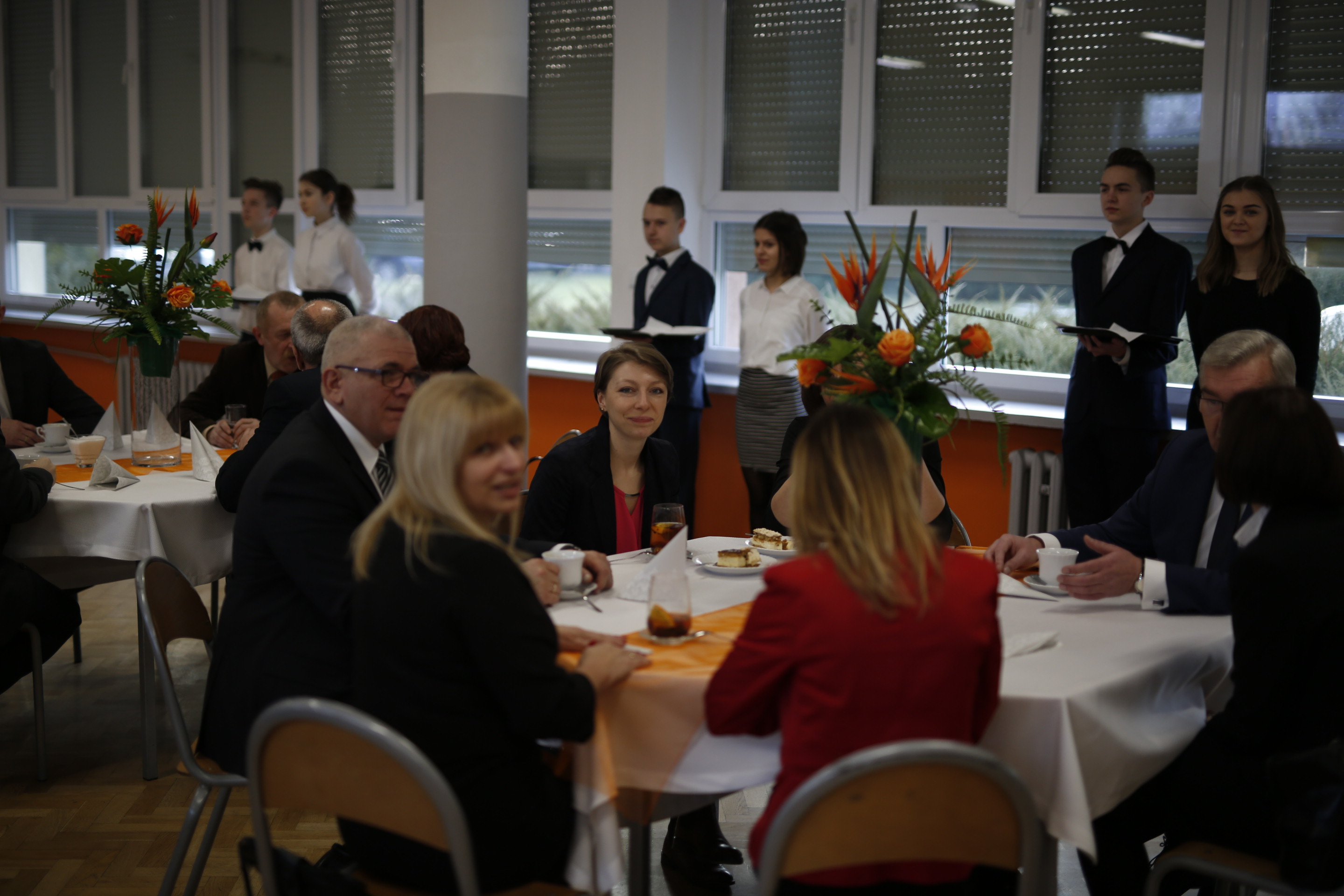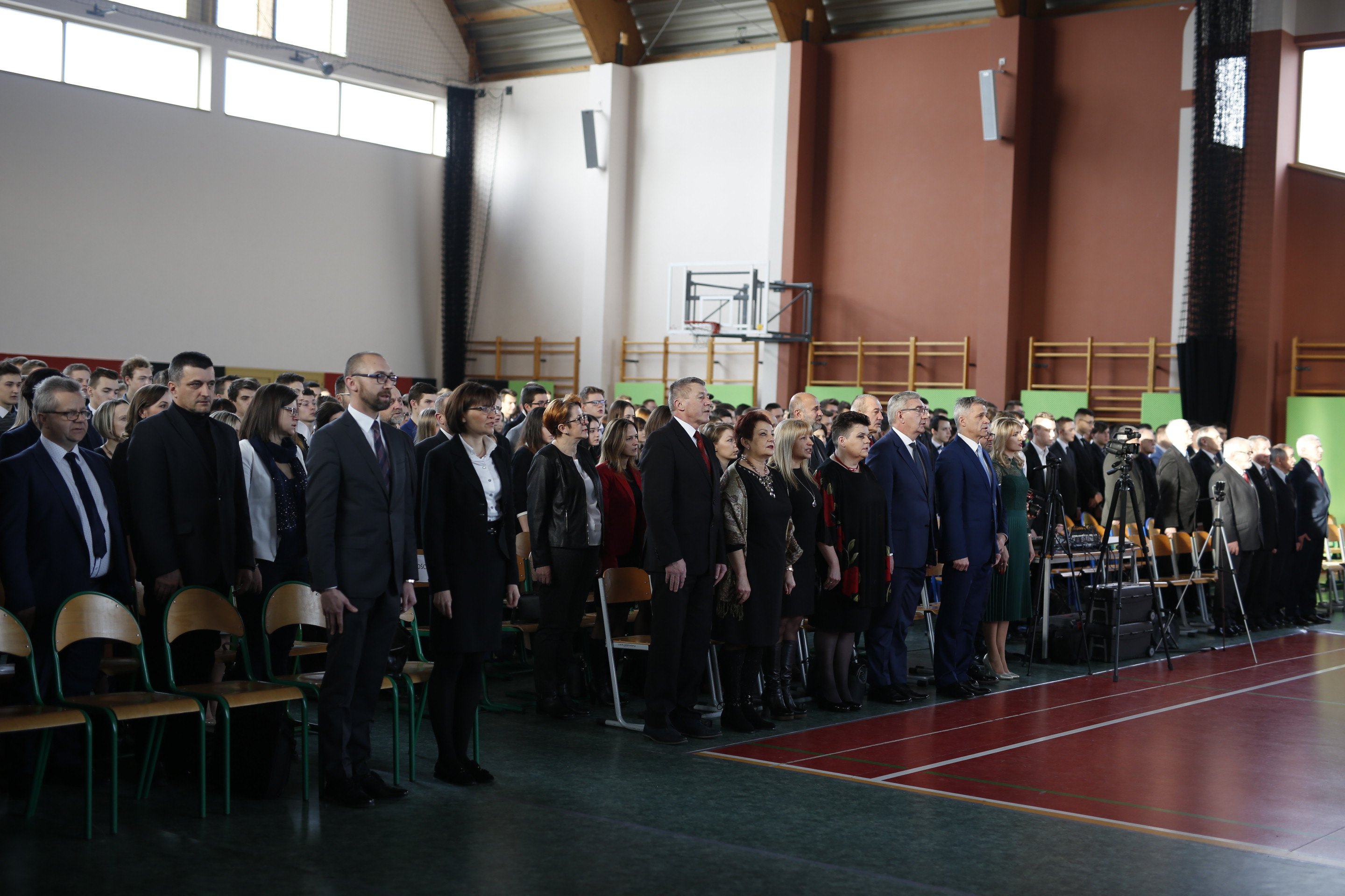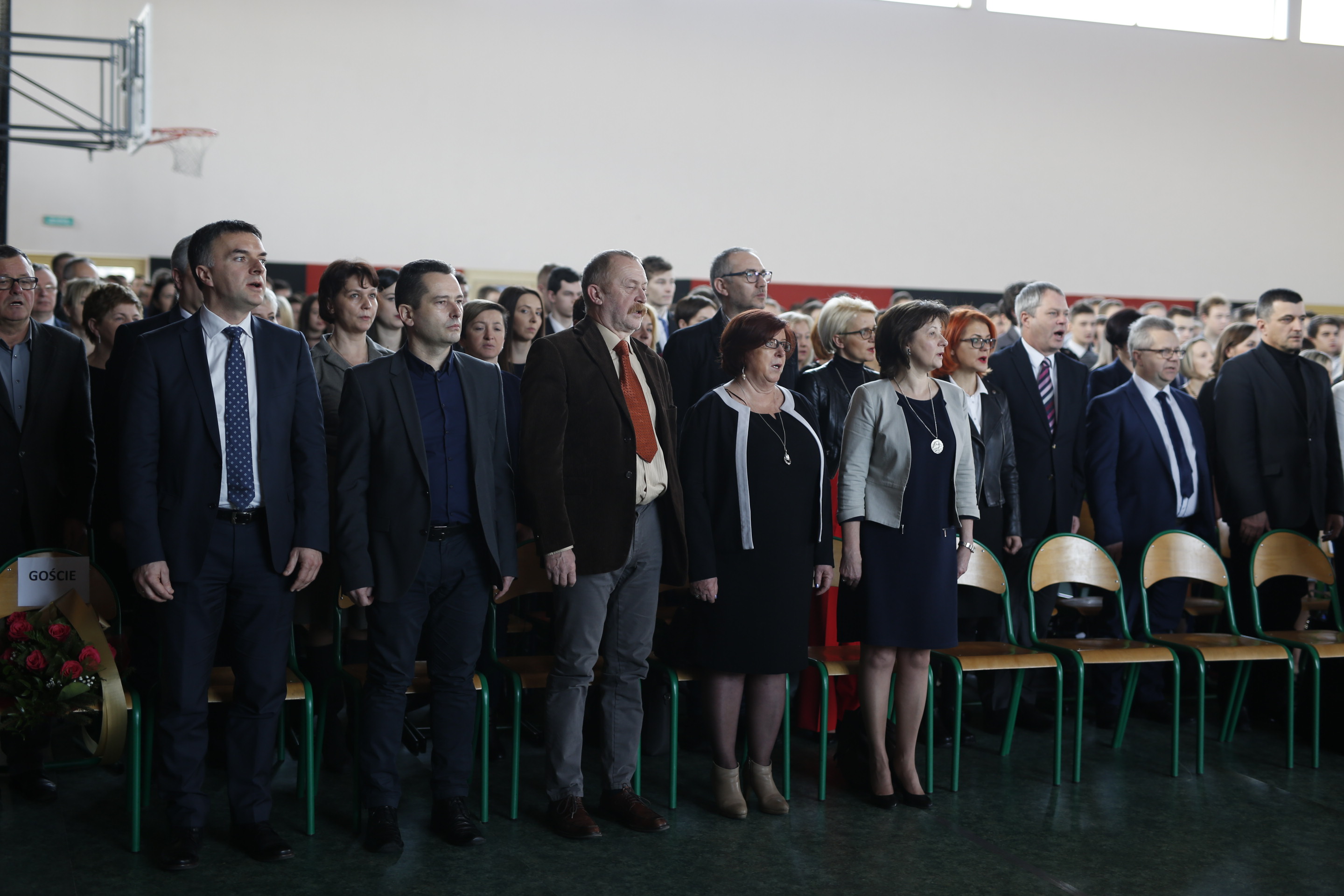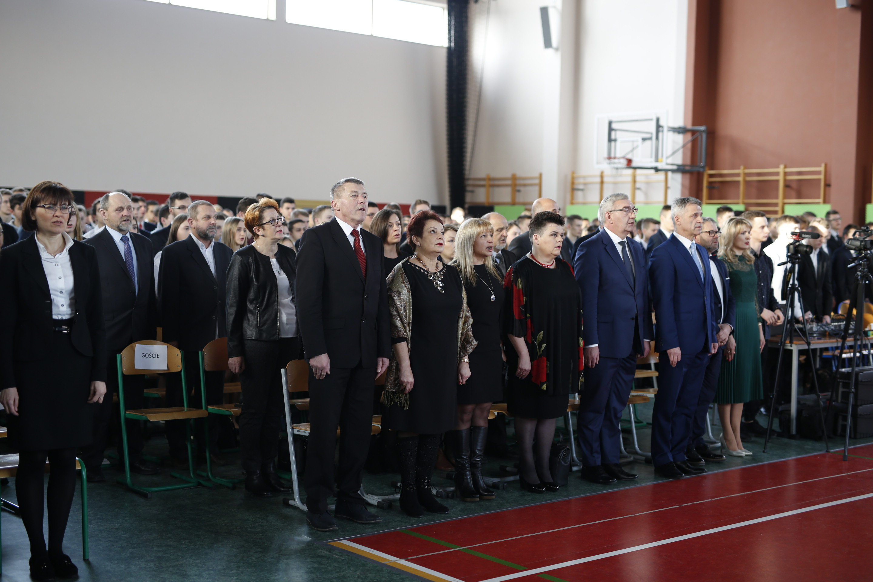Uroczystość rozpoczęła się zgodnie ze szkolnym ceremoniałem: wprowadzeniem pocztu sztandarowego i odśpiewaniem hymnu państwowego. Licznie zgromadzonych gości, w tym władze i radnych powiatu brzeskiego, dyrektorów lokalnych zakładów i przedsiębiorstw, dyrektorów szkół i placówek oświatowych z terenu powiatu brzeskiego, nauczycieli, pracowników oraz uczniów przywitał dyrektor, Jerzy Soska. W swym przemówieniu przedstawił atuty szkoły oraz zasługi, jakie dla jej rozwoju mieli dotychczasowi dyrektorzy i nauczyciele.