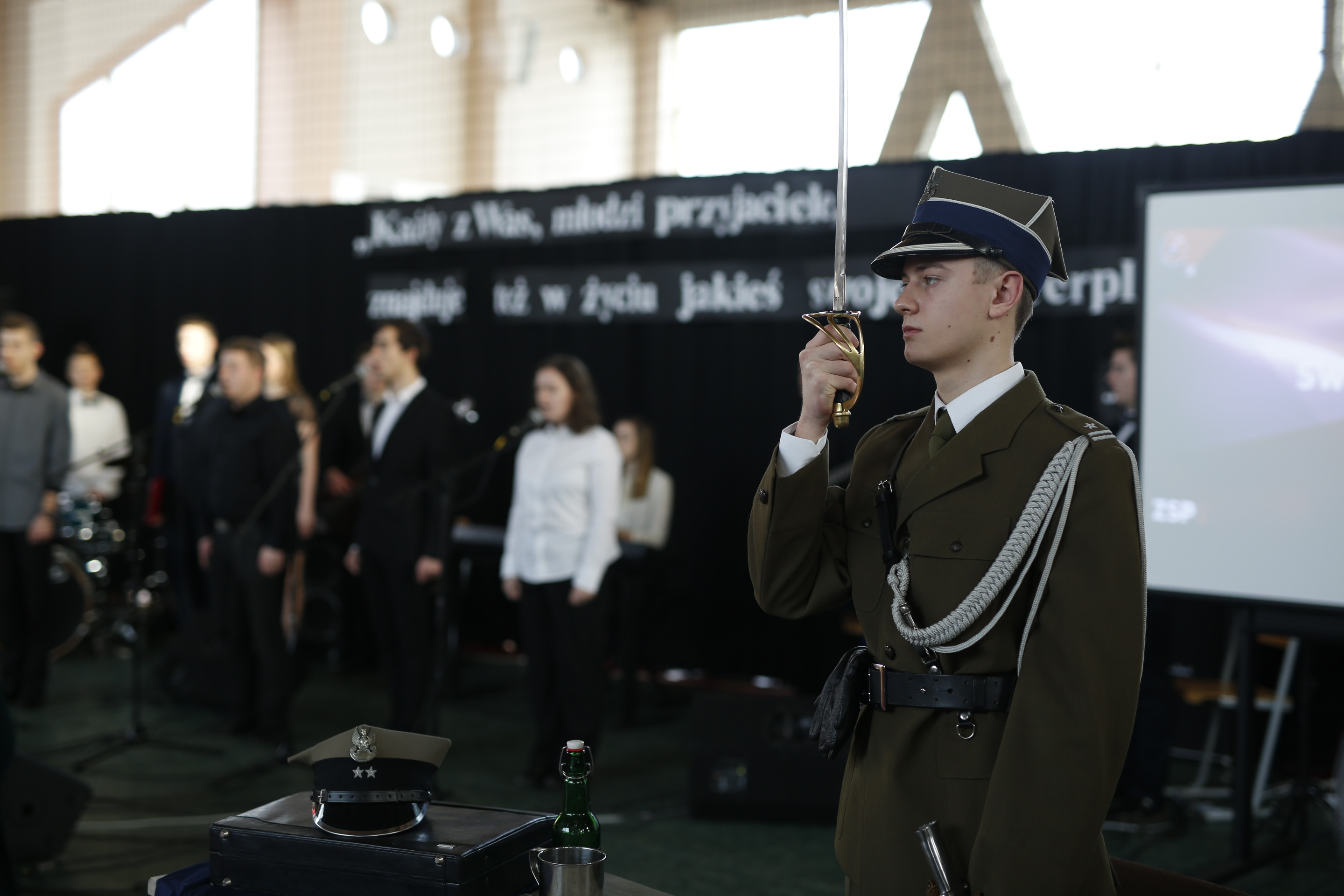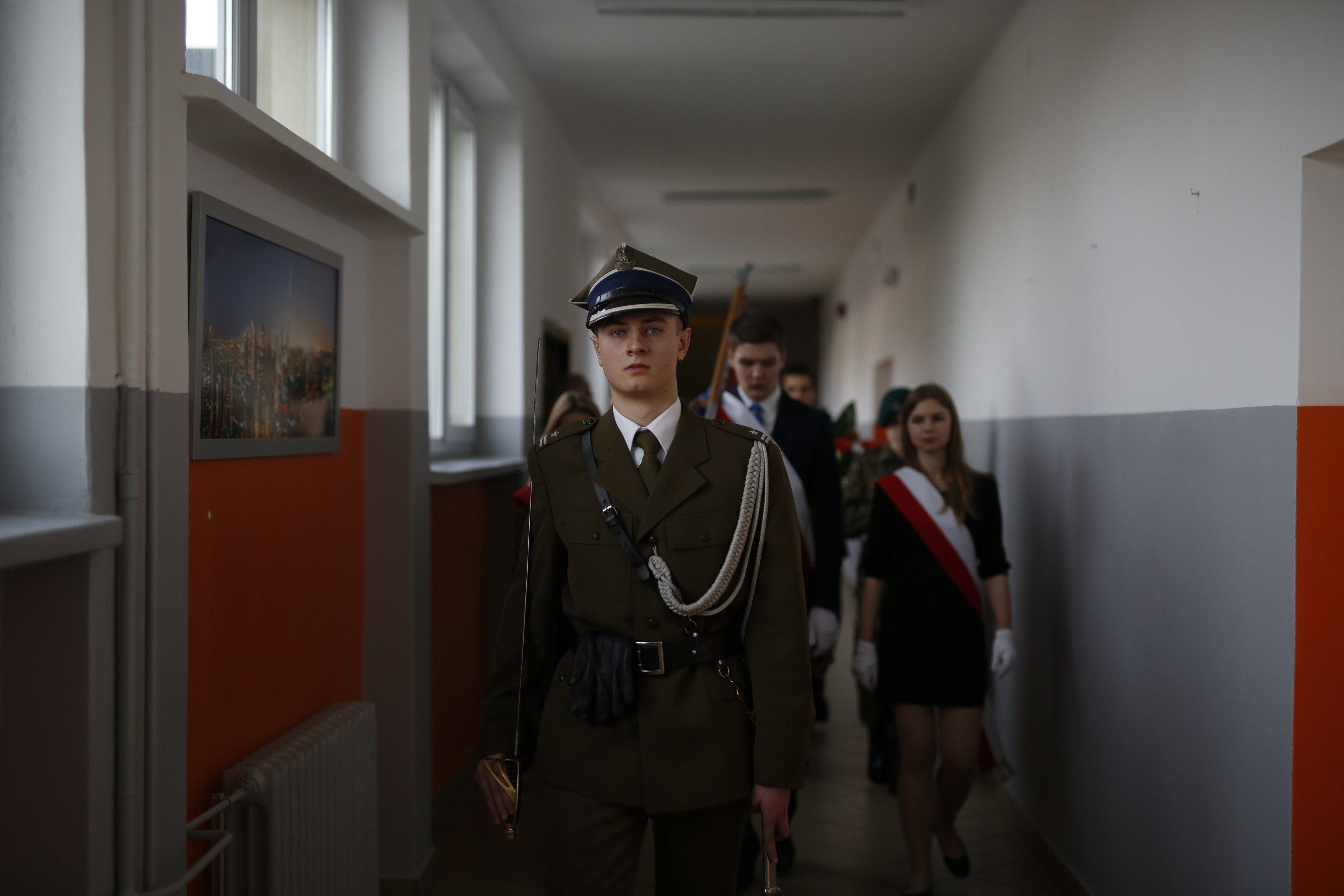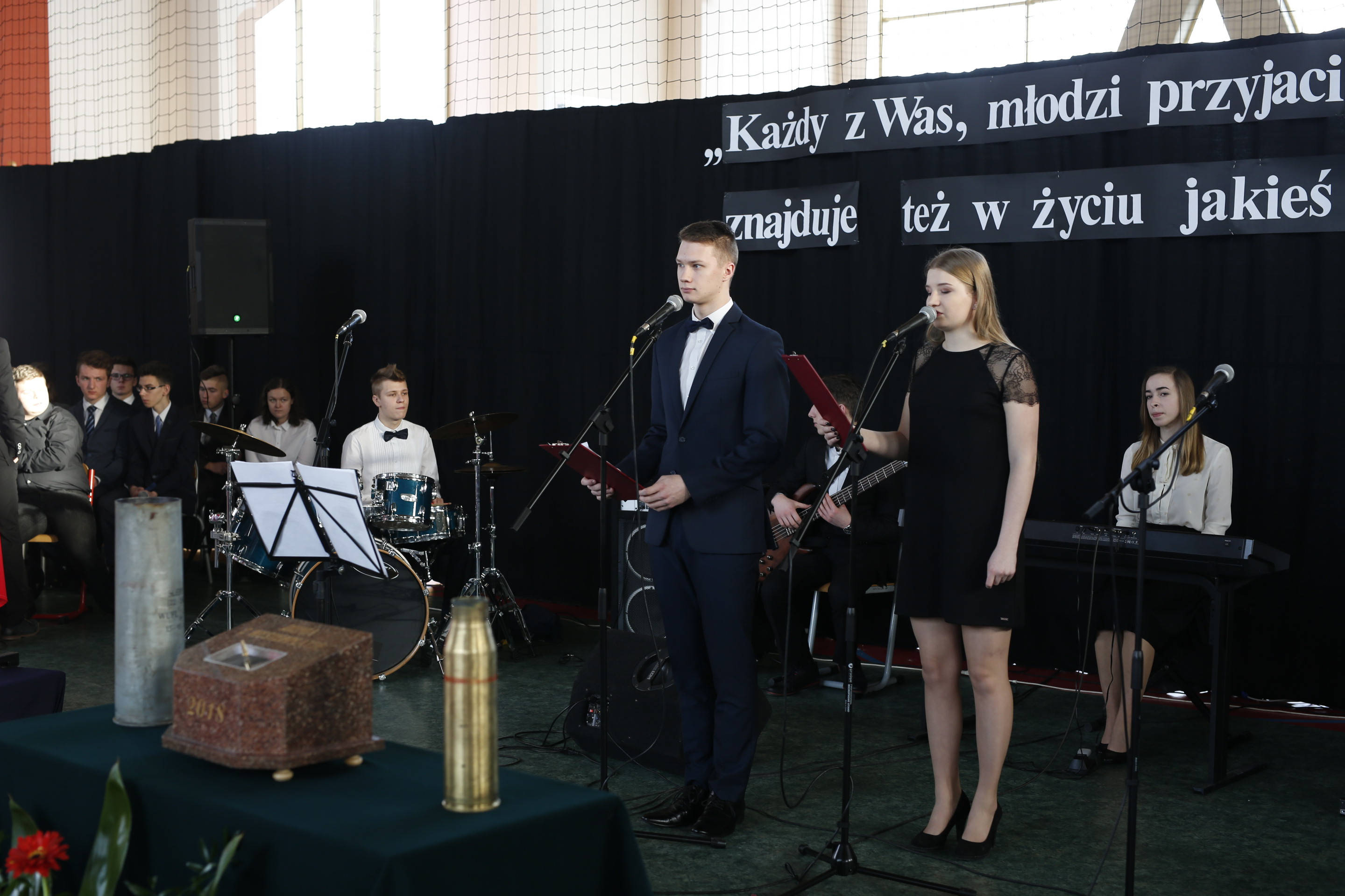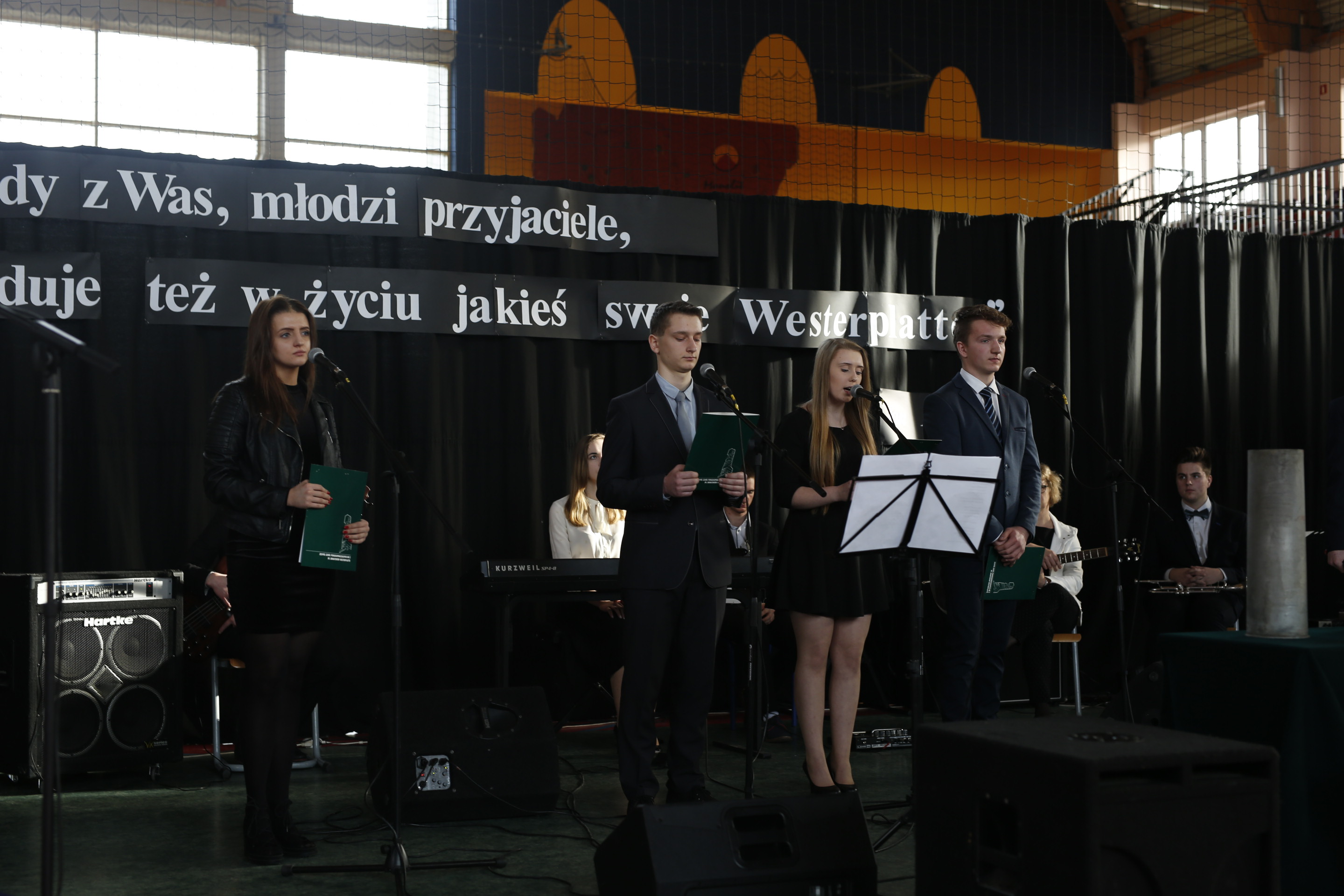 Następnie wicedyrektor szkoły, Patrycja Ptak-Żołna przedstawiła relację z wizyty samorządu uczniowskiego na Westerplatte. W pełnych powagi słowach odniosła się nie tylko do obowiązku pamiętania o naszych patronach, ale także konieczności brania z nich przykładu. Przywołując słowa św. Jana Pawła II „Każdy z Was znajduje też w życiu jakieś swoje Westerplatte, jakiś wymiar zadań, które trzeba podjąć i wypełnić, jakąś słuszną sprawę, o którą nie można nie walczyć...” wezwała młodych ludzi do odkrycia tego, co jest tym Westerplatte dla każdego z nich, do zajęcia zdecydowanej postawy obrony tego bezcennego przyczółka.