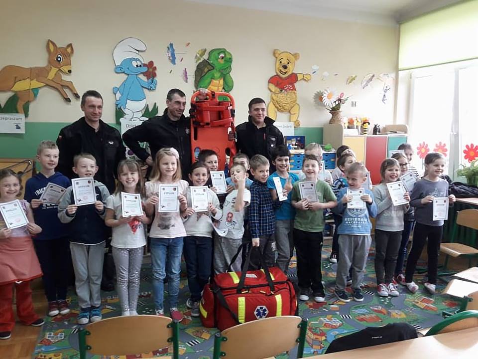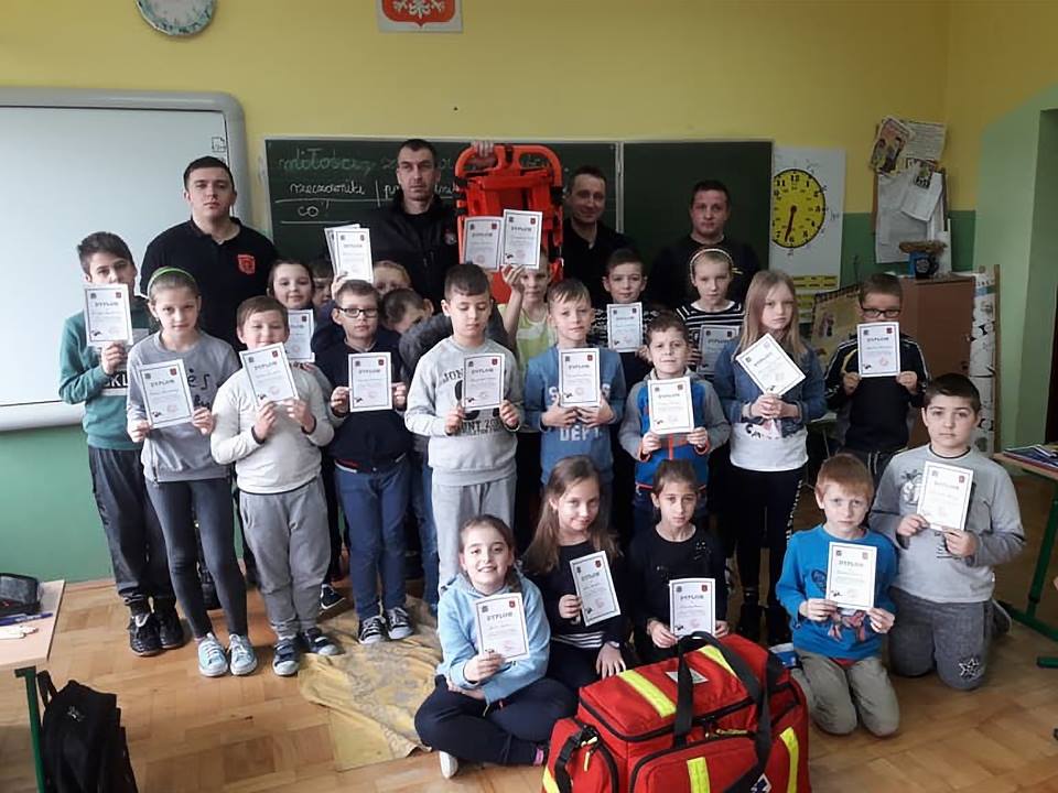 W ramach programu strażacy z OSP Jadowniki odwiedzili dwie tamtejsze szkoły podstawowe, gdzie w klasach I-III przeprowadzili zajęcia szkoleniowe. Dzieci z zaciekawieniem słuchały i aktywnie uczestniczyły w ćwiczeniach praktycznych dotyczących resuscytacji. Po zakończonym szkoleniu każdy uczestnik otrzymywał dyplom małego ratownika, łącznie przeszkolono ponad 100 uczniów.