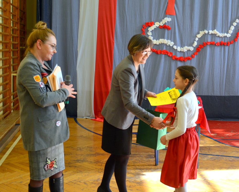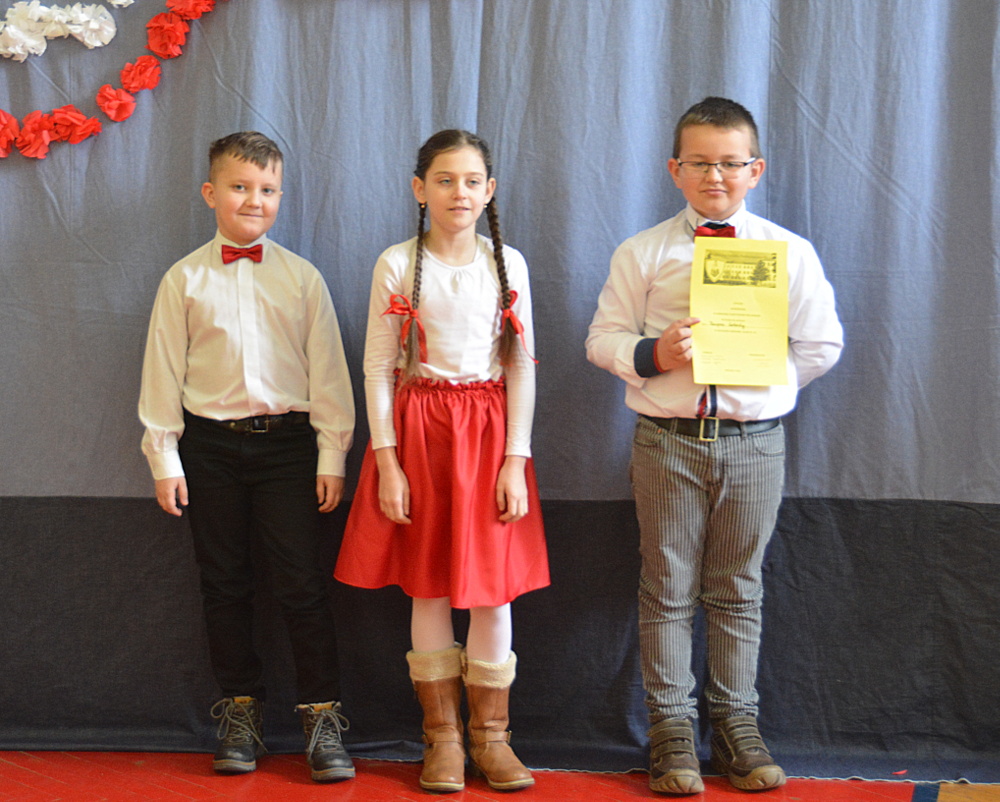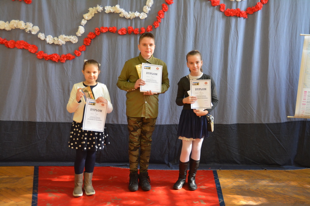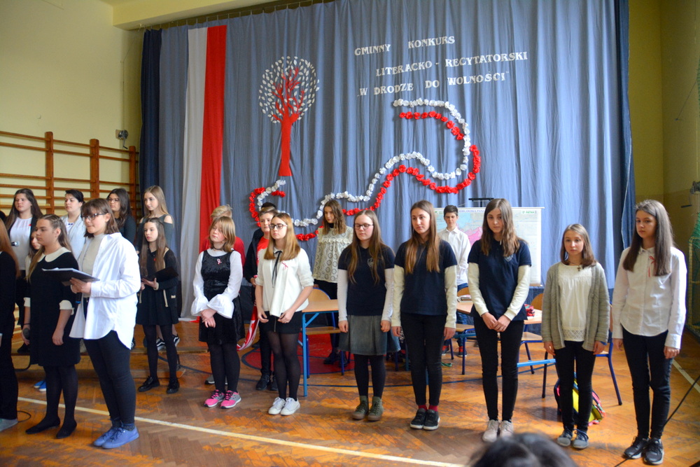 Uczniowie ci mieli szansę powalczyć o miejsca ,,na podium”. Każdy z nich w drugiej rundzie zaprezentował recytację wybranego przez siebie utworu o tematyce patriotycznej. Jury w składzie Karina Legutek - dyrektor Powiatowej i Miejskiej Biblioteki Publicznej, Maria Marek była dyrektor biblioteki Publicznej w Brzesku i Ewelina Stępień - instruktor teatralno - muzyczny Miejskiego Ośrodka Kultury uznało, że laureatami Gminnego Konkursu Literacko – Recytatorskiego „W drodze do wolności” zostali: W starszej grupie I miejsce Nadia Kita z PSP 2 w Brzesku; II miejsce Gabriela Duda z PSP 2 w Brzesku; III miejsce Dominika Cholewa z PSP w Morzyskach. W młodszej grupie: I miejsce Maciej Żurek z PSP 3 w Brzesku; II miejsce Aleksandra Serwatka z PSP w Porębie Spytkowskiej i III miejsce Maria Jurek z PSP w Sterkowcu.