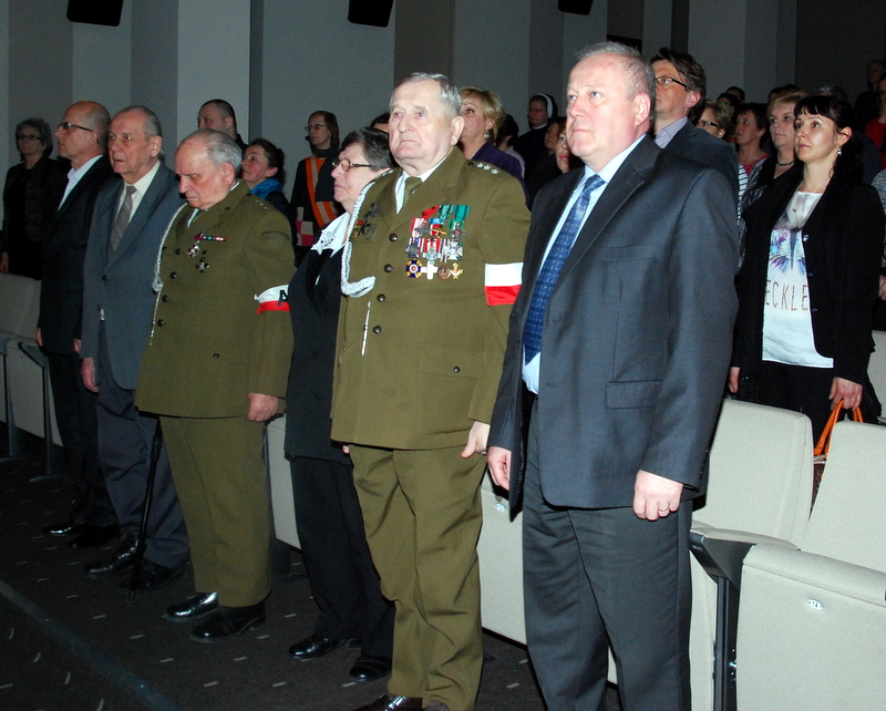 W poniedziałkowe popołudnie zapełniła się sala widowiskowa Regionalnego Centrum Kulturalno-Bibliotecznego mieszkańcami gminy, którzy chcieli obejrzeć projekt „Żołnierze Niezłomni, Niepokorni, Wyklęci – pamiętamy!” zrealizowany przez uczniów i nauczycieli Publicznego Gimnazjum nr 2. Honorowymi gośćmi spotkania byli uczestnicy i świadkowie tamtych wydarzeń, członkowie brzeskiego koła Armii Krajowej porucznicy rezerwy: Władysław Tucznio, Jan Opiła, Stefan Marzec oraz pani Krystyna Misiak.