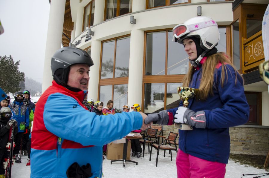 Po zakończeniu każdej kategorii odbywało się wręczenie pucharów dla trzech najlepszych zawodników. Nagrodzeni olbrzymimi pucharami zostali również dziewczyna i chłopak, którzy dokonali zjazdu w najszybszym czasie.