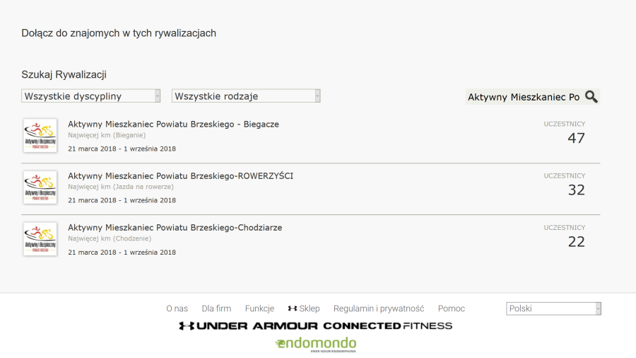 Już 21 marca rusza kolejna edycja akcji „Aktywny i bezpieczny powiat brzeski”. Spacerujesz? Biegasz? Uprawiasz nordic walking? A może jeździsz na rowerze? Zapraszamy Cię do wspólnego pokonywania kolejnych kilometrów. Stary pierwszego dnia wiosny! Zarejestruj się w aplikacji Endomondo, stwórz swój profil i dołącz do grona aktywnych mieszkańców powiatu brzeskiego! Uczestnicy będą konkurować w dwóch grupach: kobiet i mężczyzn. Rywalizacja podzielona zostanie na trzy kategorie aktywności: biegacze, chodziarze i rowerzyści. Pamiętaj, aby włączyć aplikację zawsze, gdy chodzisz, biegasz lub jeździsz, dzięki temu przebyte kilometry zwiększą Twoje szanse w rywalizacji. Ranking dostępny w aplikacji Endomondo pozwoli Ci na bieżąco monitorować postępy konkurencji. Mobilizujący charakter rywalizacji zachęci do zintensyfikowania Twojej aktywności.