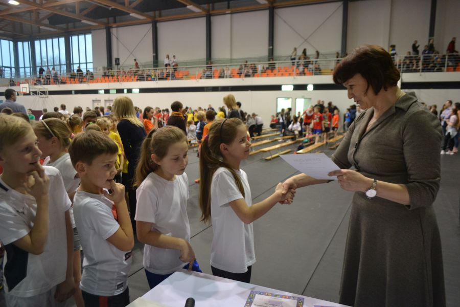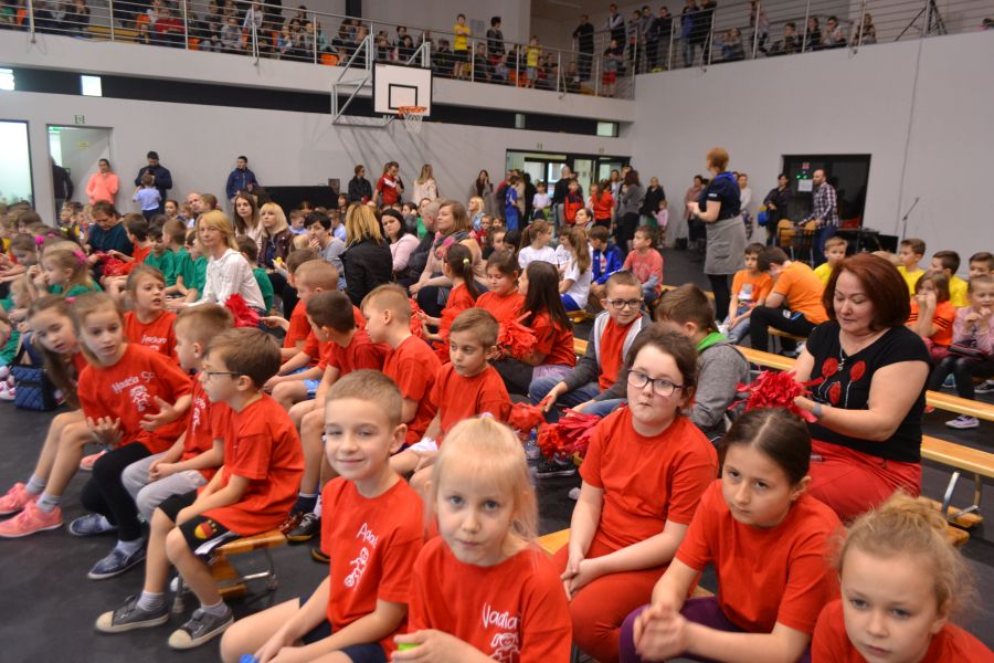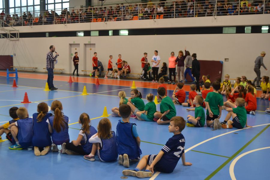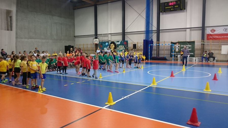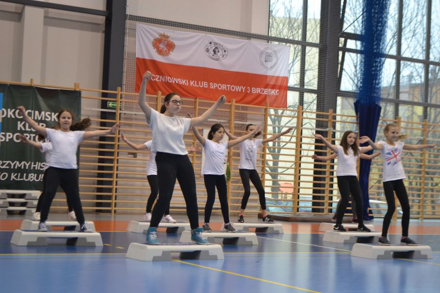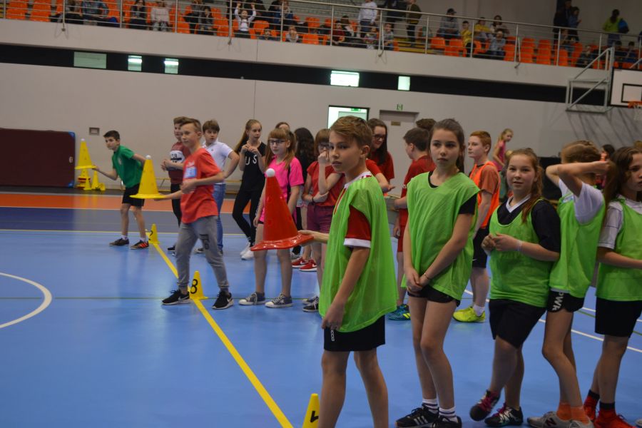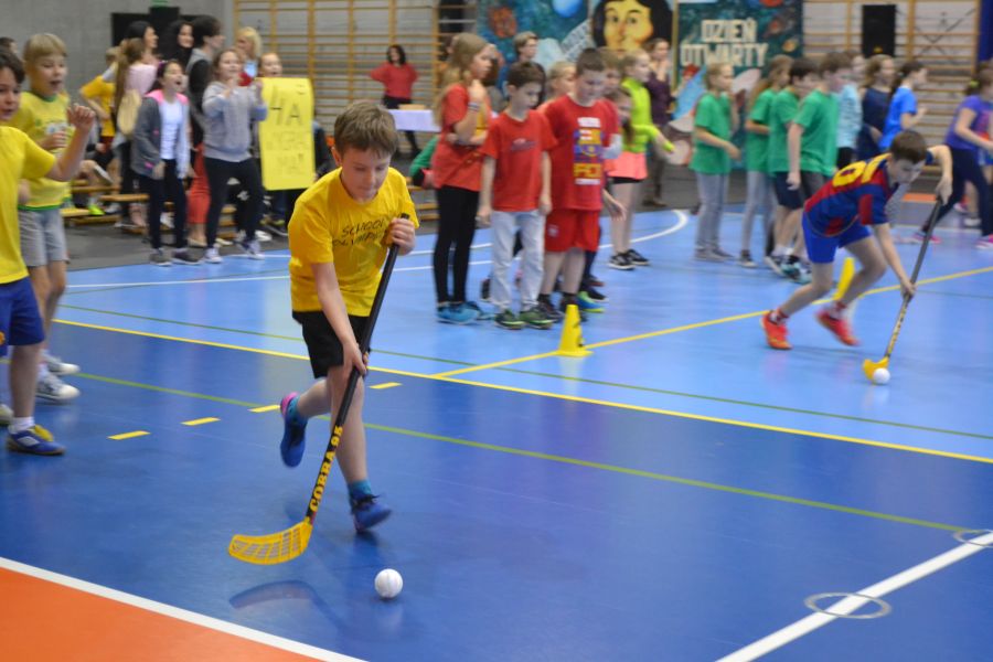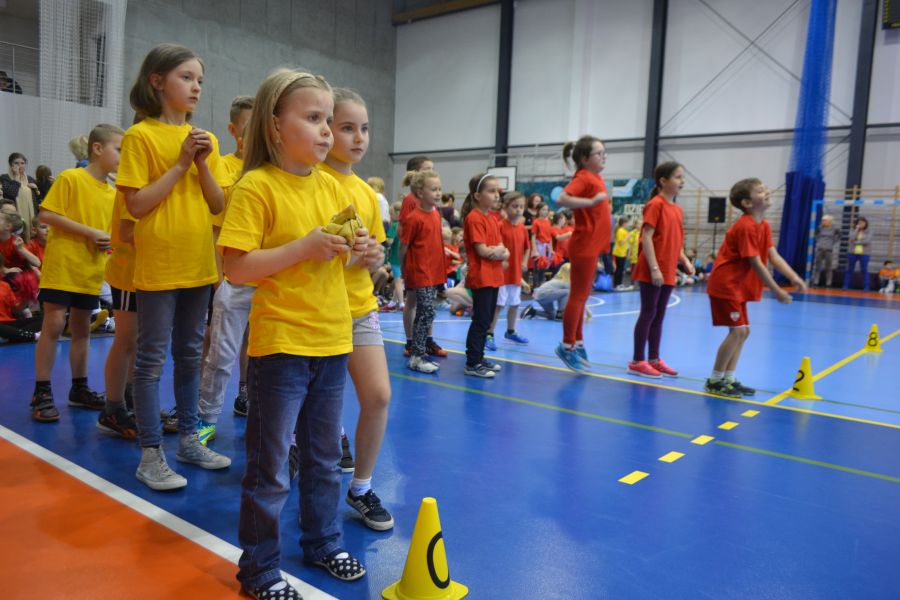 Po zajęciach pokazowych wszyscy uczestnicy dnia otwartego udali się do hali sportowej, gdzie zebranych powitała dyrektor Dorota Wójcik. Następnie zaprezentowały się dziewczęta z sekcji aerobiku UKS „Trójeczki” Brzesko, a potem odbyły się zawody sportowe dla klas I – VI. Młodzi zawodnicy, dopingowani przez swoich kolegów oraz rodziców brawurowo zmierzyli się z różnorodnymi konkurencjami przygotowanymi przez nauczycieli wychowania fizycznego. Wszyscy walczyli bardzo dzielnie, pamiętając jednak, że najważniejsza jest dobra zabawa, a nie miejsce na podium. Na zakończenie zawodów każda drużyna otrzymała drobne upominki oraz zdrową przekąskę. Ostatnim punktem dnia otwartego był spektakularny mecz piłki ręcznej – reprezentacja uczniów klas VII zmierzyła się ze swoimi nauczycielami i rodzicami. I tym razem nie chodziło o zwycięstwo, a o radosną rywalizację w interesującym dla uczniów spotkaniu.