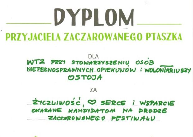 Fundacja Anny Dymnej „Mimo wszystko” uhonorowała także brzeski Warsztat Terapii Zajęciowej, działający przy Stowarzyszeniu Osób Niepełnosprawnych, Opiekunów i Wolontariuszy „Ostoja” mianem Przyjaciela Zaczarowanego Ptaszka. To zaszczyt być w Rodzinie Zaczarowanej Piosenki. W tym gronie znajduje się wiele stowarzyszeń i organizacji, a także wielu znanych muzyków, artystów i aktorów, którzy swoim sercem i życzliwością wspierają osoby niepełnosprawne w drodze do realizacji ich muzycznych i artystycznych marzeń.