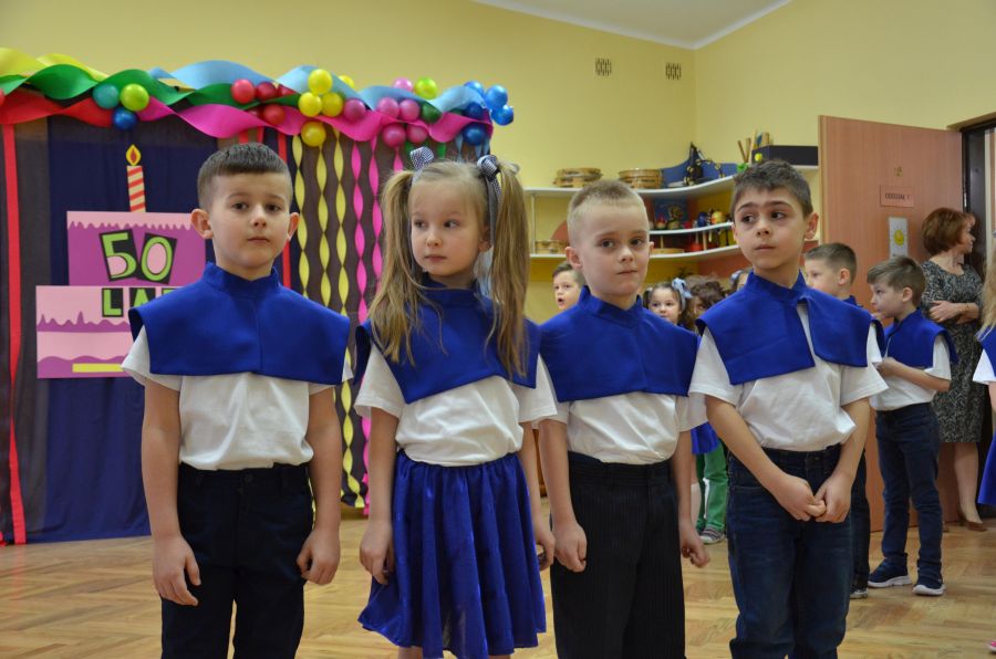 Z okazji złotego jubileuszu przedszkola dyrektor przekazała serdeczne podziękowania współpracownikom i nauczycielom za ogromny wysiłek wkładany w wychowanie najmłodszych, za serce, uśmiech i cierpliwość. Administracji i obsłudze za przykładne wykonywanie swoich obowiązków, za współpracę, zaangażowanie i poświęcenie się na rzecz tworzenia niepowtarzalnego wizerunku przedszkola.