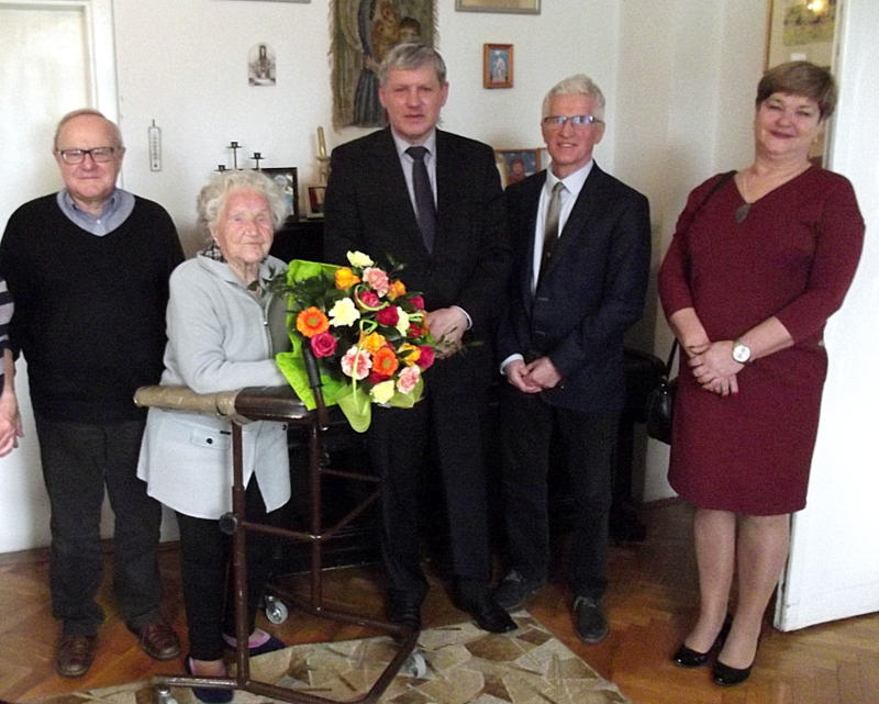 101. urodziny świętowała Pani Halina Biernat, Jubilatkę odwiedził burmistrz Grzegorz Wawryka, kierownik USC Aleksandra Fijałkowska oraz przewodniczący Zarządu Osiedla Zielonka Antoni Staszczyk. Były kwiaty i moc życzeń zdrowia i pomyślności na dalsze lata.
