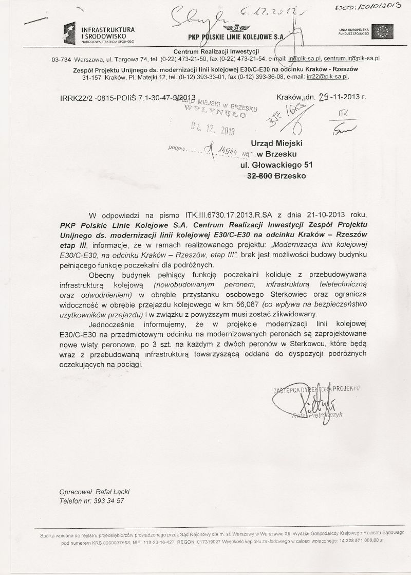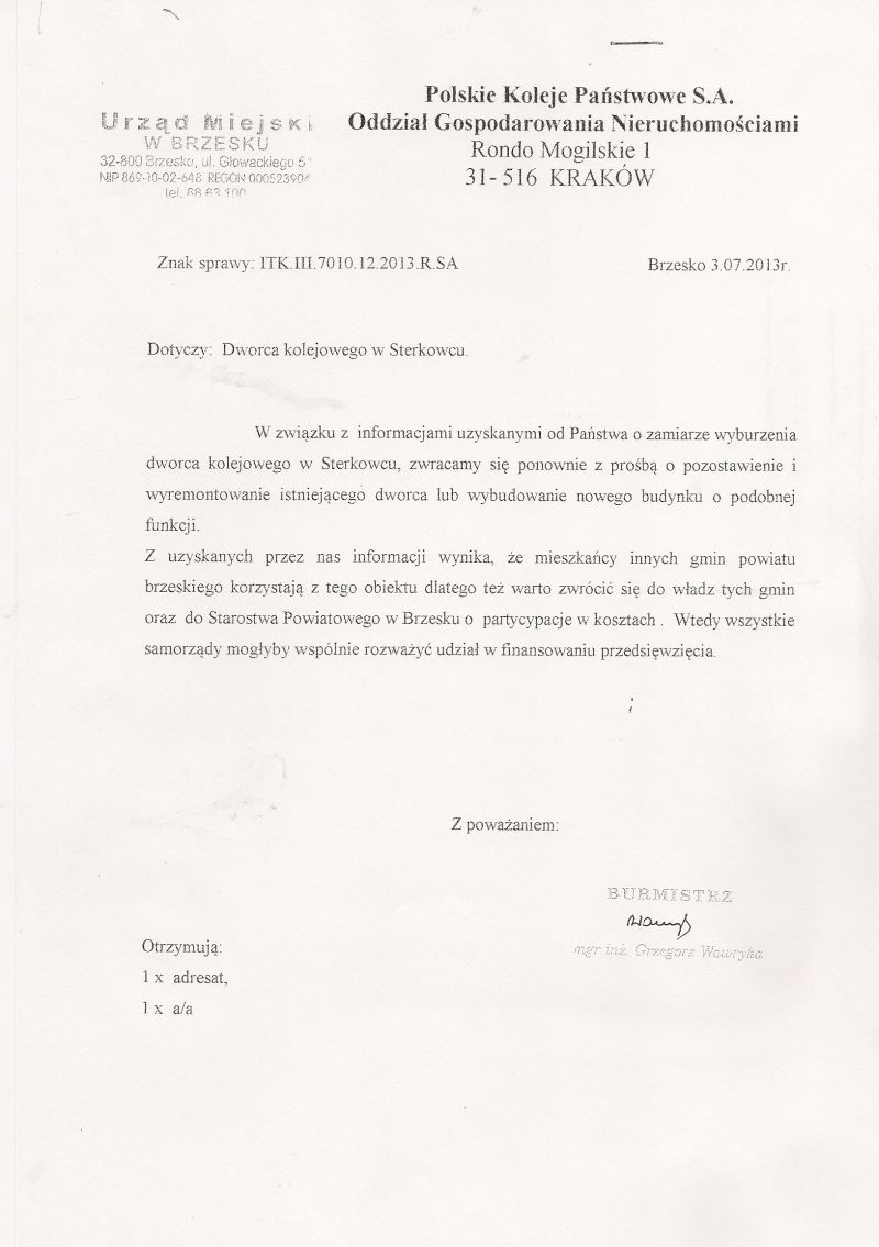 .- Jestem zadowolony, że w Jasieniu nasze działania znalazły pozytywny oddźwięk u władz PKP i powstały nowoczesne wiaty i perony, a kolejarze wyremontowali budynek przystanku. Jesteśmy po kilku spotkaniach z decydentami PKP i sądzę, że już w niedługim czasie otrzymamy ostateczną informację, czy budynek w Sterkowcu będzie remontowany. Jako gmina chcemy zainwestować środki, jeżeli zajdzie potrzeba, w zakup nowoczesnej poczekalni i budowę parkingu. Liczymy na konkretne deklaracje wójtów sąsiednich, zainteresowanych gmin, których mieszkańcy też korzystają z tego przystanku - mówi burmistrz Grzegorz Wawryka