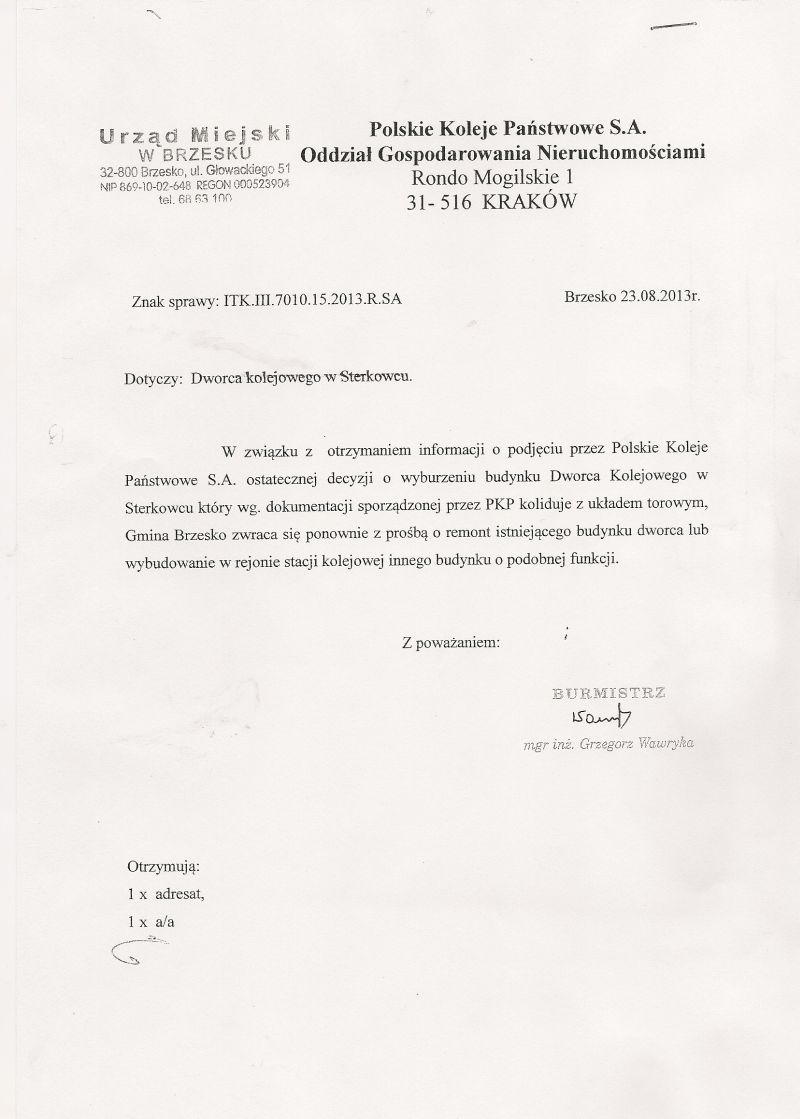 Należy potwierdzić, że remonty budynków stacyjnych leżą w gestii władz PKP, gdyż to one są właścicielami budowli i terenów. Samorząd gminny nie może przeznaczać środków finansowych na remonty bądź utrzymanie przystanków, dworców i poczekalni kolejowych. Jednak w sytuacjach, które mogłyby skomplikować, czy pogorszyć komfort oczekiwania na coraz punktualniejsze pociągi samorządowcy brzescy swoimi zdecydowanymi i zaplanowanymi działaniami starają się pomóc nie tylko swoim mieszkańcom ale też mieszkańcom innych gmin.