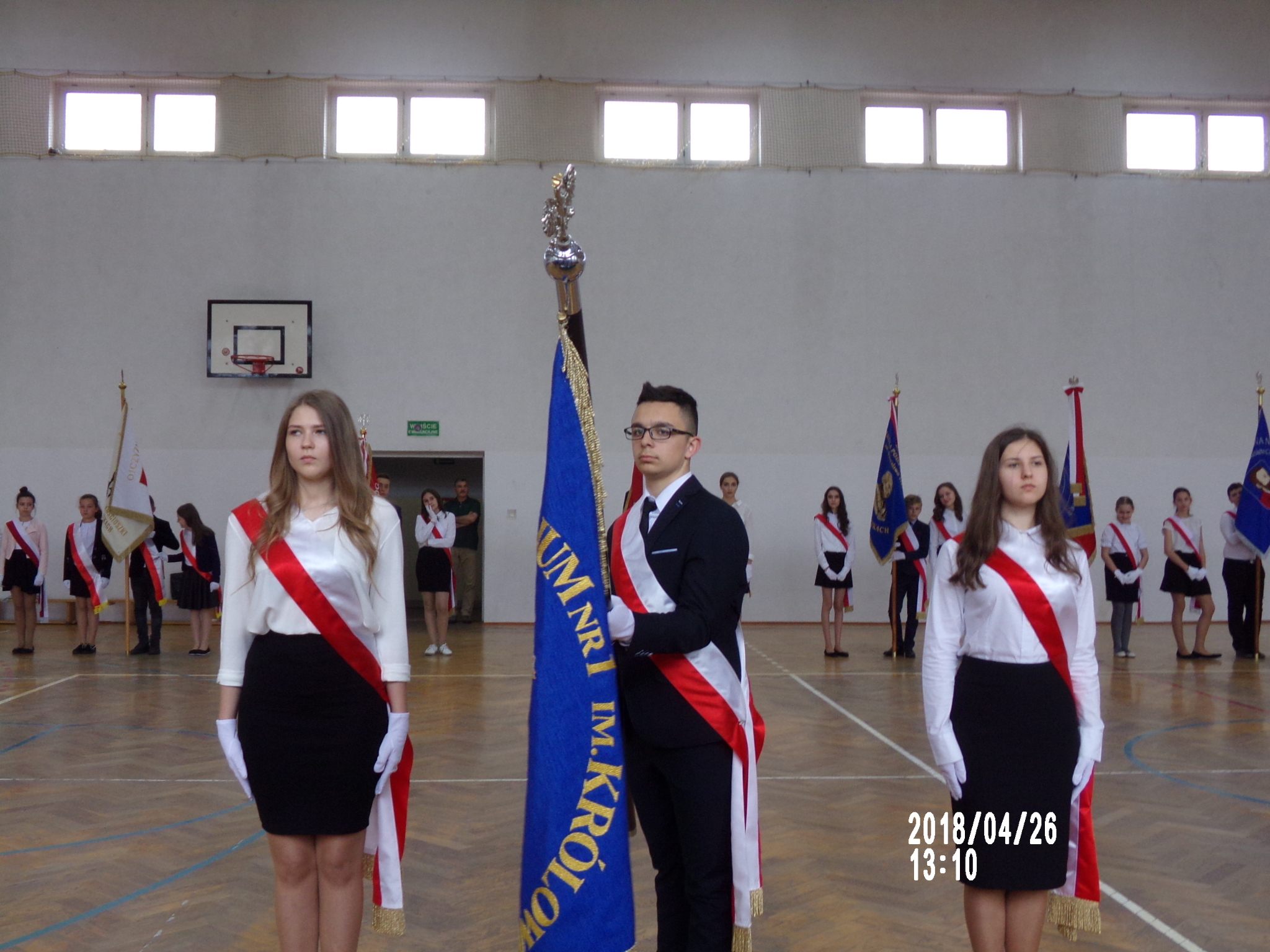 W pierwszej części przeglądu uczniowie rozwiązywali test na temat symboli i świąt narodowych, w drugiej zaś zaprezentowali swoje umiejętności z musztry i ceremoniału szkolnego. Każdy poczet sztandarowy prezentował swoje umiejętności indywidualnie, a na zakończenie odbyła się defilada. Na koniec krótki pokaz musztry zaprezentował ośmioosobowy patrol harcerski ze Szczepu Czarnego im. Bohaterów Państwa Podziemnego.