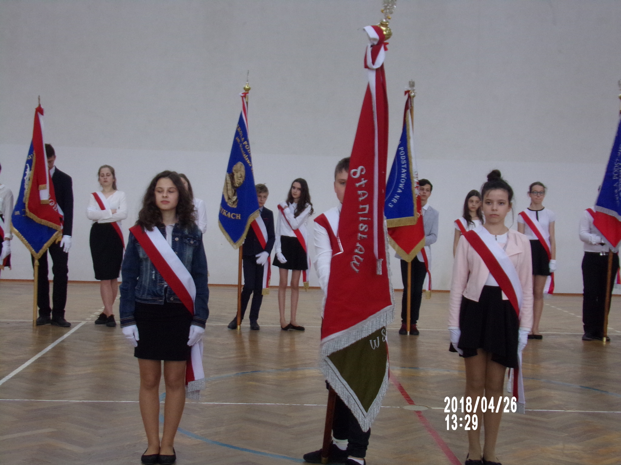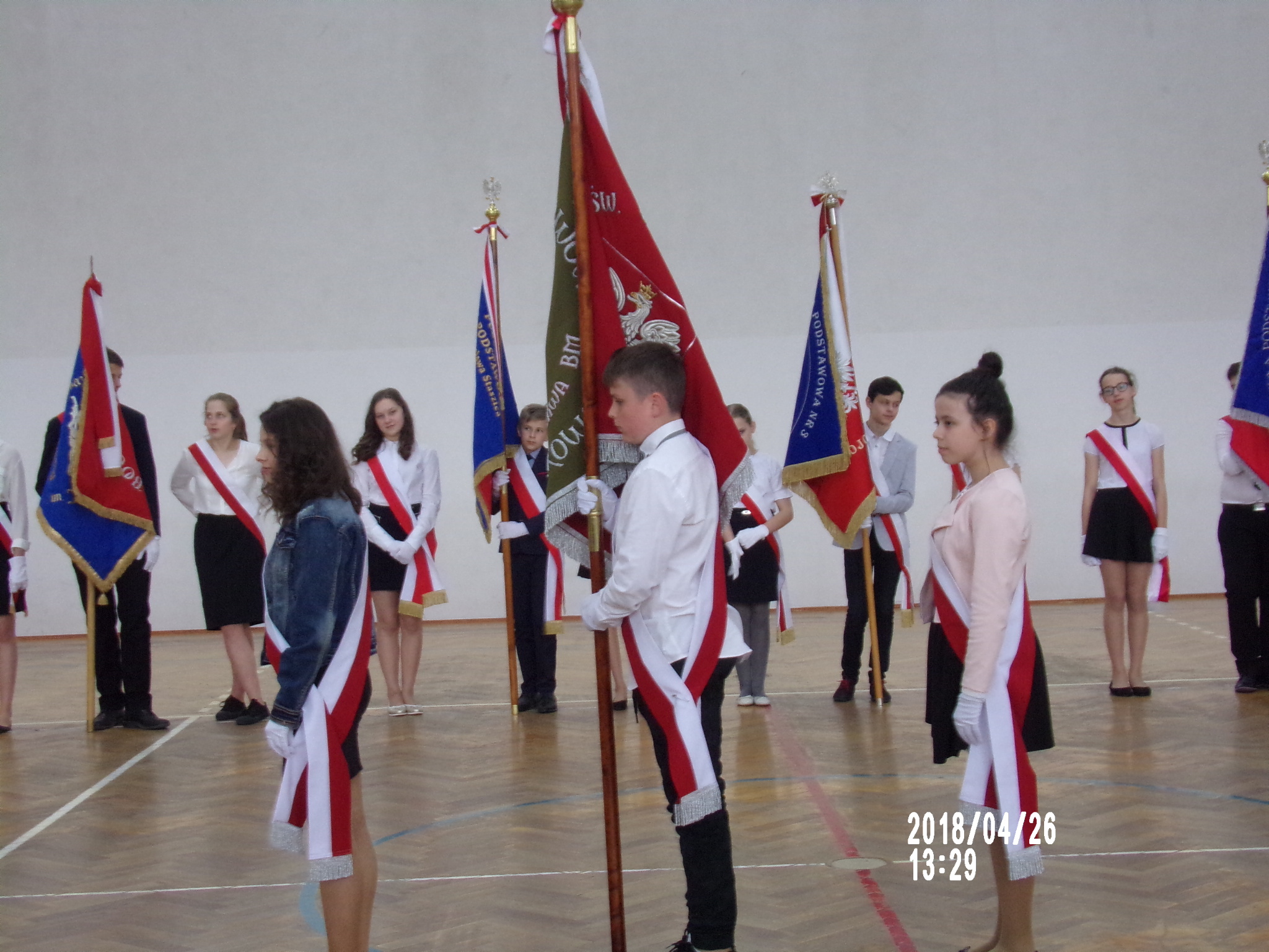 W przeglądzie wzięły udział poczty sztandarowe ośmiu szkół podstawowych z terenu gminy Brzesko: