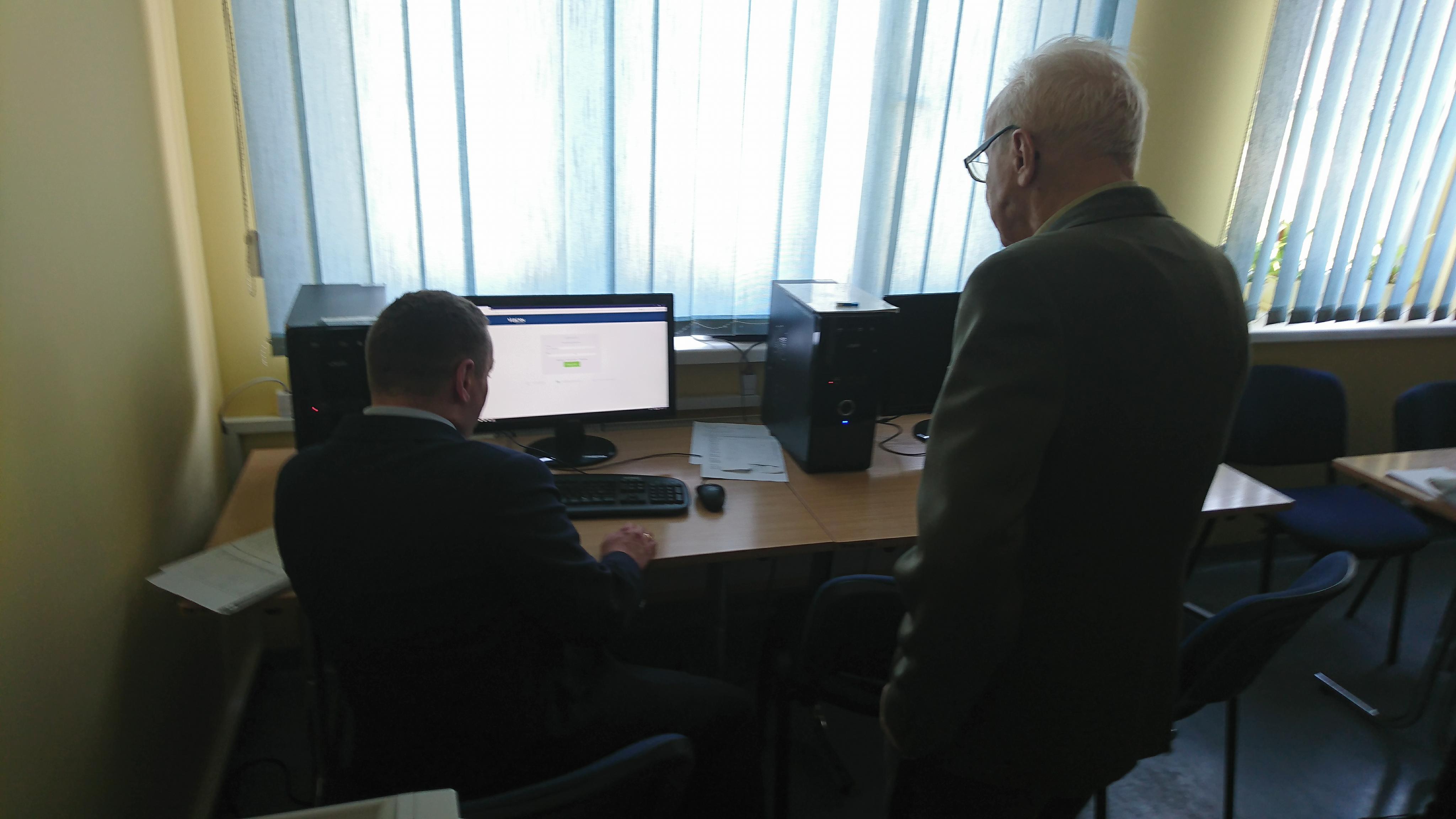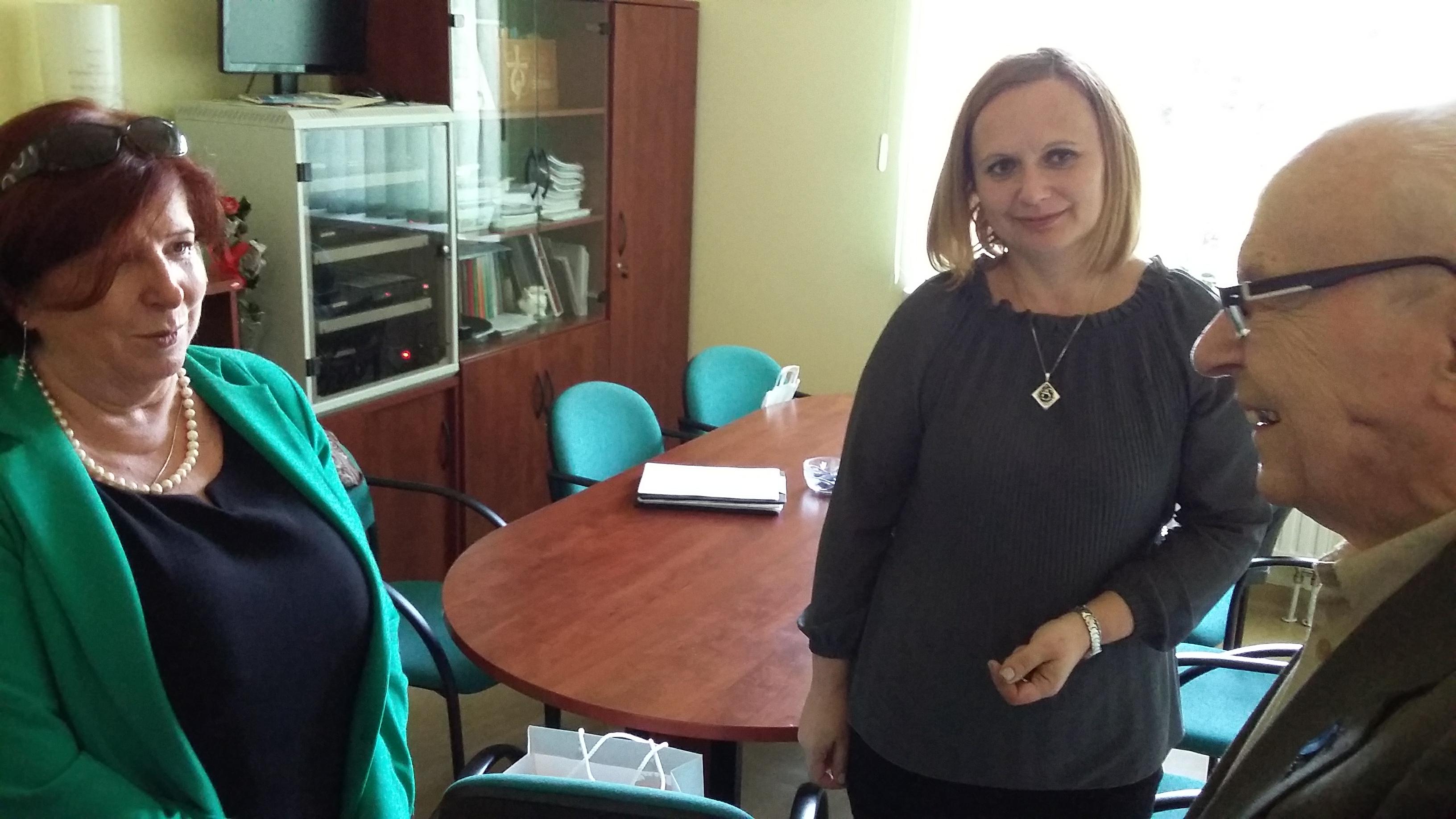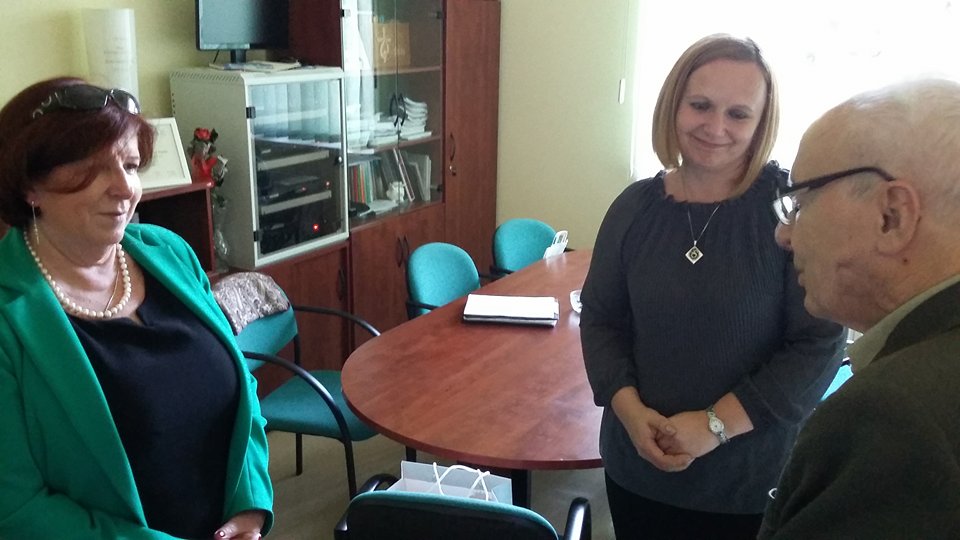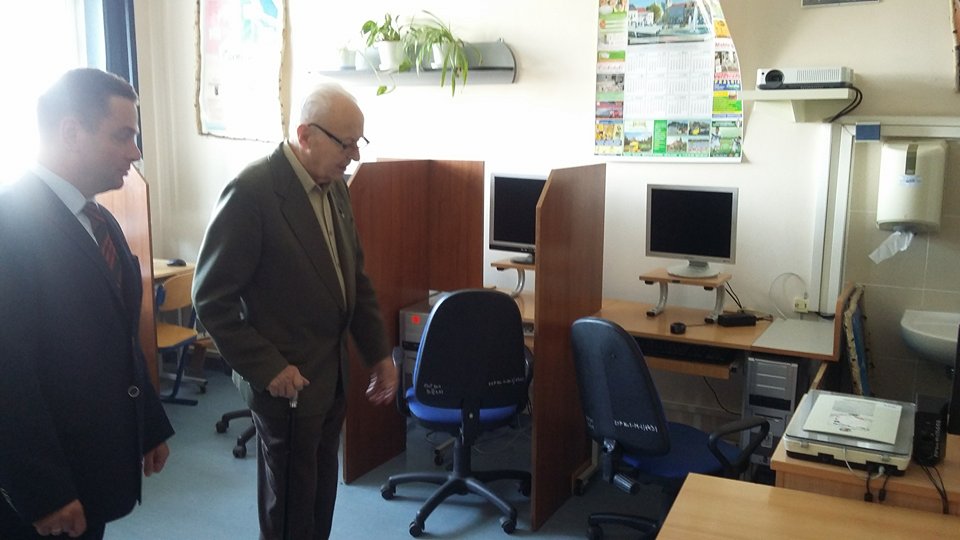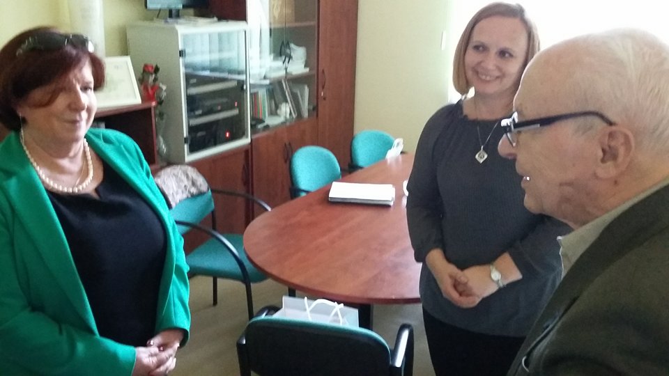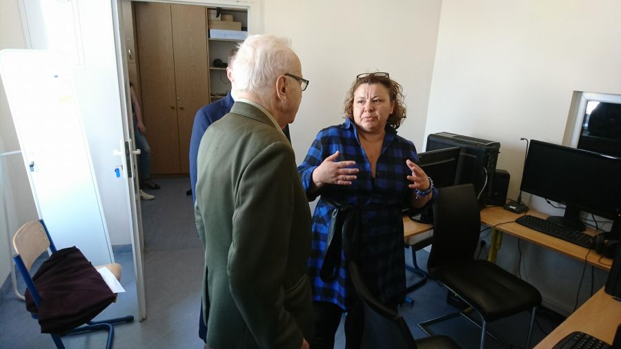 Po blisko półtoragodzinnym spotkaniu z uczniami naszej szkoły oraz grupą historyczną „Żołnierze Niezłomni, Niepokorni, Wyklęci – Pamiętamy!” prowadzoną przez Barbarę Marię Górczewską z Publicznej Szkoły Podstawowej nr 2 nasz szanowny gość z młodzieńczą wręcz werwą w otoczeniu gospodarzy spotkania dr. Piotrem Dudą oraz uczniami 3g Rafałem Kargolem i Kacprem Putem zwiedził naszą szkołę. Zawitał m.in. do studia filmowego, pracowni reklamy, biblioteki oraz jednej z sal historycznych, stwierdzając m.in., że w tak dobrze wyposażonej szkole jeszcze nie był, a zapraszano go do wielu placówek.