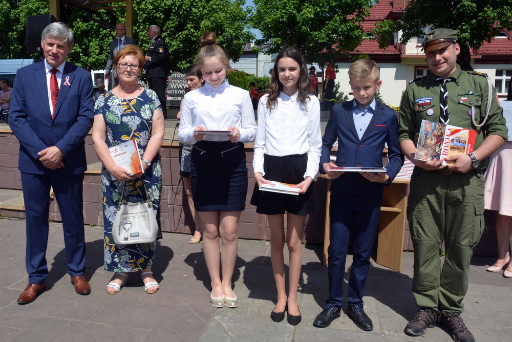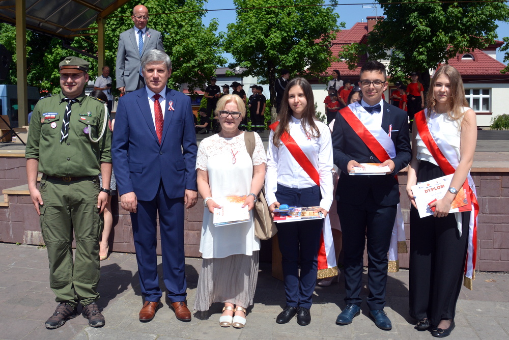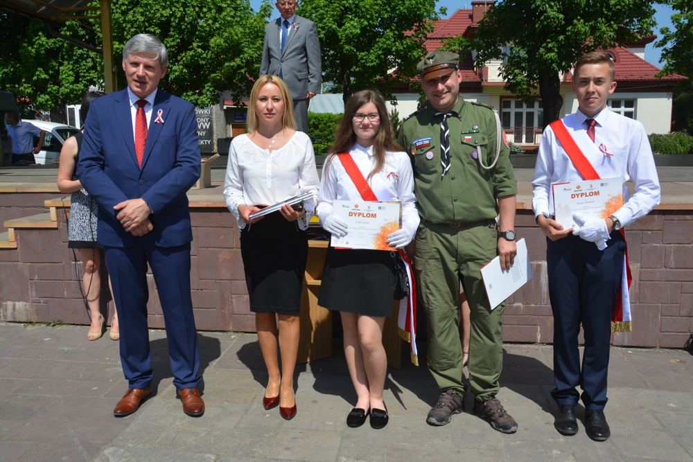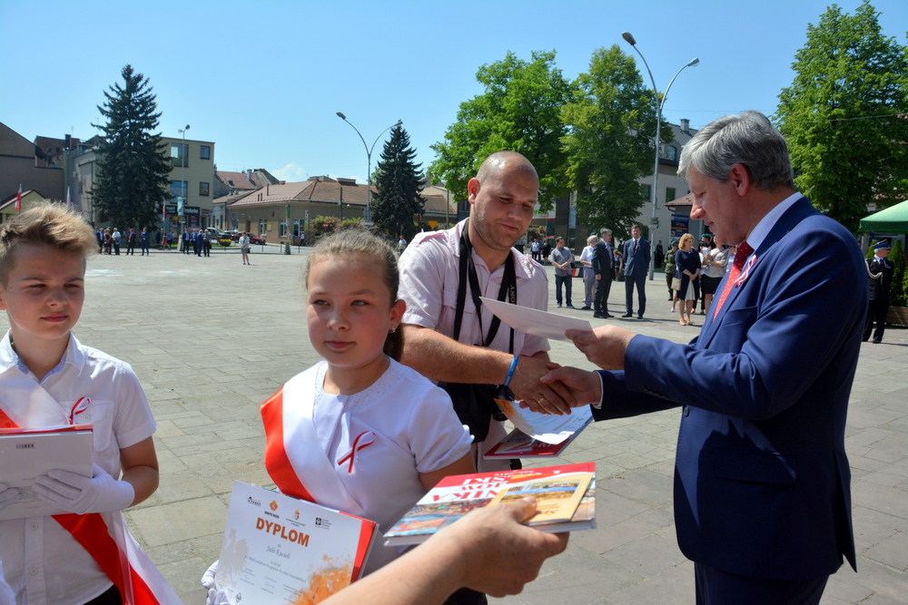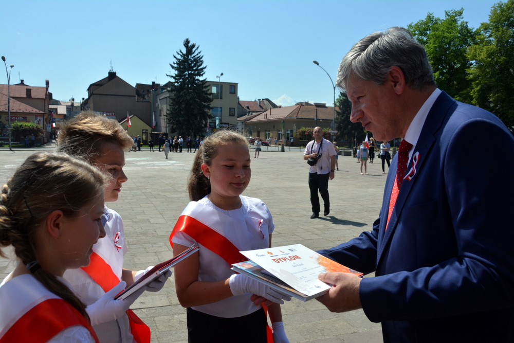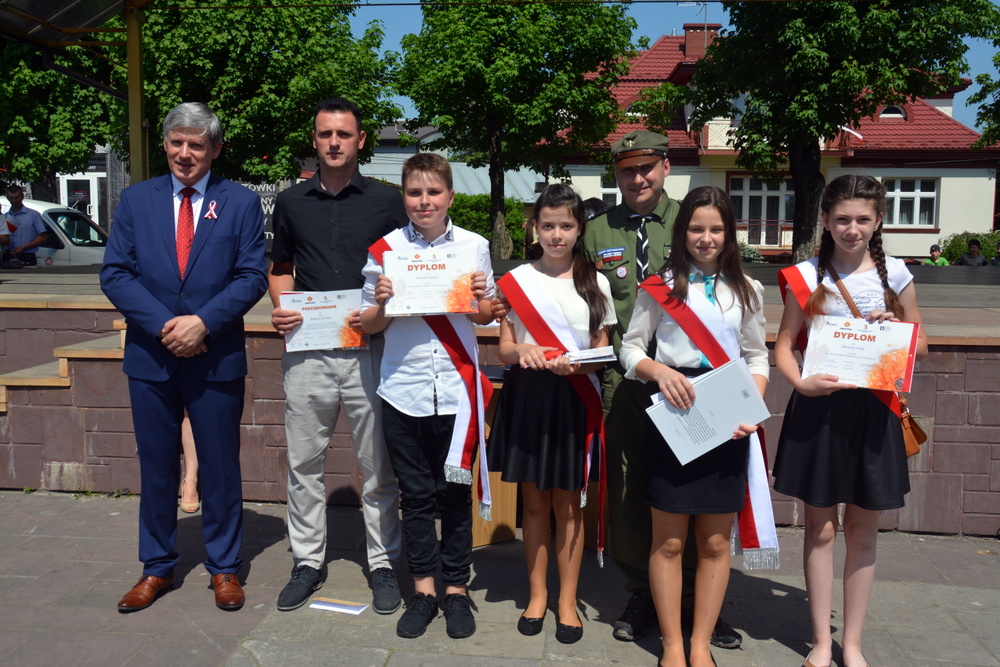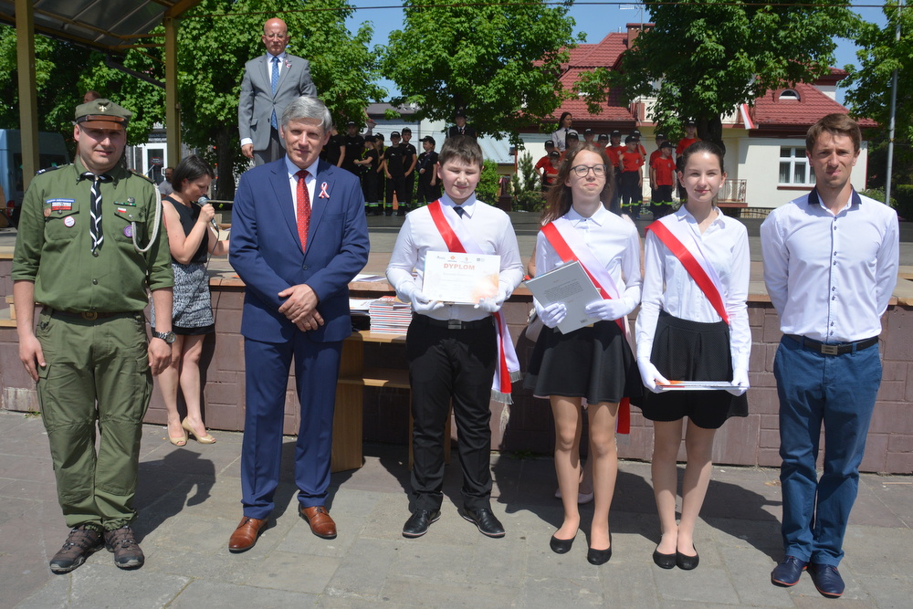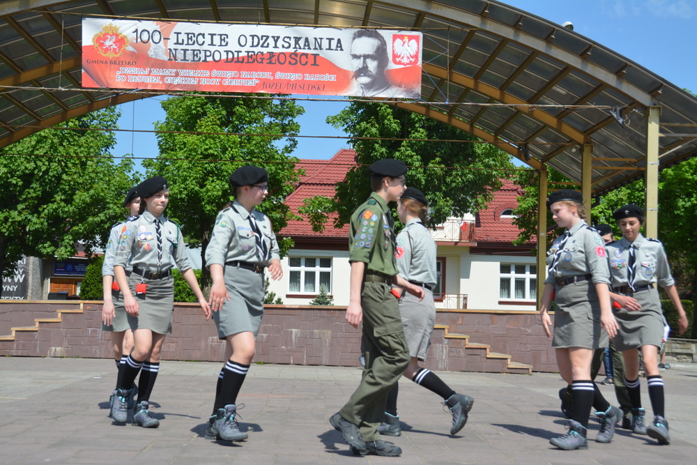 Dalsza część uroczystości odbyła się na Placu Kazimierza Wielkiego, gdzie burmistrz Grzegorz Wawryka wręczył nagrody i dyplomy szkołom, które wystawiły swoje poczty do I Międzyszkolnego Przeglądu Pocztów Sztandarowych. Nagrodzeni zostali uczniowie, opiekunowie grup oraz organizatorzy konkursu. W przeglądzie wzięły udział poczty sztandarowe ze szkół: PSP nr 1 w Brzesku, PSP nr 2 w Brzesku, PSP nr 3 w Brzesku, PSP nr 1 w Jadownikach, PSP nr 2 w Jadownikach, PSP w Mokrzyskach, PSP w Sterkowcu, PSP w Buczu. Głównym organizatorem konkursu był podharcmistrz Bartłomiej Turlej. Wspaniały pokaz musztry zaprezentowali harcerze ze Szczepu Czarnego działającego przy PSP nr 2 w Jadownikach.