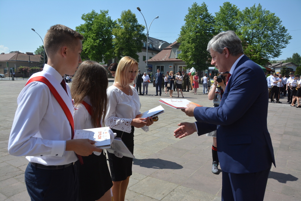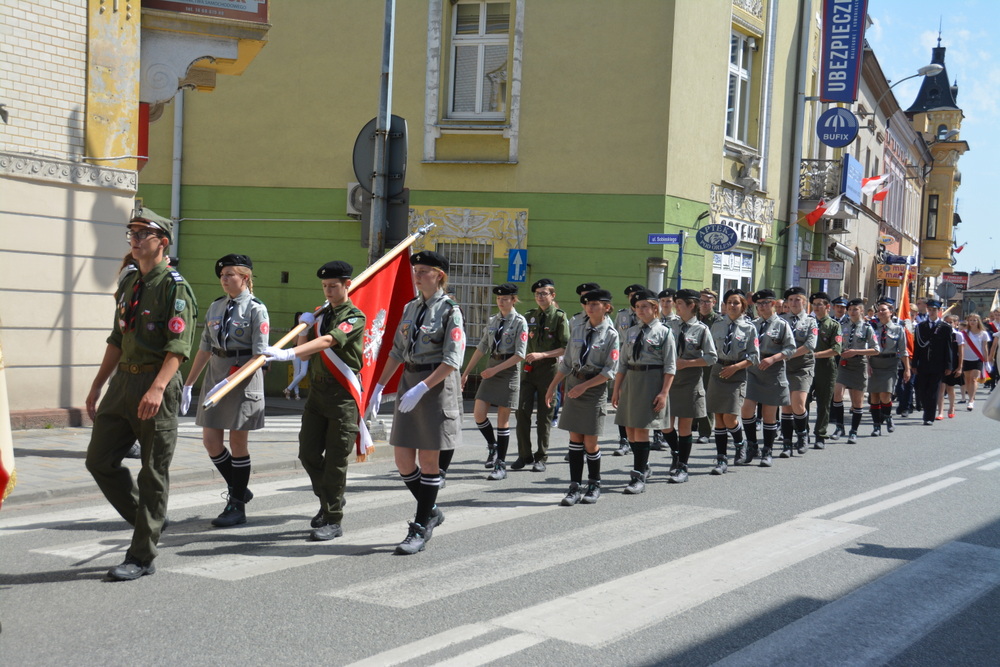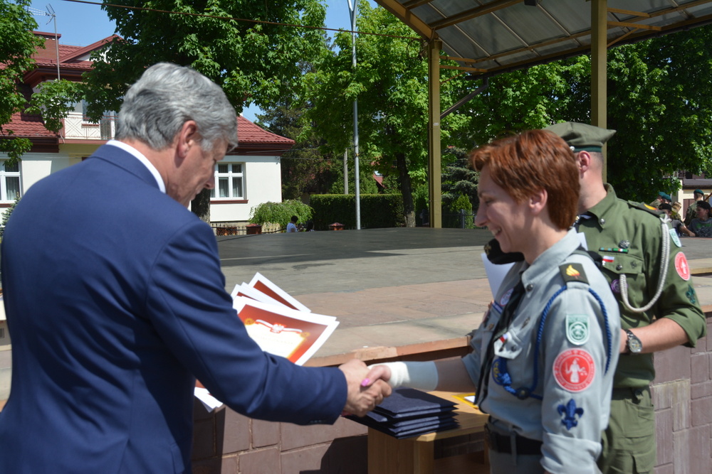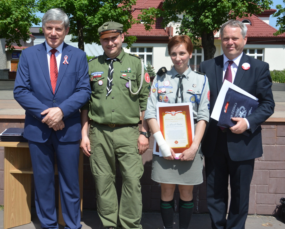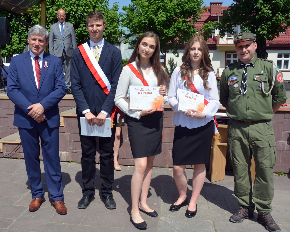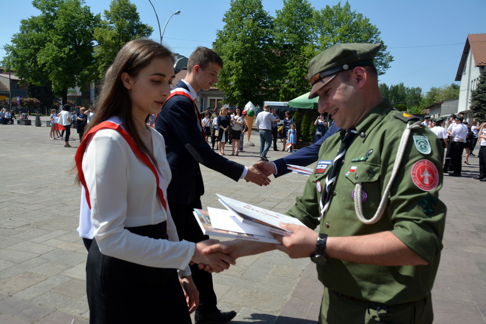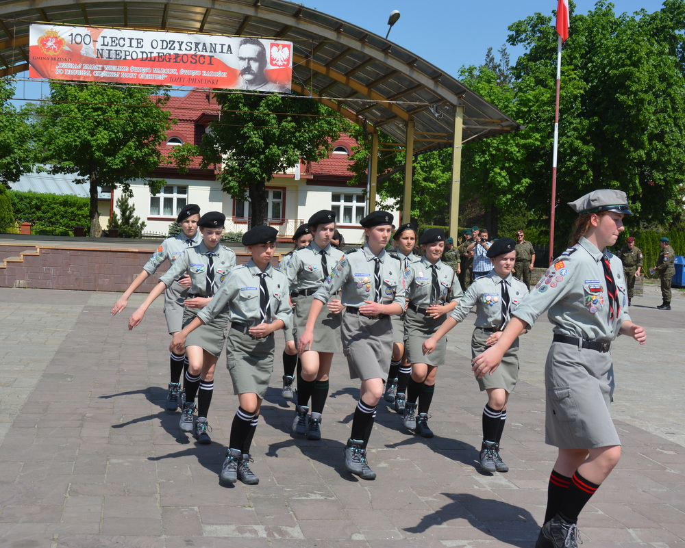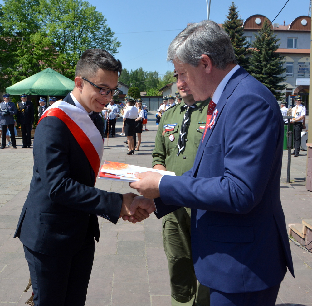 Dalsza część uroczystości odbyła się na Placu Kazimierza Wielkiego, gdzie burmistrz Grzegorz Wawryka wręczył nagrody i dyplomy szkołom, które wystawiły swoje poczty do I Międzyszkolnego Przeglądu Pocztów Sztandarowych. Nagrodzeni zostali uczniowie, opiekunowie grup oraz organizatorzy konkursu. W przeglądzie wzięły udział poczty sztandarowe ze szkół: PSP nr 1 w Brzesku, PSP nr 2 w Brzesku, PSP nr 3 w Brzesku, PSP nr 1 w Jadownikach, PSP nr 2 w Jadownikach, PSP w Mokrzyskach, PSP w Sterkowcu, PSP w Buczu. Głównym organizatorem konkursu był podharcmistrz Bartłomiej Turlej. Wspaniały pokaz musztry zaprezentowali harcerze ze Szczepu Czarnego działającego przy PSP nr 2 w Jadownikach.