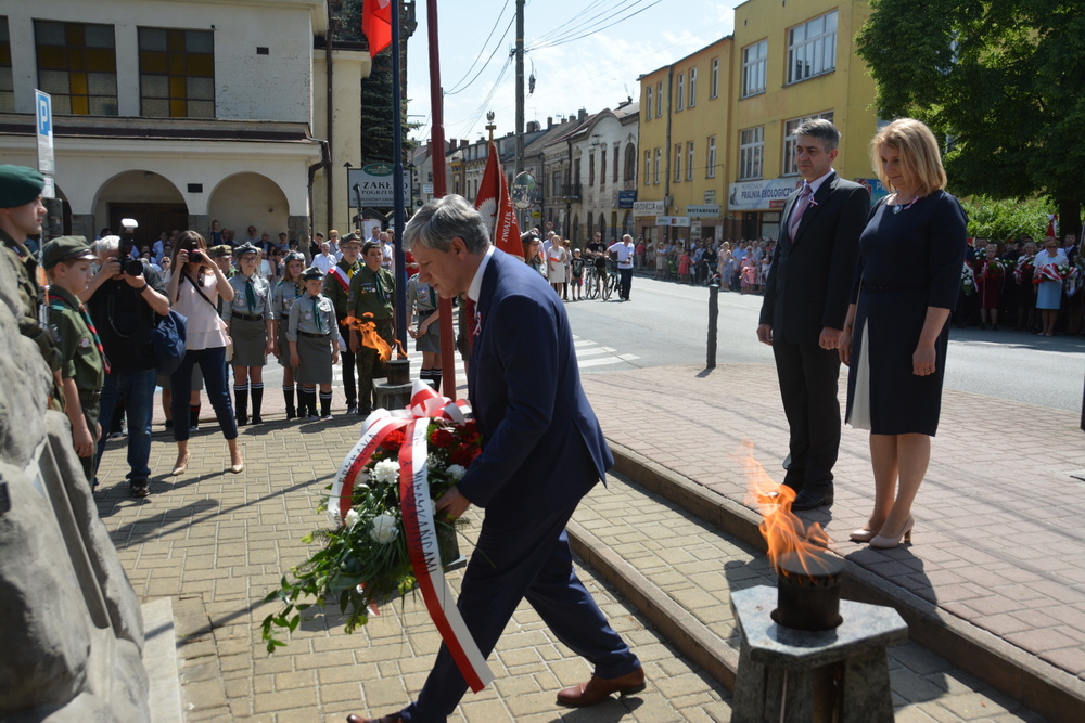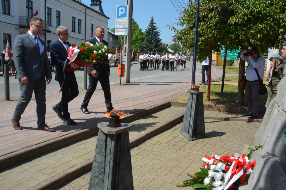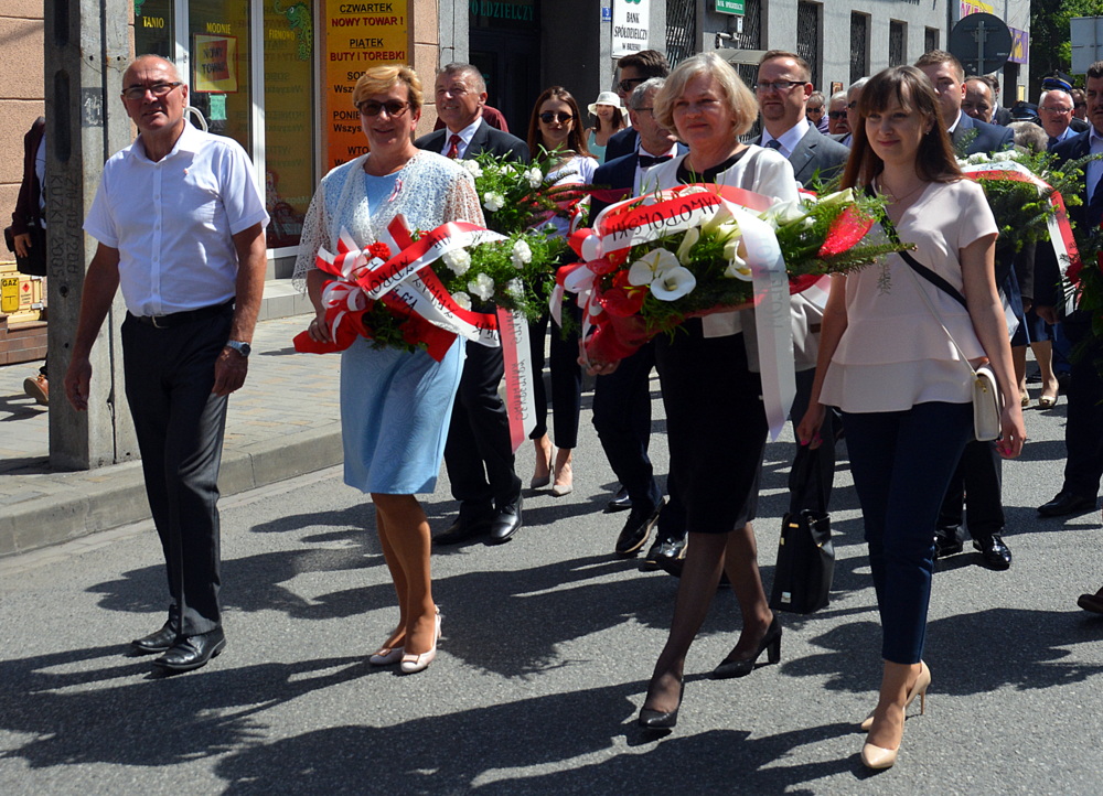 Następnie kwiaty pod Pomnikiem Nieznanego Żołnierza złożyli: w imieniu mieszkańców gminy burmistrz Brzeska Grzegorz Wawryka wraz z małżonką, zastępcą Jerzym Tyrkielem i sekretarzem gminy Stanisławem Sułkiem; przewodniczący Rady Miejskiej w Brzesku Krzysztof Ojczyk wraz z radnymi; wiceminister zdrowia a zarazem poseł RP, Józefa Szczurek-Żelazko; w imieniu wojewody małopolskiego kwiaty złożyła Ewa Podłęcka; wicestarosta Ryszard Ożóg, przewodniczący rady powiatu Kazimierz Brzyk oraz radny Maciej Podobiński; w imieniu posła do Parlamentu Europejskiego Edwarda Czesaka kwiaty złożył Mieczysława Klimek; w imieniu sejmiku Województwa Małopolskiego kwiaty składał radny Adam Kwaśniak; w imieniu Posła RP – Władysława Kosiniaka-Kamysza (PSL) kwiaty złożył jego asystent Rafał Dąbrowski; asystent Posła Czesława Siekierskiego – Adrian Zaleśny; klub radnych Prawa i Sprawiedliwość na czele z przewodniczącym Jarosławem Sorysem; klub radnych Wspólnoty Samorządowej na czele z przewodniczącą klubu Marią Kądziołką; komendant KPP podinsp. Bogusław Chmielarz; bryg. Piotr Słowiak; w imieniu Zarządu Światowego Związku Żołnierzy Armii Krajowej oddział w Brzesku kwiaty złoży Piotr Duda wraz z przedstawicielami szkolnego klubu historycznego im. Armii Krajowej ZSP 1 w Brzesku; księża dekanatu brzeskiego na czele z ks. dziekanem Józefem Drabikiem; Jednostka Strzelecka 20 59 wraz z przedstawicielami Ligi Obrony Kraju – Andrzej Gruca, mł. insp. Mirosław Król, st. sierż. Szymon Zawadzki; Zarząd Gminny Ochotniczych Straży Pożarnych w Brzesku – prezes dh. Marian Czarnik; Ochotnicza Straż Pożarna w Brzesku – prezes Bogusław Wawryka; Dziecięca Drużyna Pożarnicza działająca przy OSP w Jadownikach; Dziecięca Drużyna Pożarnicza działająca przy OSP w Porębie Spytkowskiej; Delegacja Związku Harcerstwa Polskiego Hufiec Brzesko im. Mikołaja Kopernika na czele z Komendantem Hufca podharcmistrzem Bartłomiejem Turlejem; Brzeskie Towarzystwo Gimnastyczne „Sokół” – wiceprezes Zdzisław Grzegorzek; delegacja Komitetu Terenowego Prawo i Sprawiedliwość – Stanisław Pacura; delegacja Komitetu Brzeskiego Platforma Obywatelska – Jan Musiał, Katarzyna Pacewicz-Pyrek; ugrupowanie Wolni i Solidarni wraz z Endecją; Stowarzyszenie na rzecz Nowej Konstytucji – Krzysztof Stec; Zarząd Miejsko-Gminny Polskiego Stronnictwa Ludowego – Andrzej Dzień; przedstawiciele Nowoczesnej; Niezależny Samorządny Związek Zawodowy „Solidarność”- Janusz Duda, Urszula Majmurek; Związek Nauczycielstwa Polskiego – Mieczysław Żurek; delegacja zarządu Osiedla Kościuszki – Ogrodowa; delegacja z Samodzielnego Publicznego Zespołu Opieki Zdrowotnej –dyrektor Adam Smołucha; delegacja Cechu Rzemieślników oraz Małych i Średnich Przedsiębiorców w Brzesku - Ludwik Cyga, Mieczysław Hebda, Eugeniusz Kopacz; Stowarzyszenie Przedsiębiorców Brzeskich - prezes Halina Mrówka, Franciszek Krupa; Krakowska Kongregacja Kupiecka- Prezes Bogdan Baranek, Katarzyna Pacewicz – Pyrek; Stowarzyszenie Ziemi Brzeskiej „Porozumienie” - prezes Henryk Pałka; dyrektor Miejskiego Ośrodka Kultury Małgorzata Cuber wraz z dyrektorem Powiatowej i Miejskiej Biblioteki Publicznej w Brzesku Kariną Legutek; Brzeskie Zakłady Komunalne - prezes Janusz Filip; Miejskie Przedsiębiorstwo Energetyki Cieplnej Brzesko – prezes Jacek Wróblewski; Uniwersytet Trzeciego Wieku – na czele z prezes Cecylią Jabłońską; PSS „Społem” - prezes Marek Kokoszka; Zespół Szkół Ponadgimnazjalnych nr 1 w Brzesku; Zespół Szkół Ponadgimnazjalnych nr 2, Katolickie Gimnazjum oraz Liceum Ogólnokształcące; Publiczna Szkoła Podstawowa nr 1; Publiczna Szkoła Podstawowa nr 2; Publiczna Szkoła Podstawowa nr 3; Publiczna Szkoła Podstawowa w Buczu; Publiczna Szkoła Podstawowa nr 1 w Jadownikach; Publiczna Szkoła Podstawowa nr 2 w Jadownikach; w imieniu Publicznej Szkoły Podstawowej w Jasieniu kwiaty złożyli harcerze; Publiczna Szkoła Podstawowa w Morzyskach; Publiczna Szkoła Podstawowa w Okocimiu; Publiczna Szkoła Podstawowa w Sterkowcu; Publiczna Szkoła Podstawowa w Szczepanowie.
