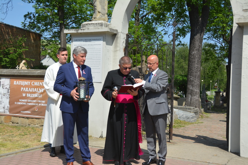 O godzinie 10.30 w kościele pod wezwaniem Najświętszej Marii Panny Matki Kościoła i św. Jakuba Apostoła, prałat Józef Drabik wraz z księżmi z dekanatu brzeskiego koncelebrował uroczystą mszę w intencji ojczyzny, jej uczestnicy modlili się o pomyślność kraju i ludzi w nim żyjących. Po mszy jej uczestnicy przemaszerowali pod Pomnik Nieznanego Żołnierza. Uroczystości pod pomnikiem rozpoczęły się poświęceniem przez księdza prałata Józefa Drabika odnowionego nagrobka legionisty Władysława Steca z Brzeska, który zginął w 1918 roku. Koszty renowacji nagrobka ponieśli państwo Halina i Michał Mrówkowie.