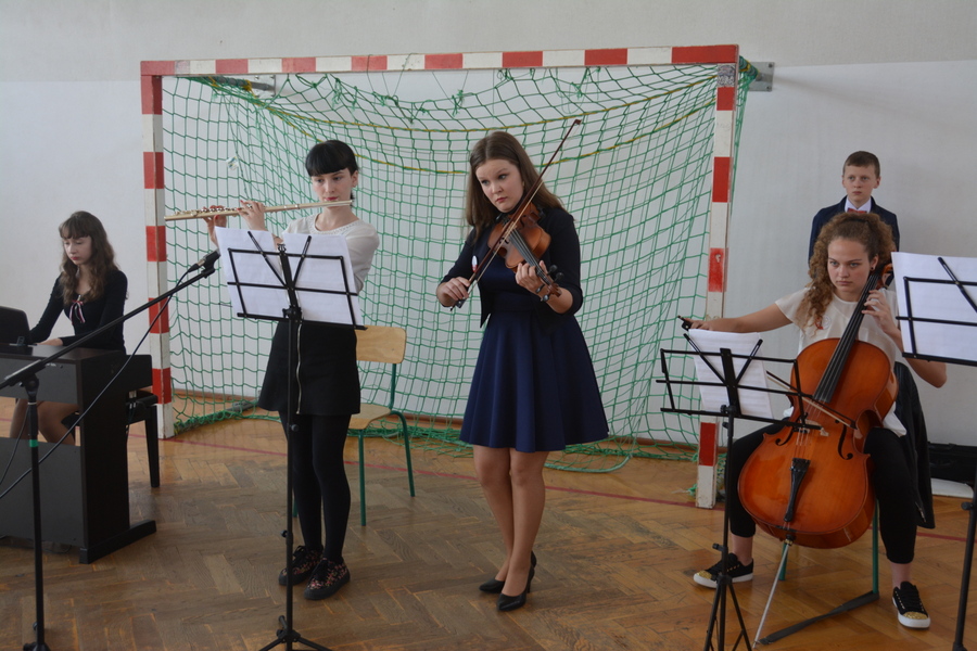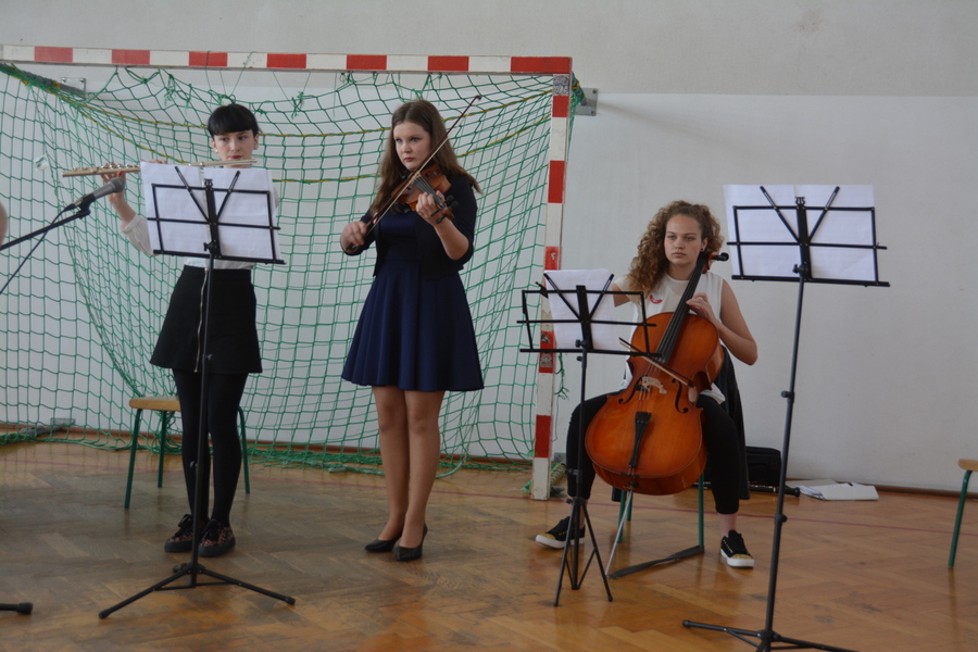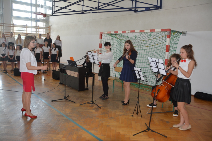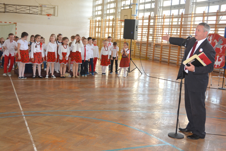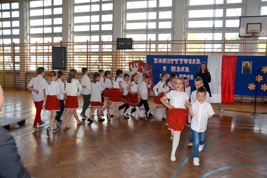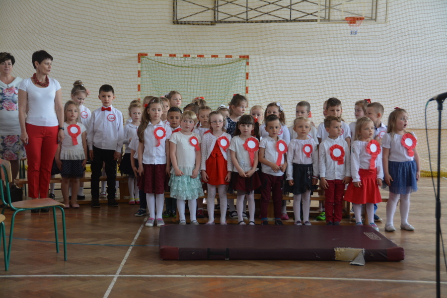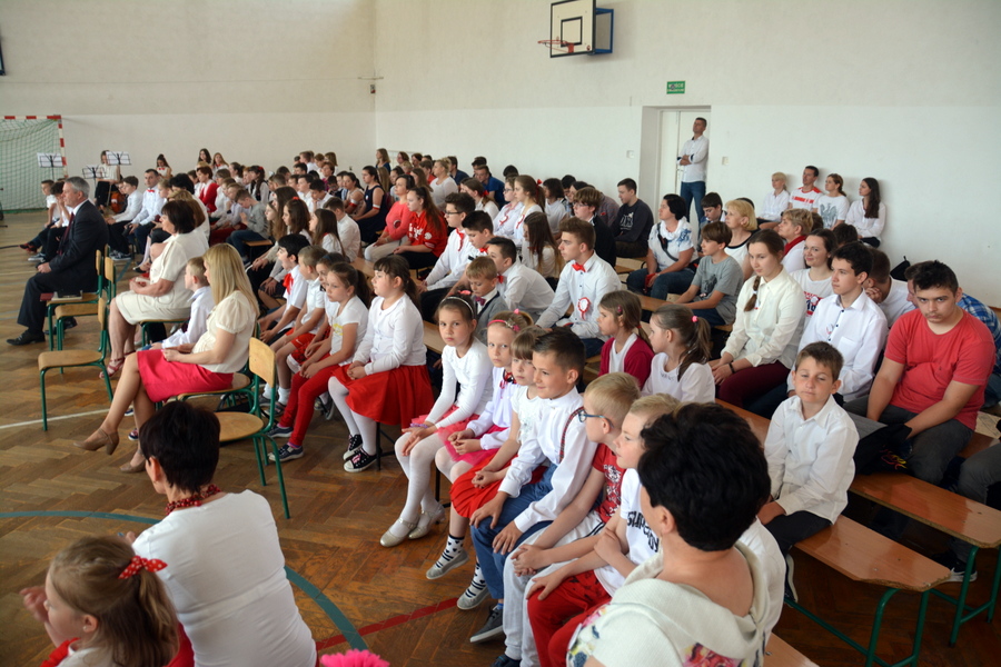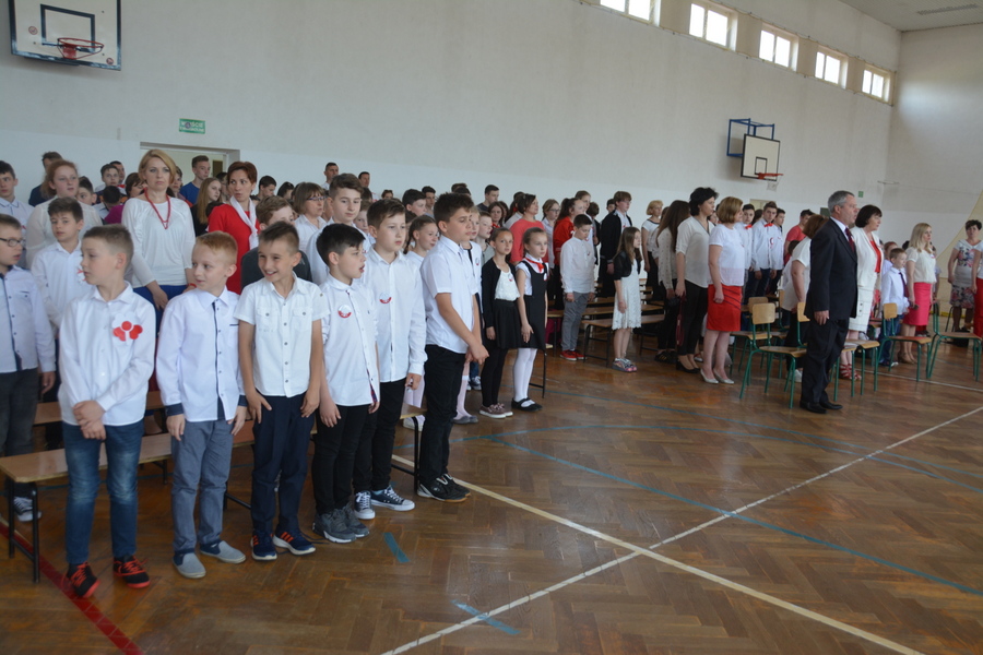 Uczniowie i nauczyciele w strojach biało-czerwonych lub z elementami tych barw zaprezentowali się bardzo uroczyście i pomysłowo sami będąc świadectwem osobistego przeżywania i świętowania ważnych polskich świąt. Uroczystości zakończyło wspólne pamiątkowe zdjęcie wszystkich klas na dziedzińcu szkolnym.