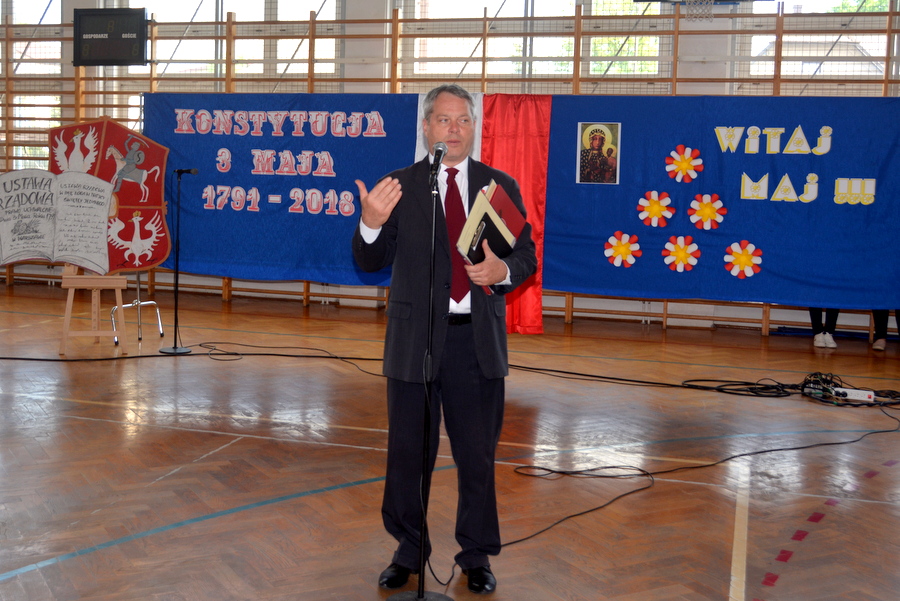 W przeddzień świąt majowych w PSP nr 2 im. Św. Jana Pawła II i Kardynała Stefana Wyszyńskiego w Jadownikach odbyła się uroczysta akademia z okazji Święta Konstytucji 3 Maja. Starannie przygotowana, w pięknej i doniosłej oprawie muzycznej przypomniała historię polskiej chlubnej konstytucji oraz zmagań o odrodzenie państwa polskiego. Dlatego dzień ten wybrany został w akcji bibliotecznej "Podlegli niepodległej" na czas szczególnej manifestacji przywiązania do barw narodowych oraz jako przygotowanie do nadchodzącego Dnia Flagi Rzeczypospolitej Polskiej i Dnia Polonii i Polaków za granicą.