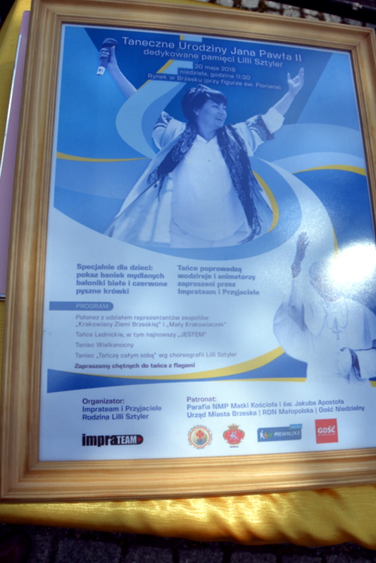 W ostatnią niedzielę, 20 maja na brzeskim Rynku odbyły się taneczne urodziny Jana Pawła II, tegoroczna edycja wydarzenia dedykowana była pamięci zmarłej niedawno Lilli Sztyler. Tańce organizowane były przez Impra Team z Przyjaciółmi z Mariuszem Niedziałkowskim na czele, przy wsparciu finansowym Urzędu Miejskiego w Brzesku. Patronat nad wydarzeniem sprawował burmistrz Brzeska Grzegorz Wawryka oraz parafia NMP Matki Kościoła i św. Jakuba Apostoła.