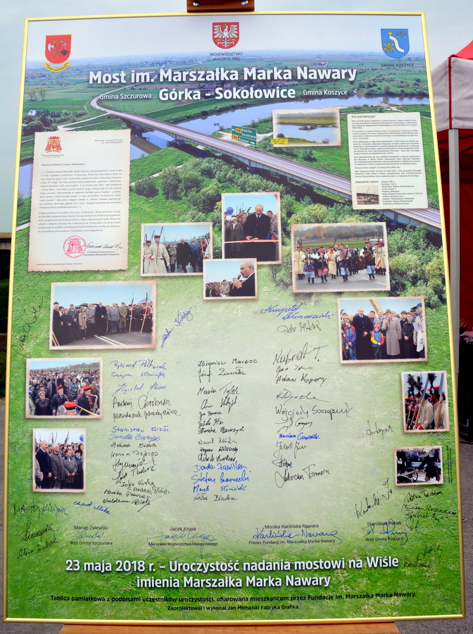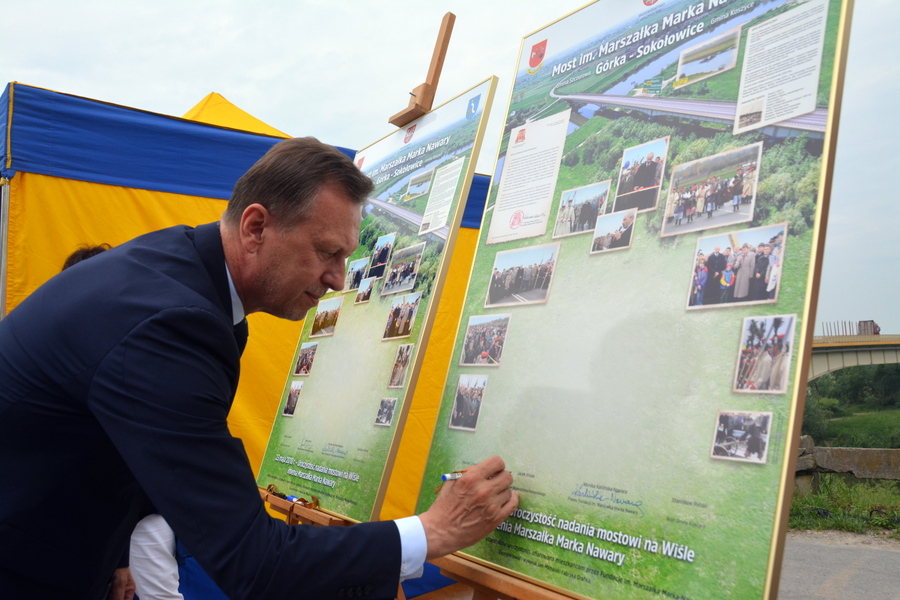 -Marek Nawara zostawił po sobie nie tylko dobre wspomnienia, ale wiele namacalnych dowodów swojej sumiennej pracy dla Małopolan. Jednym z nich jest właśnie ten most na Wiśle. Ta niezwykle ważna dla Małopolski inwestycja była wstępem – a jednocześnie symbolem znaczącej roli, jaką przyjdzie odegrać samorządowi województwa w rozwoju całego regionu – mówił podczas uroczystości nadania imienia marszałek Jacek Krupa. Jak zauważył, wizja zmarłego 7 lat temu Marka Nawary jest w dalszym ciągu kontynuowana. -Jestem przekonany, że dzieło budowy nowoczesnej i samorządnej Małopolski zapoczątkowane kilkanaście lat temu, będzie nadal efektywnie realizowane z pożytkiem dla całej naszej małopolskiej rodziny. Już dzisiaj powstają kolejne drogi i mosty, które ułatwiają komunikację w naszym regionie. Przykład, już za niespełna dwa lata powstanie inny długo wyczekiwany most na Wiśle, który połączy tym razem Borusową z Nowym Korczynem.