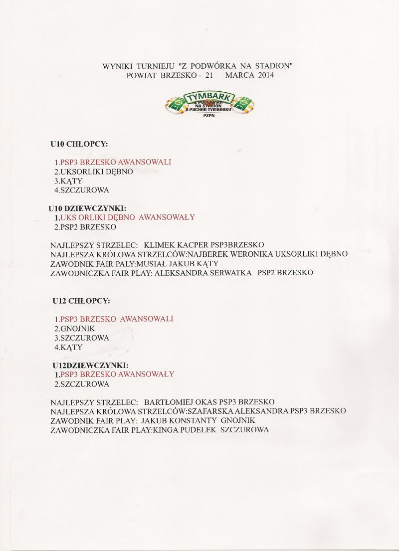 - król strzelców U10 - Michał Wojcik (PSP Nr 2 Brzesko)