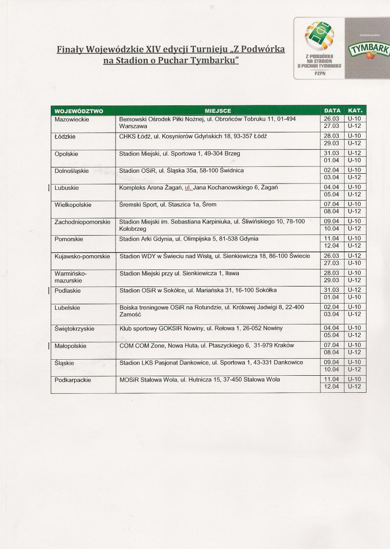 Podczas rozpoczynających się 26 marca i trwających do 12 kwietnia finałów wojewódzkich zobaczymy w akcji największe piłkarskie talenty w poszczególnych regionach Polski. Nasi reprezentanci swoje zawody rozegrają 7. (U10) i 8. (U 12) kwietnia w Krakowie, na stadionie „Hutnika” przy ul. Ptaszyckiego 6.