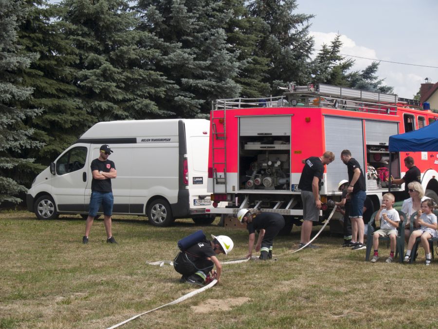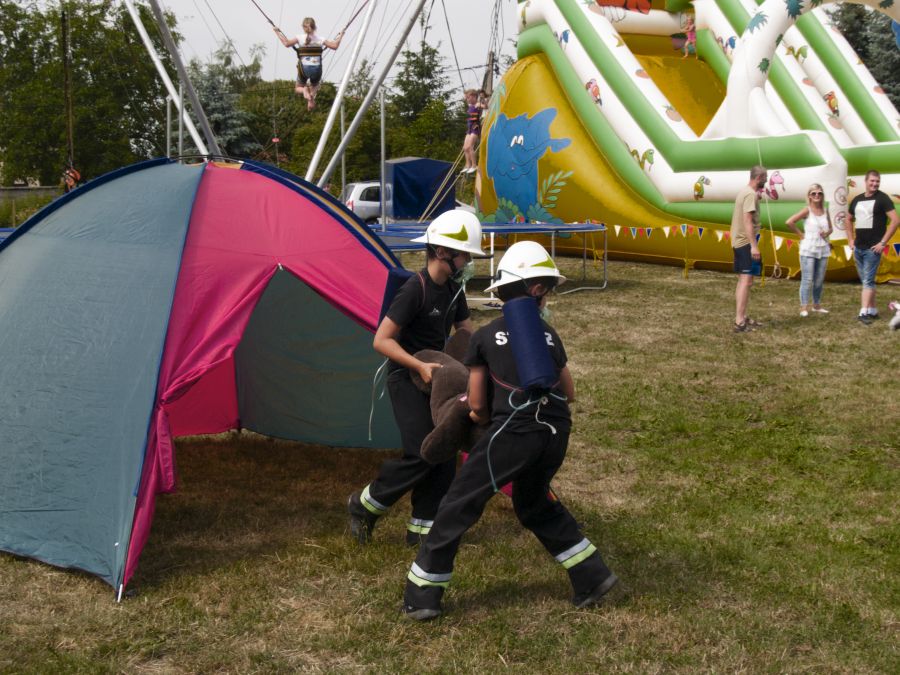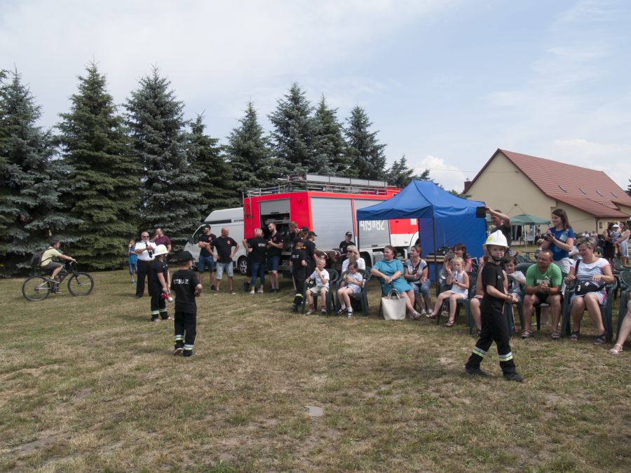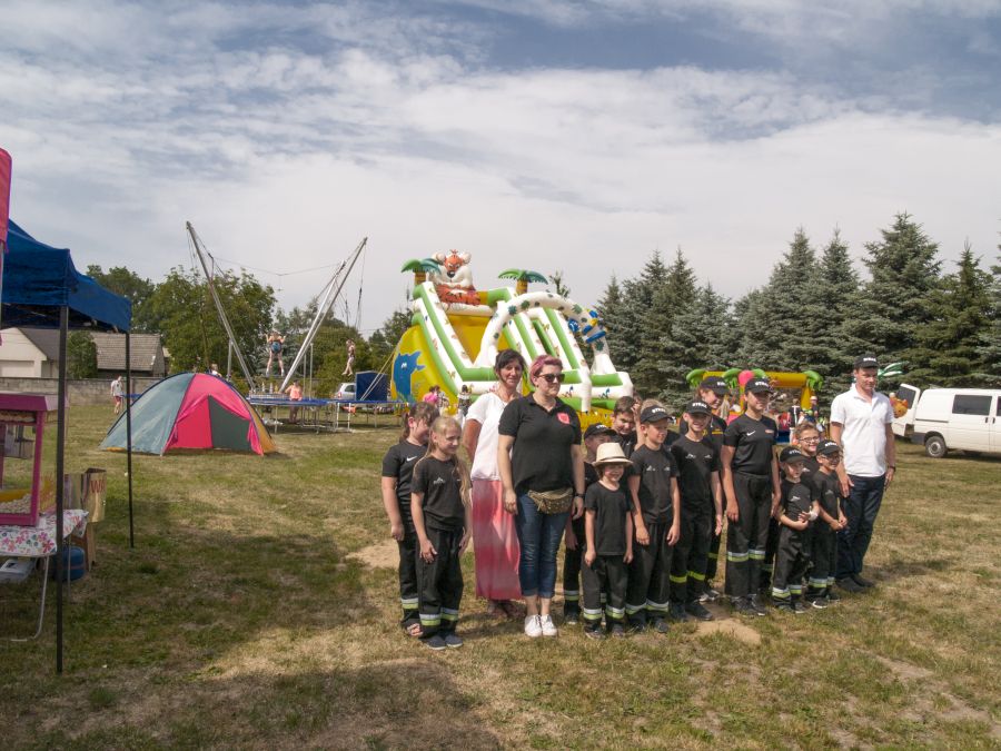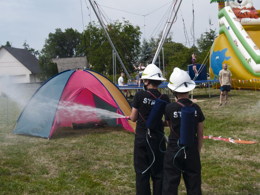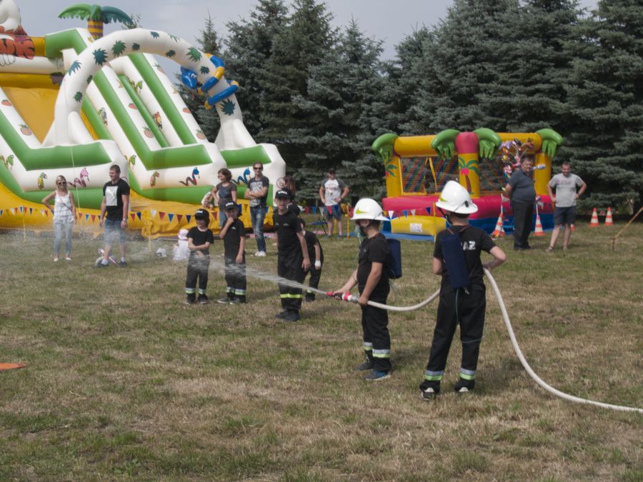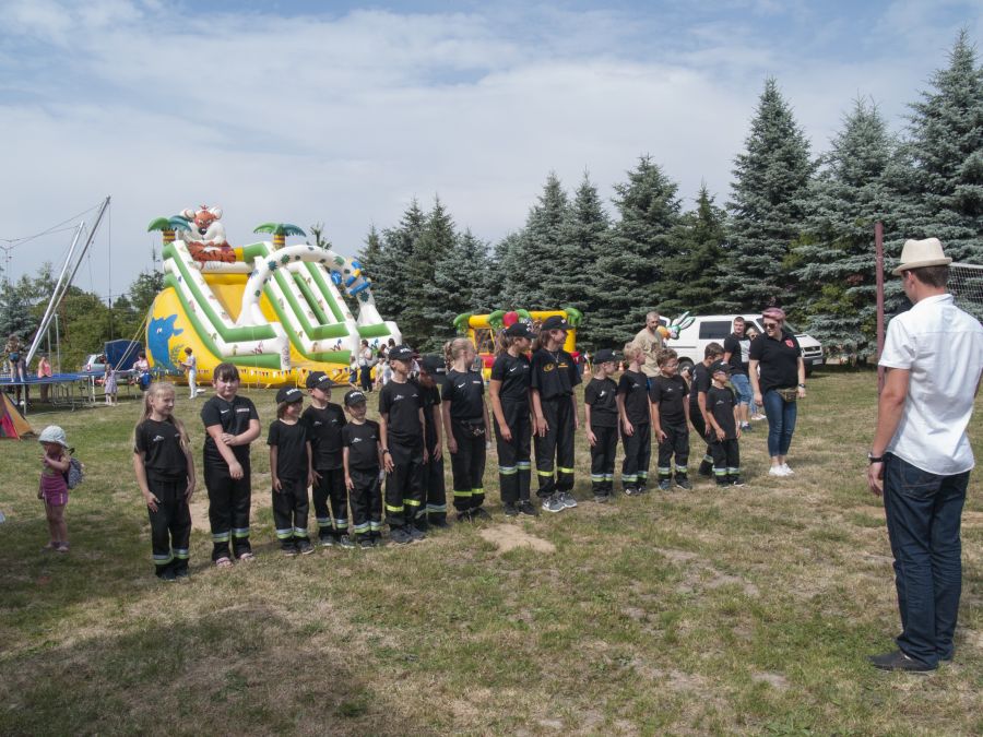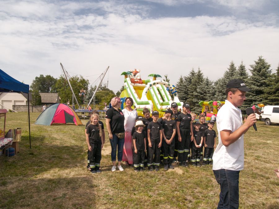 Swoje umiejętności zaprezentowały także dzieci z Dziecięcej Drużyny Pożarniczej, pokazały akcję gaszenia i reanimację poszkodowanego miśka. Na zakończenie, razem z prowadzącymi dzieci zaprezentowały znakomity pokaz musztry.