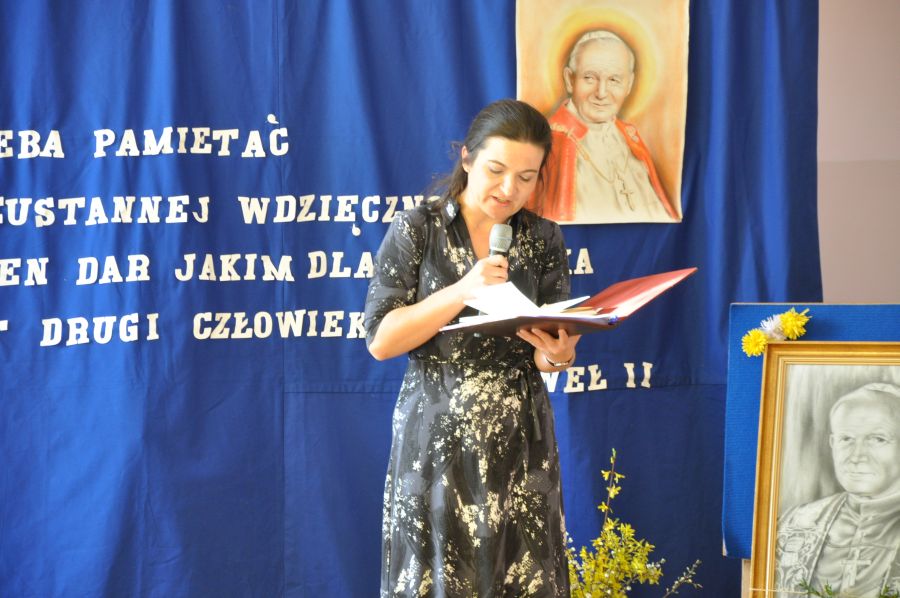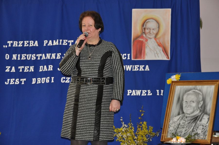 Rodzice i nauczyciele na zmianę czytali fragmenty autobiografii Jana Pawła II, Jego wiersze i anegdoty na Jego temat spisane przez bliskich mu ludzi. Wyjątkowy nastrój wieczornicy rozweselały dzieci, które indywidualnie lub zbiorowo recytowały wiersze o Janie Pawle II lub śpiewały piosenki. Całość zakończyła się śpiewem tak drogiej Ojcu św. „Barki”.
