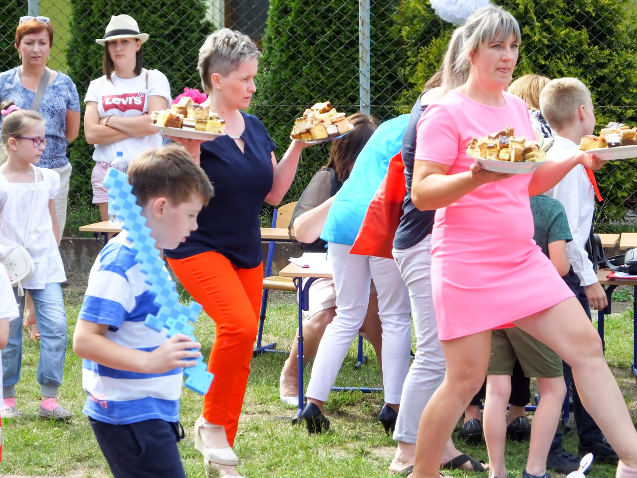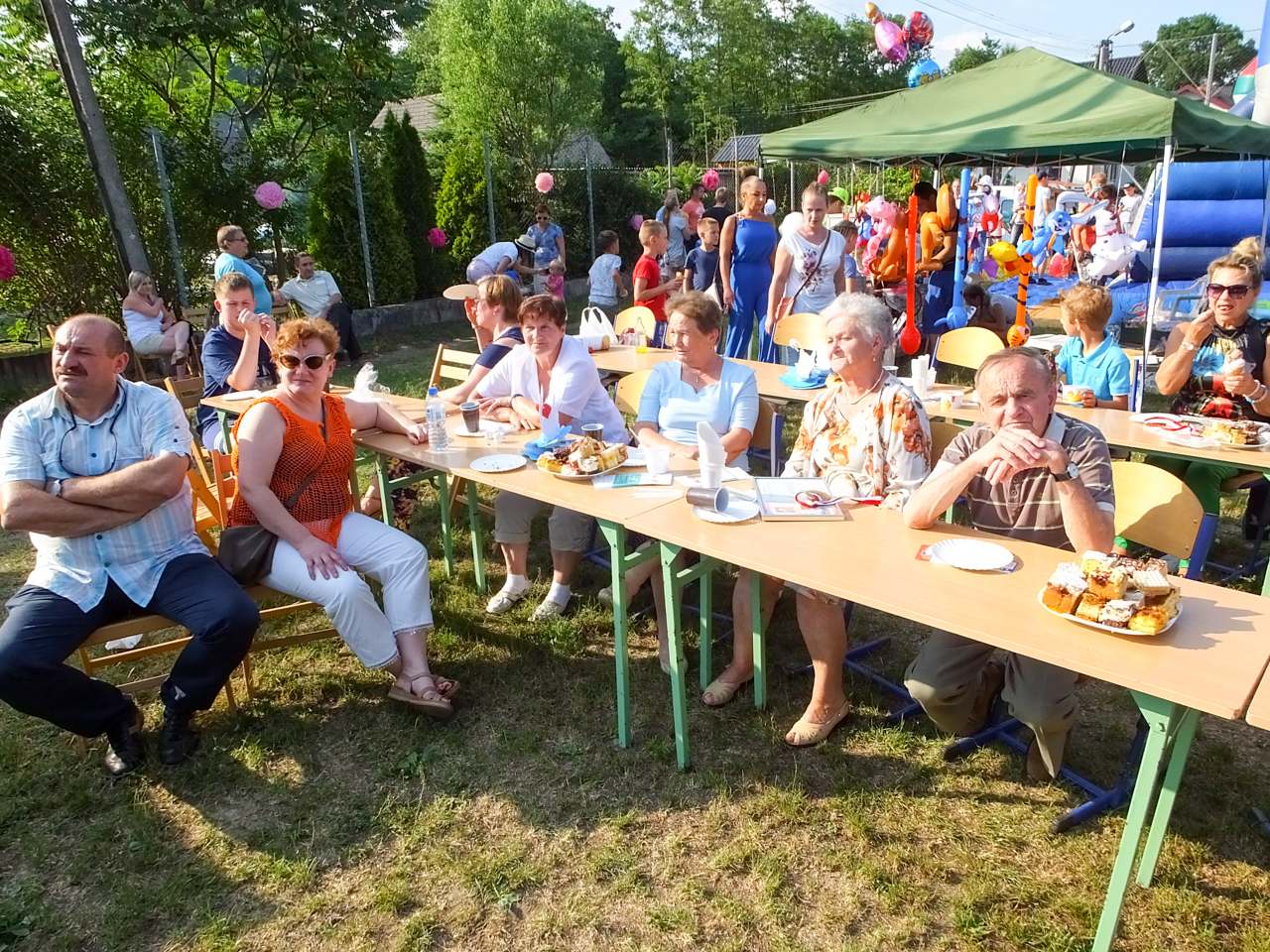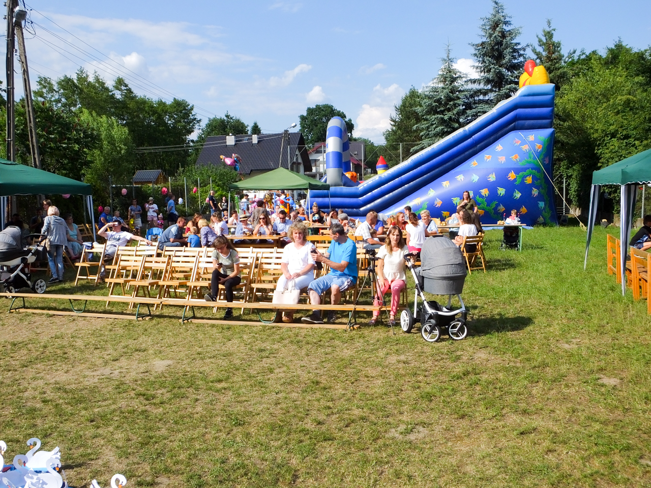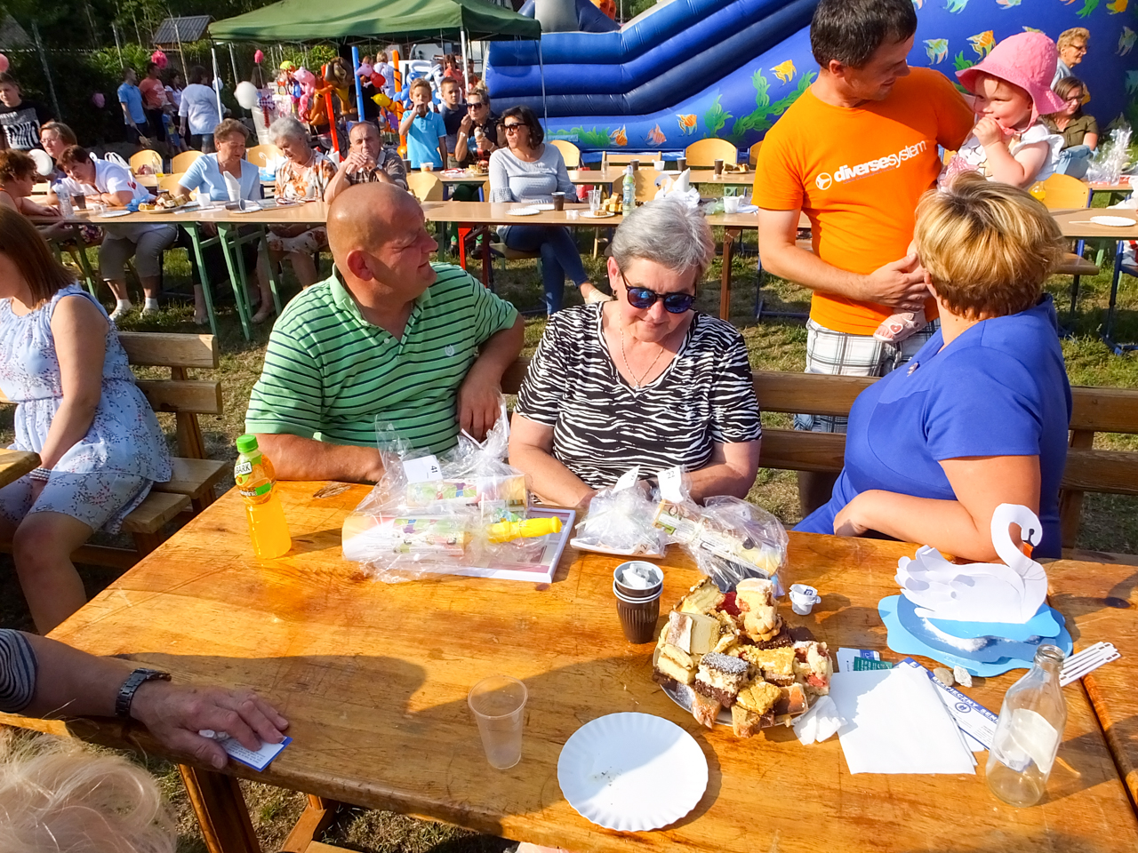 Nawet ci, którzy na nasz piknik zjeżdżali z innych miejscowości, nie mieli problemu z dotarciem na miejsce – szlak wyznaczały dmuchane atrakcje widoczne już z daleka, jak również rozchodzące się zapachy pieczonych kiełbasek z grilla, pysznego bigosu i popcornu. Wsparciem dla podniebienia były również lody, wata cukrowa, kawa i herbata. Bezpłatnie można było posilić się wiejską pajdą chleba ze smalcem i ogórkiem oraz pysznymi domowymi wypiekami.