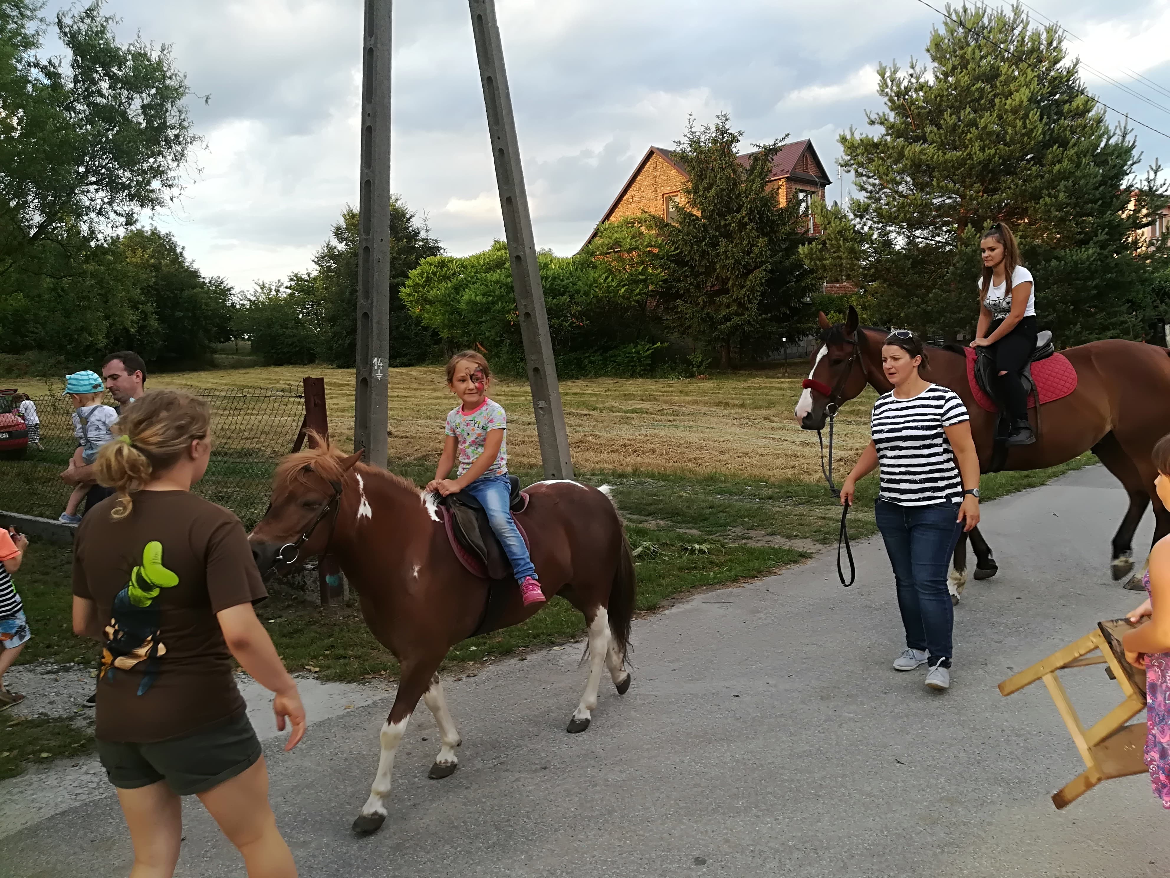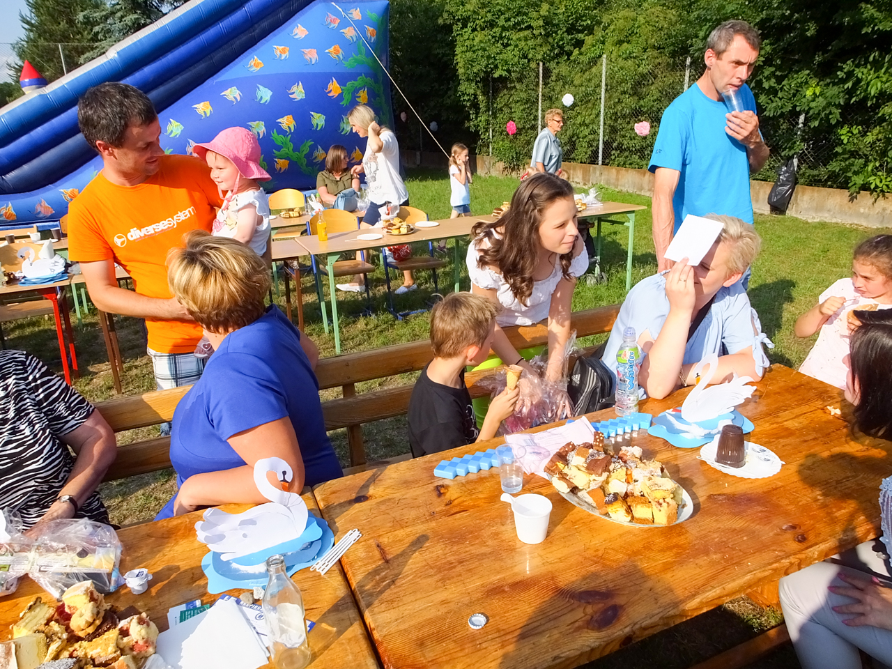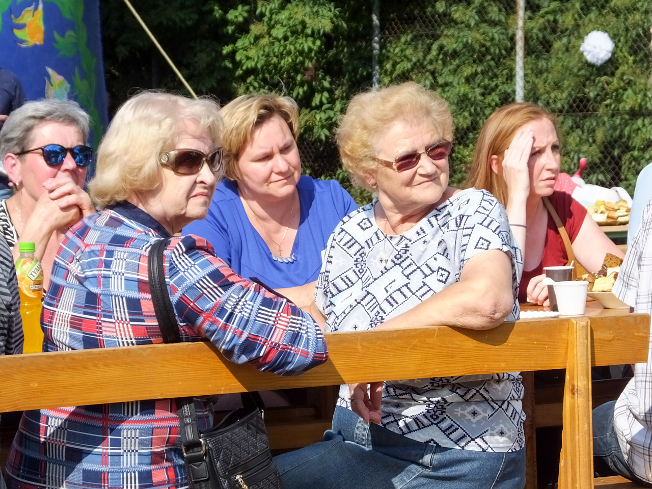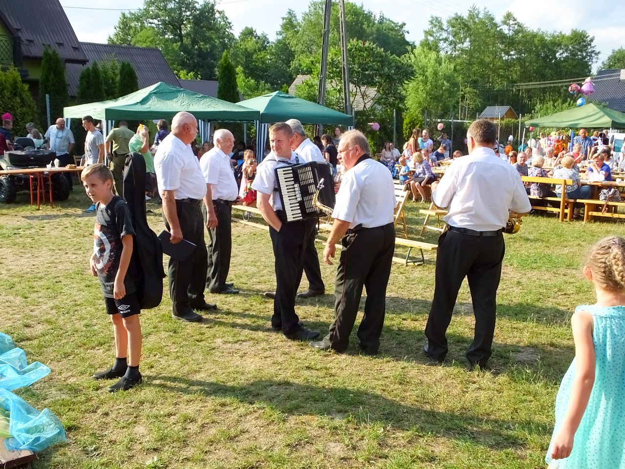 Nawet ci, którzy na nasz piknik zjeżdżali z innych miejscowości, nie mieli problemu z dotarciem na miejsce – szlak wyznaczały dmuchane atrakcje widoczne już z daleka, jak również rozchodzące się zapachy pieczonych kiełbasek z grilla, pysznego bigosu i popcornu. Wsparciem dla podniebienia były również lody, wata cukrowa, kawa i herbata. Bezpłatnie można było posilić się wiejską pajdą chleba ze smalcem i ogórkiem oraz pysznymi domowymi wypiekami.