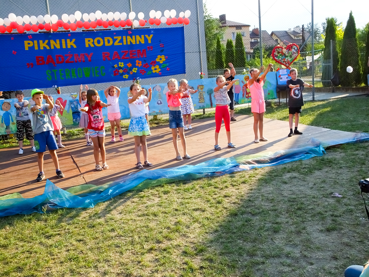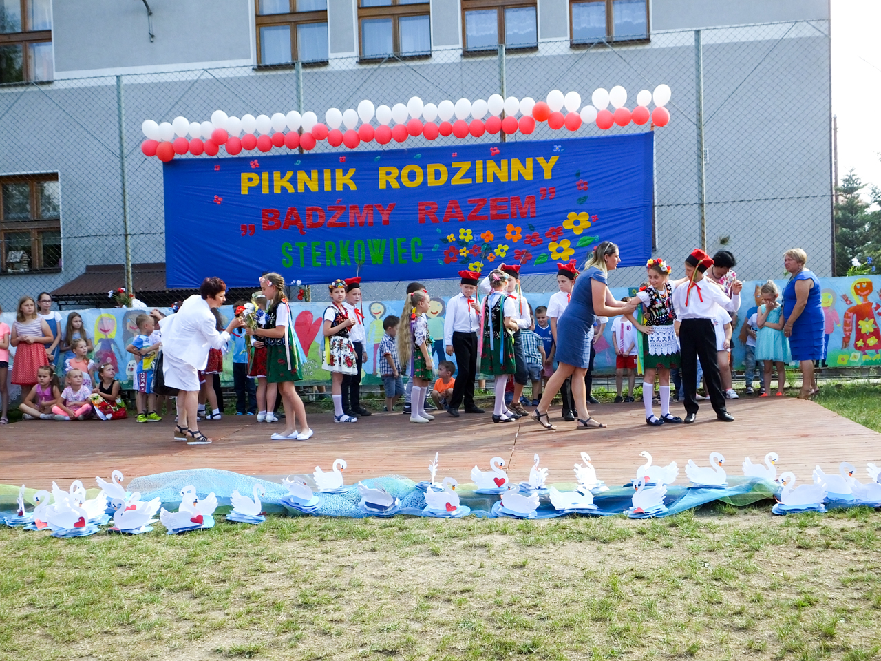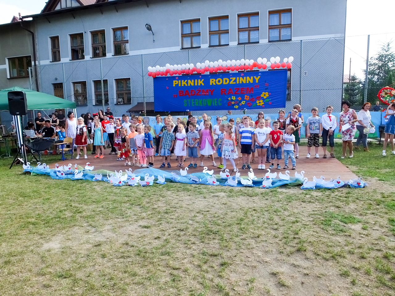 Konkursy, dużo zabawy, mnóstwo radości, darmowe atrakcje, a na zakończenie zabawa z wodzirejką, Justyną Kargol – tak w jednym zdaniu można podsumować wielki piknik rodzinny zorganizowany w sobotę 16 czerwca, w Publicznej Szkole Podstawowej w Sterkowcu przez nauczycieli i rodziców. Spotkanie odbywające się pod hasłem. „Bądźmy razem” w tym roku nabrało charakteru patriotycznego ze względu na doniosłą okoliczność 100-lecia odzyskania przez Polskę niepodległości. Swoją obecnością zaszczycił nas burmistrz Grzegorz Wawryka. Impreza miała być również odpowiedzią na potrzebę integracji różnych środowisk - pracowników szkoły, uczniów, rodziców, a także przybyłych gości. I udało się, pogoda dopisała, frekwencja także, a wszyscy bawili się wyśmienicie.