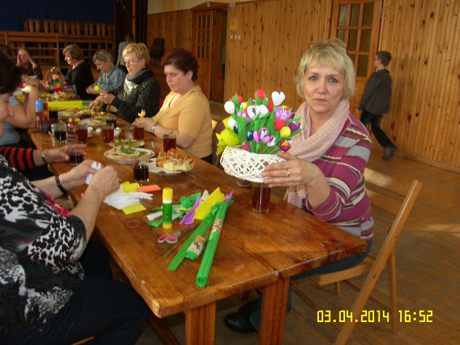 Jest już tradycją, że panie z kół gospodyń wiejskich działających na terenie gminy Brzesko spotykają się, aby wspólnie przygotowywać dekoracje wielkanocne. W tym roku spotkanie odbyło się w Domu Kultury w Sterkowcu. Panie należące do kół, młodzież i dzieci wykonywały tradycyjną metodą pisanki, wiosenne kwiaty z bibuły oraz ozdoby do wielkanocnego koszyka.