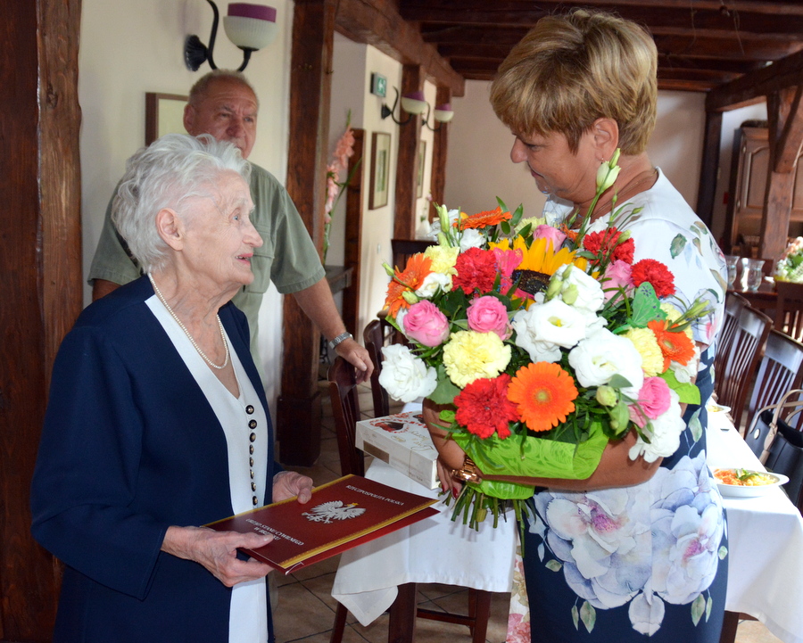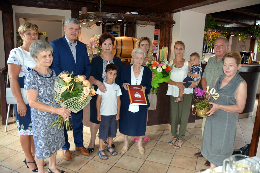 Sto dwa lata ukończyła pani Helena Radzim. Życzenia przeżycia następnych długich i szczęśliwych lat, w imieniu władz gminy i mieszkańców złożyli Jubilatce burmistrz Brzeska Grzegorz Wawryka, wraz z radną Marią Kucią i kierowniczką Urzędu Stanu Cywilnego, Aleksandrą Fijałkowską.