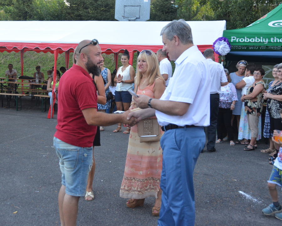 Dzięki hojności sponsorów w tym burmistrza Grzegorza Wawryki, zwycięzcy konkursów „ Strongmena biesiady” oraz „Króla i Królowej biesiady” otrzymali zestawy nagród. –Cieszę się ,że mieszkańcy tak licznie biorą udział w biesiadzie. Mimo czasu wakacji przybyło wielu mieszkańców.