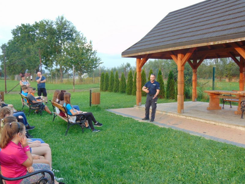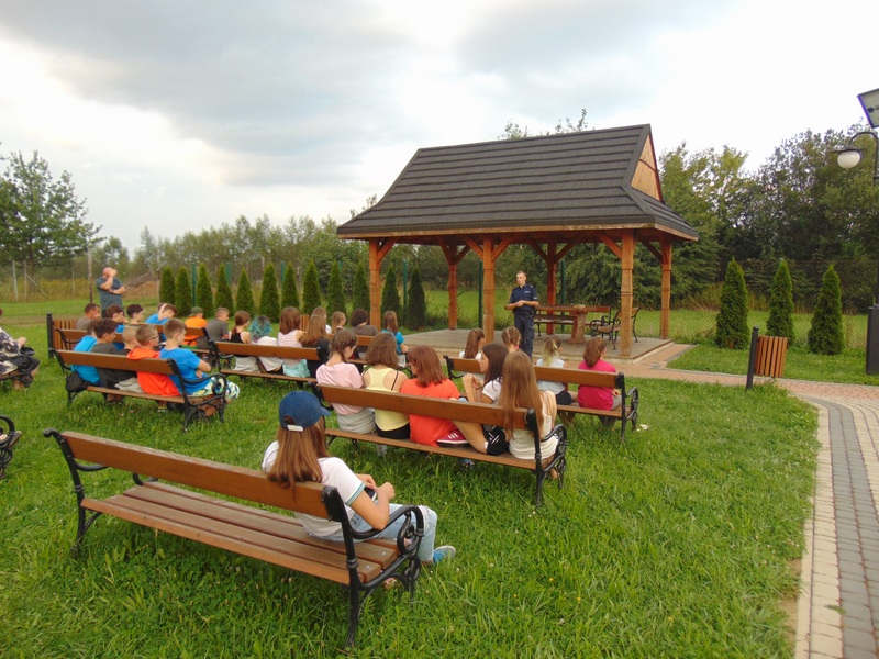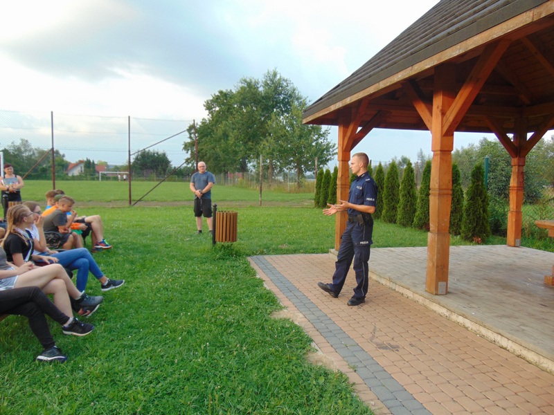 Obozy harcerskie organizowane pod namiotami na terenach leśnych są atrakcyjną, ale też i specyficzną formą wypoczynku, która może się wiązać z różnego rodzaju zagrożeniami. Na bezpieczeństwo uczestników obozu ma wpływ wiele czynników, ale w głównej mierze pogoda. Wystąpienie gwałtownej burzy, silnego wiatru i opadów deszczu może nieść ze sobą niebezpieczeństwo, tylko wtedy, kiedy zbagatelizujemy podstawowe zasady bezpieczeństwa.O tym jak postępować w sytuacji zagrożenia instruowali policjanci Komisariatu Policji w Czchowie, którzy 31 lipca br., w godzinach wieczornych spotkali się z grupą 28 harcerzy i harcerek oraz rodzicami małoletnich w miejscowości Jurków bezpośrednio przed ich wyjazdem na dwutygodniowy obóz. Mł.asp. Dariusz Gorzkowski oraz st. sierż. Grzegorz Kupiec z Komisariatu Policji w Czchowie udzielili harcerzom kilku rad i wskazówek, aby wypoczynek na łonie natury był bezpieczny. Przypomnieli jak się zachować podczas burzy przebywając w terenie. Oto kilka z nich:O ile to możliwe, wejdźmy jak najszybciej do najbliższego budynku i tam przeczekajmy burzę. Jeśli nie ma takiej możliwości:1. Nie zatrzymujmy się i nie szukajmy schronienia pod drzewami, słupami energetycznymi (jeżeli linia ulegnie zerwaniu zostaniemy porażeni prądem), niestabilnymi konstrukcjami np. wiaty oraz wszystkimi wysokimi elementami, bo one przyciągają pioruny.2. Unikajmy otwartej przestrzeni. Wykorzystajmy jako schronienie istniejące budowle: most, wiadukt, przepusty lub inne stałe konstrukcje. Jeżeli nie mamy możliwości takiego ukrycia się, wykorzystajmy zagłębienia terenu (rów, głęboki dół).3. Odsuńmy się od metalowych przedmiotów i ich nie dotykajmy.4. Wyjdźmy natychmiast z wody.5. Unikajmy używania telefonu komórkowego. Najlepiej go wyłączmy.Podczas spotkania mowa była również o bezpieczeństwie nad wodą, ochronie swoich rzeczy osobistych przed ewentualną kradzieżą i zachowaniu w przypadku zagubienia w lesie. Aby zapewnić harcerzom najwyższy poziom bezpieczeństwa policjanci z kierownictwem obozu ustalili zasady wzajemnej współpracy i procedury postępowania w sytuacjach kryzysowych.Uczestnicy zajęć wykazywali się dużym zaangażowaniem, zadawano mnóstwo ciekawych pytań, na które wyczerpująco odpowiadali funkcjonariusze.