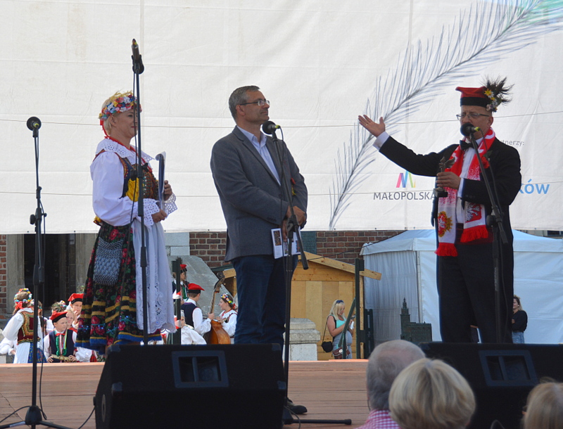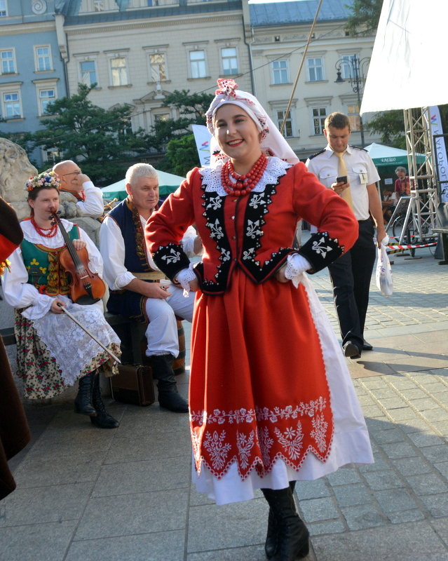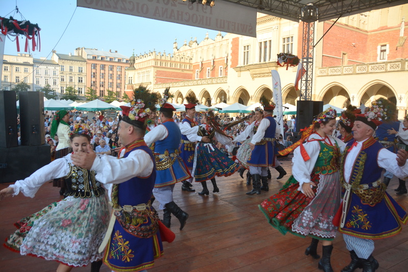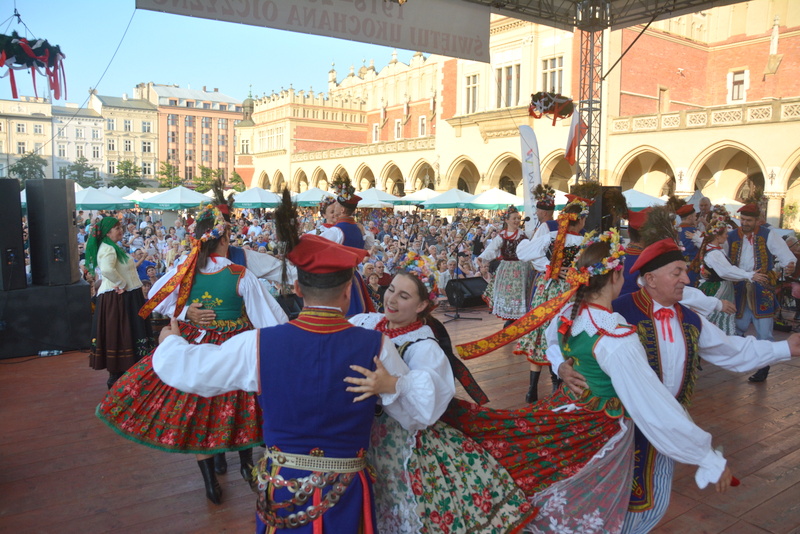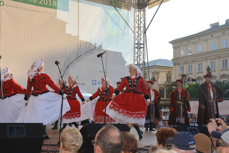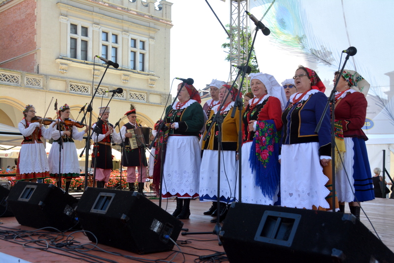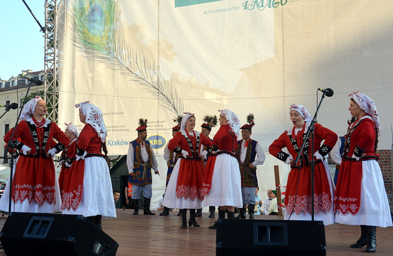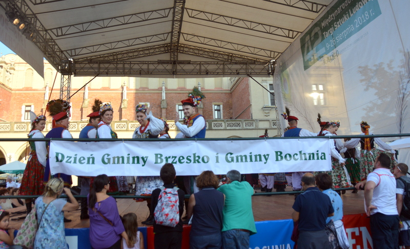 Po Jadowniczanach na estradzie wystąpił Zespół Pieśni i Tańca Krakowiacy Ziemi Brzeskiej wraz z kapelą, którą poprowadził Andrzej Soja. Znakomity repertuar, żywiołowość tańczących par, barwne krakowskie stroje podbiły serca międzynarodowej publiczności. Po występie przemarszowi zespołu z estrady usytuowanej przy Wieży Ratuszowej, przez Sukiennice i ulicę Sienną towarzyszyły tysiące fleszy aparatów fotograficznych, kamer i komórek turystów, zauroczonych wspaniałymi strojami oraz przyśpiewkami Krakowiaków Ziemi Brzeskiej. Ten i inne sukcesy zespołu obchodzącego w tym roku jubileusz pięćdziesięciolecia powstania nie byłby możliwy bez pracy wszystkich członków w tym choreografki zespołu pani Stanisławy Stolarz oraz kierownik pani Heleny Jewuły.