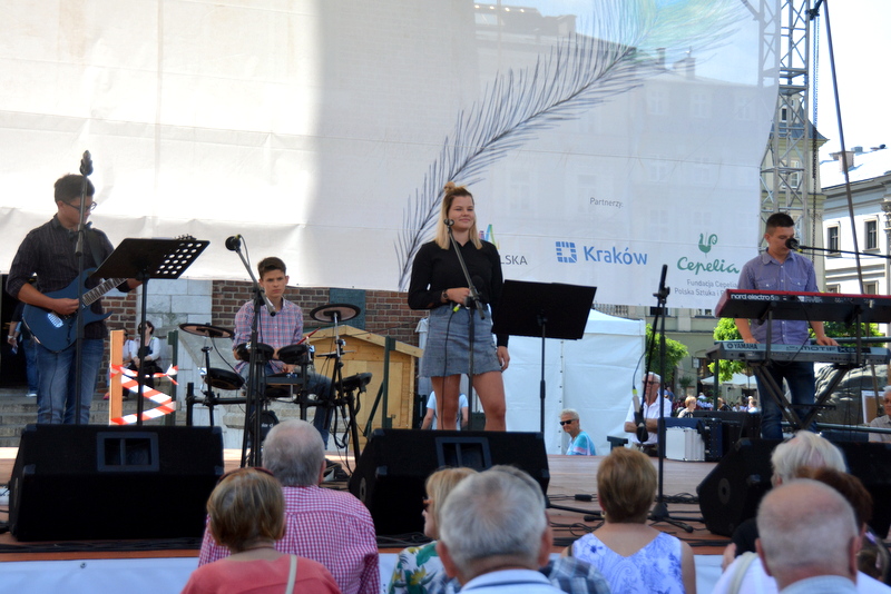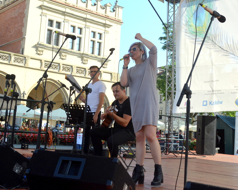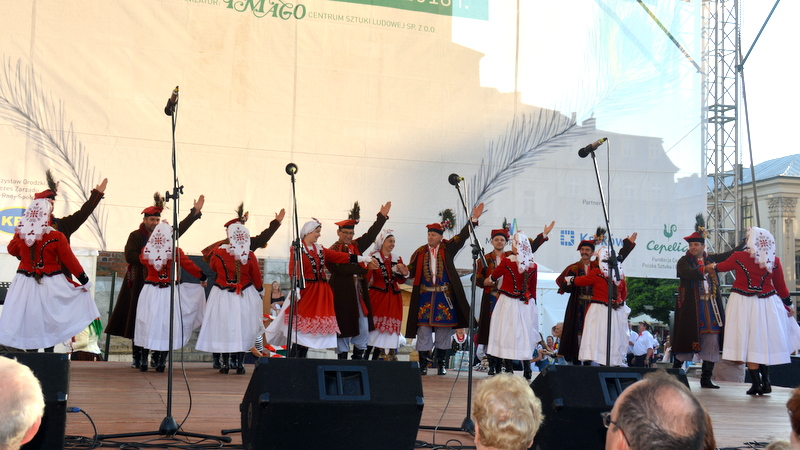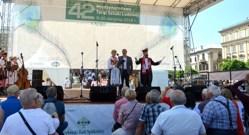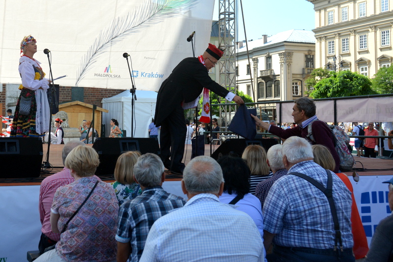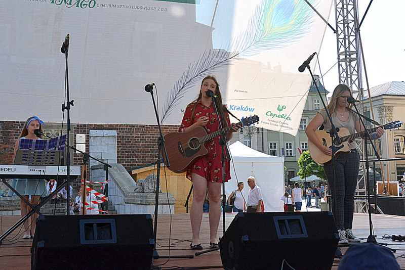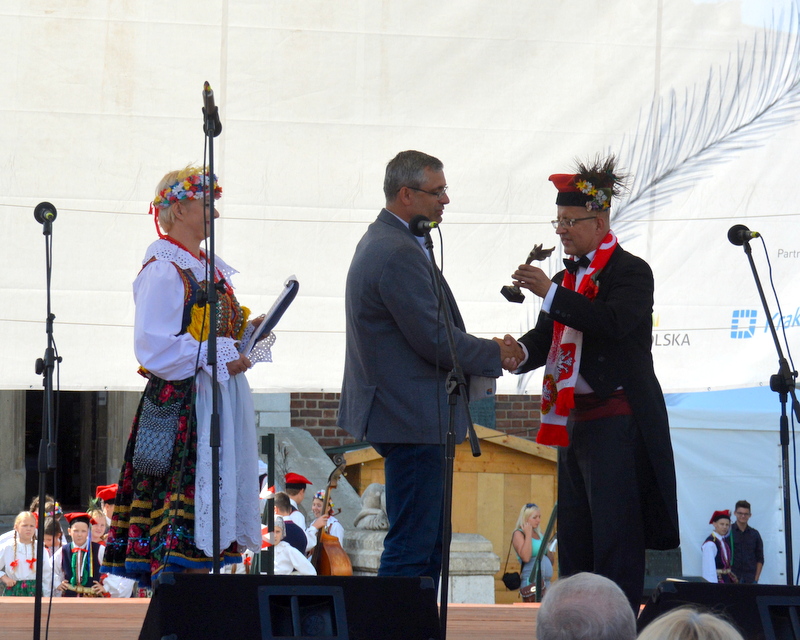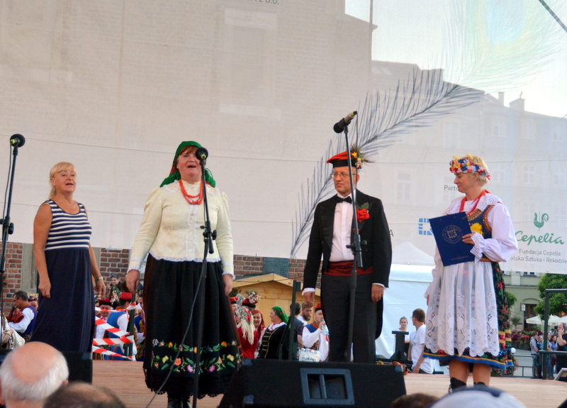 Po Jadowniczanach na estradzie wystąpił Zespół Pieśni i Tańca Krakowiacy Ziemi Brzeskiej wraz z kapelą, którą poprowadził Andrzej Soja. Znakomity repertuar, żywiołowość tańczących par, barwne krakowskie stroje podbiły serca międzynarodowej publiczności. Po występie przemarszowi zespołu z estrady usytuowanej przy Wieży Ratuszowej, przez Sukiennice i ulicę Sienną towarzyszyły tysiące fleszy aparatów fotograficznych, kamer i komórek turystów, zauroczonych wspaniałymi strojami oraz przyśpiewkami Krakowiaków Ziemi Brzeskiej. Ten i inne sukcesy zespołu obchodzącego w tym roku jubileusz pięćdziesięciolecia powstania nie byłby możliwy bez pracy wszystkich członków w tym choreografki zespołu pani Stanisławy Stolarz oraz kierownik pani Heleny Jewuły.
