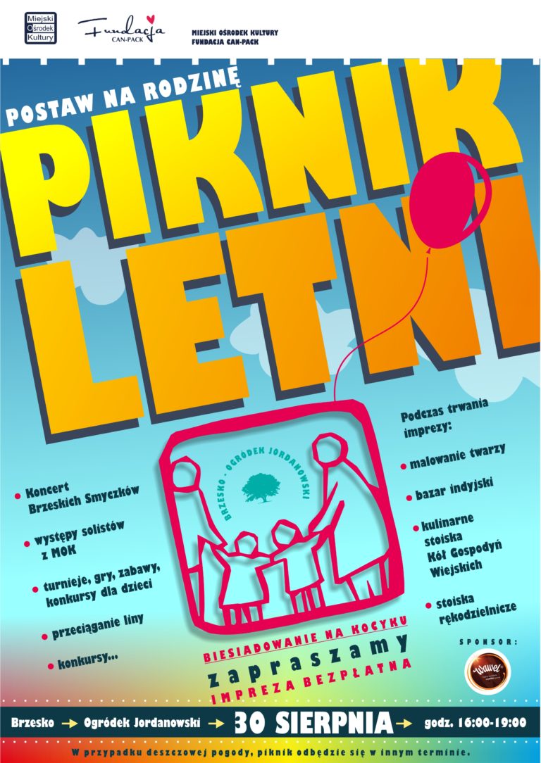 MOK i Fundacja Can-Pack zapraszają do ogródka jordanowskiego na letni piknik, który odbywać się będzie pod hasłem „Postaw na rodzinę”. Impreza odbędzie się jutro, start o godzinie 16.00.