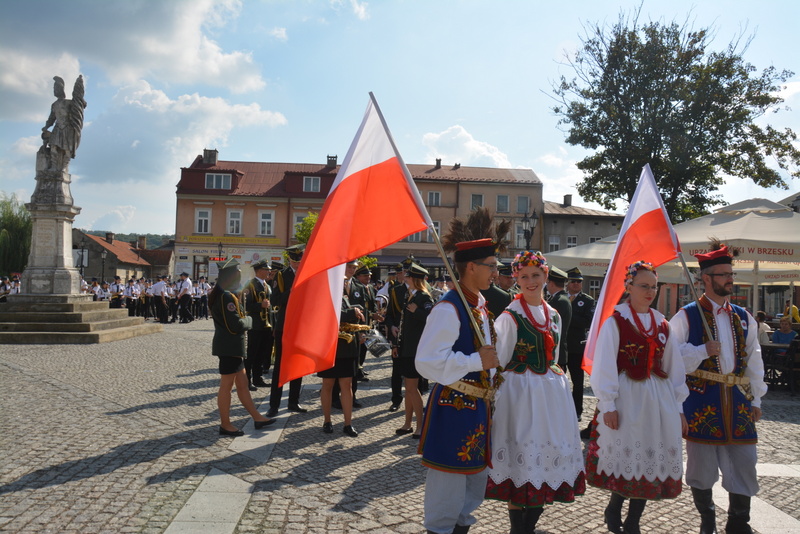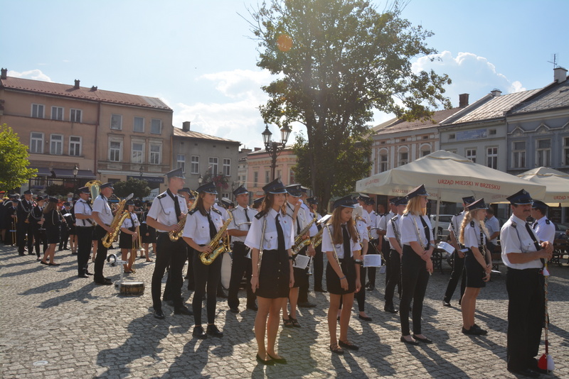 Punktualnie o godzinie 15.00 z płyty brzeskiego Rynku wyruszył korowód pięciu orkiestr wraz z zespołami folklorystycznymi. W barwnym i głośnym za sprawą orkiestr przemarszu na plac Kazimierza Wielkiego wziął udział organizator tego artystycznego wydarzenia burmistrz Grzegorz Wawryka wraz z małżonką. W brzeskim koncercie wzięły udział Miejska Orkiestra Dęta z Brzeska, Strażacka Orkiestra Dęta ze Starego Wiśnicza, Orkiestra Dęta OSP z Rzepiennika Strzyżewskiego, Orkiestra OSP Siemiechów, Strażacka Orkiestra Dęta Filipowice, Zespół Pieśni i Tańca „Porębianie” z Poręby Spytkowskiej oraz Grupa Śpiewacza „Jadowniczanie” z Jadownik. Prezentacje rozpoczęły się od wspólnego wykonania przez wszystkie orkiestry utworu "Piękna nasza Polska cała" pod batutą Wiesława Porwisza.